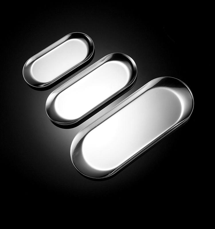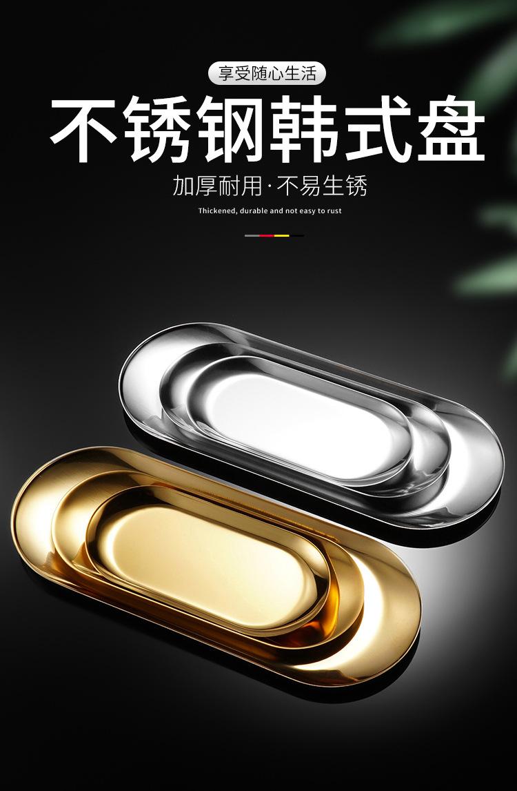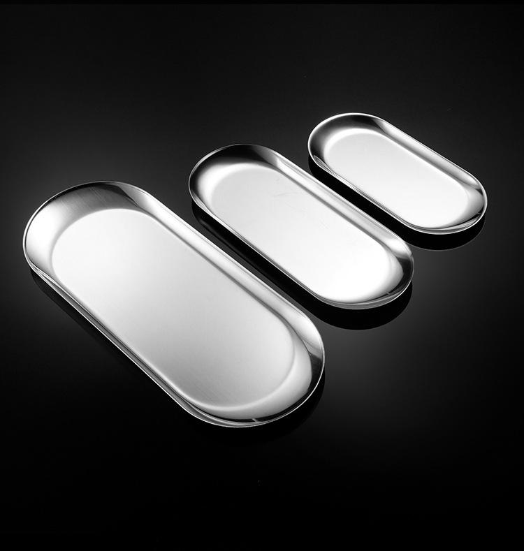 Acero Inoxidable Plato Ovalado Coreano Nórdico ins Plato para Snacks Comida Occidental Plato para Snacks Barbacoa Plato de Metal para Joyería Toalla