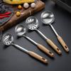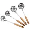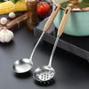 Cuchara de acero inoxidable 304 para olla caliente, mango de haya, colador de lijado, cuchara de sopa espesa y aislante, cuchara de sopa alargada