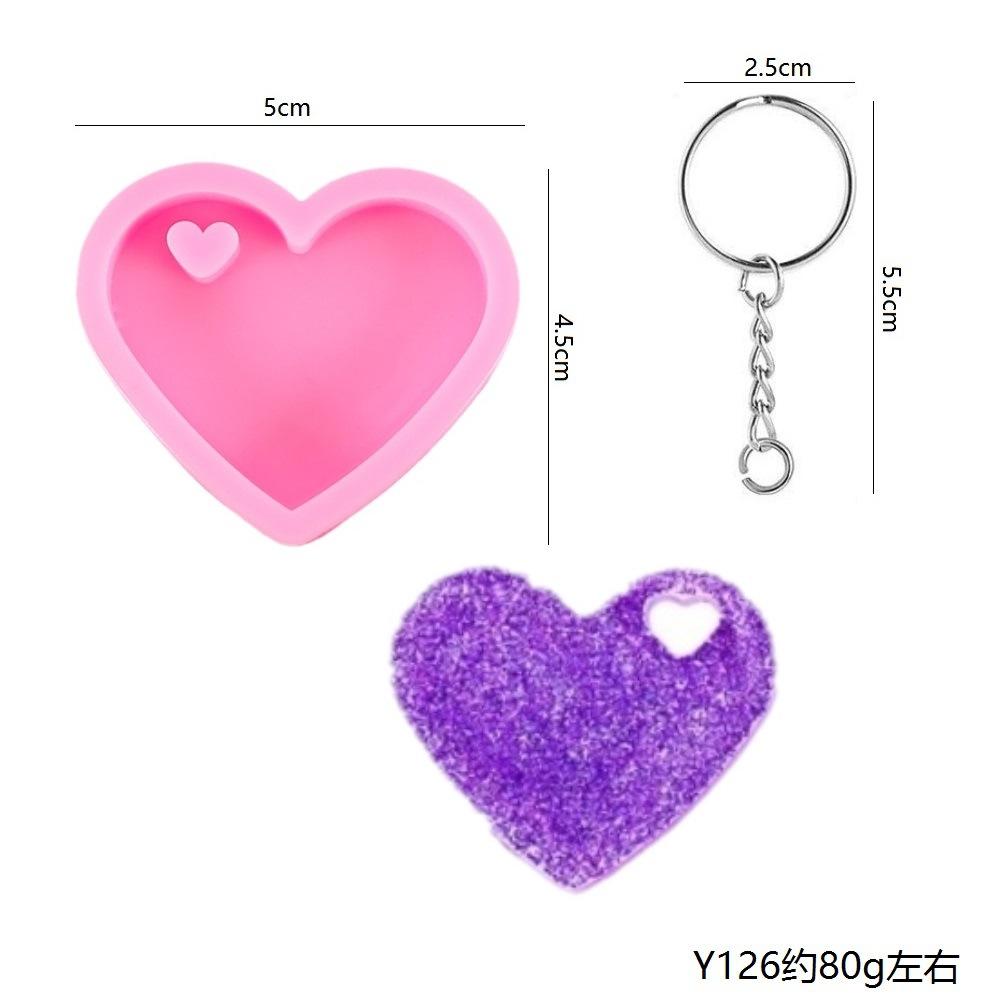 Molde epoxi de espejo de cristal colgante de 24 piezas DIY corazón de amor con llavero traje llavero molde de silicona