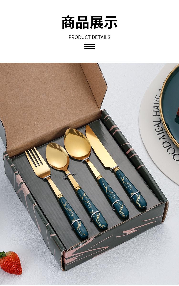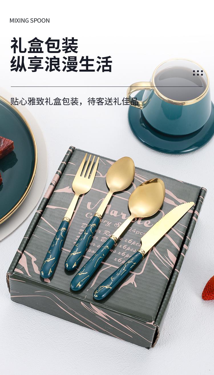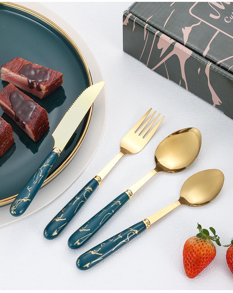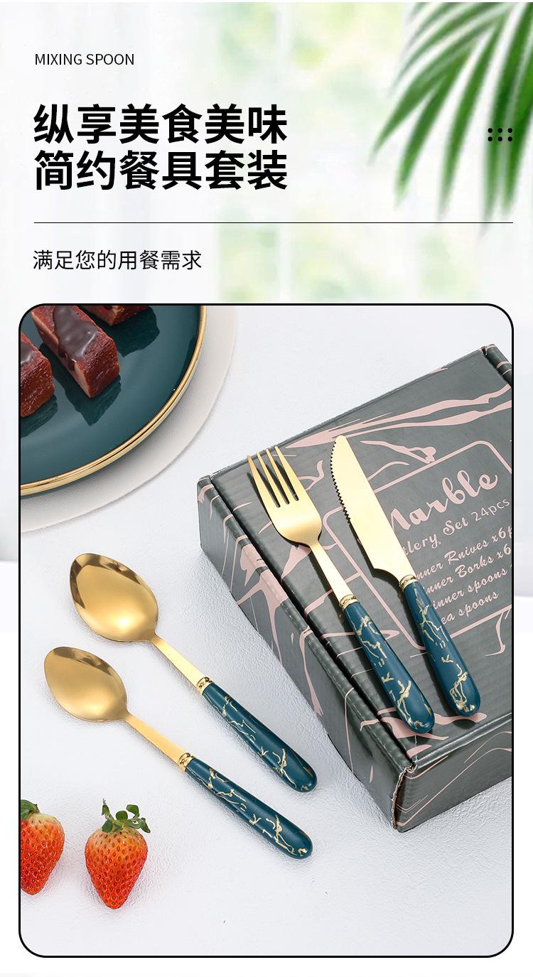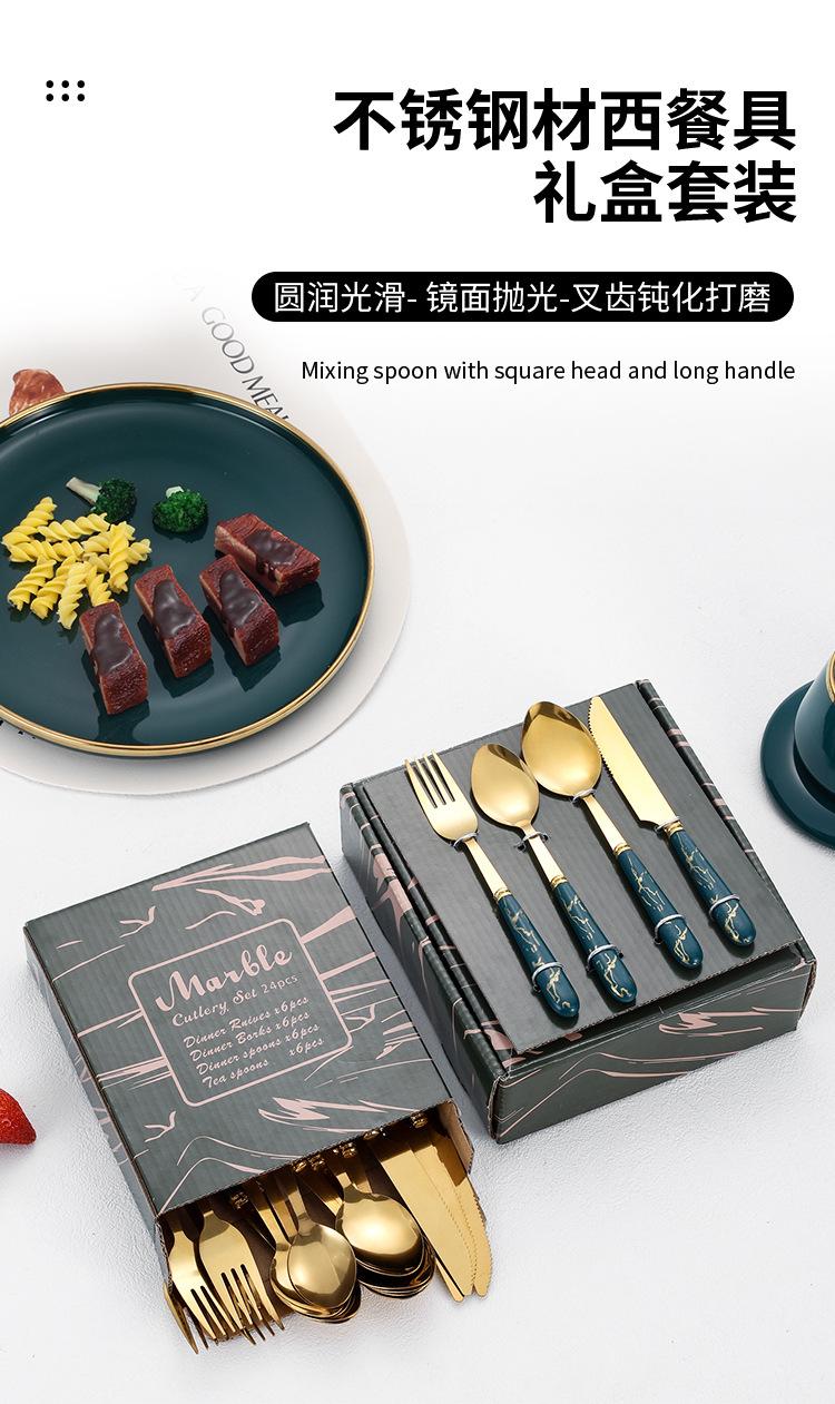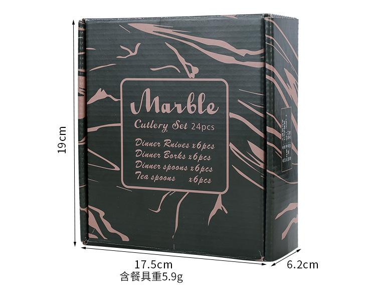 Cuchillo, tenedor y cuchara de acero inoxidable, caja de regalo de 24 piezas, mango marmoleado para hotel, cuchillo y tenedor para carne, cuchara de postre, tenedor de fruta
