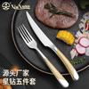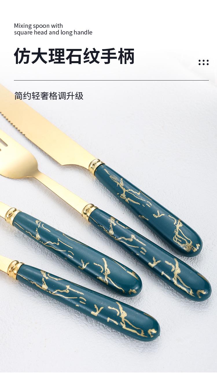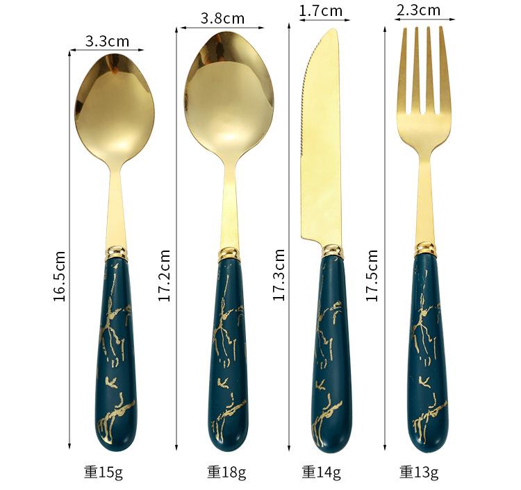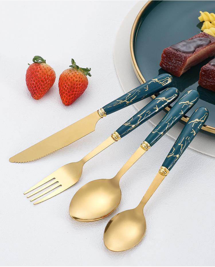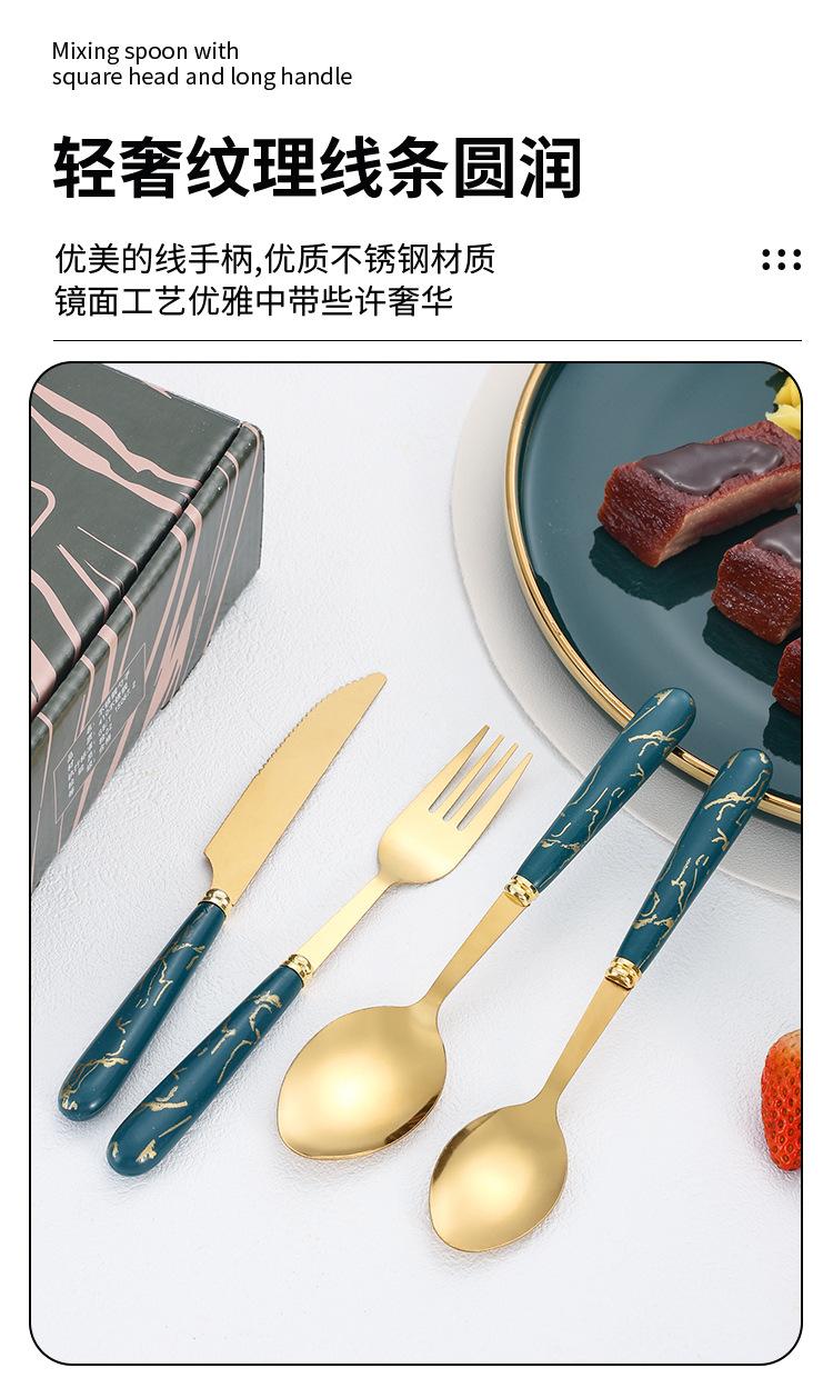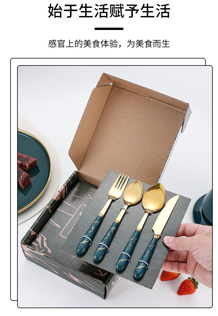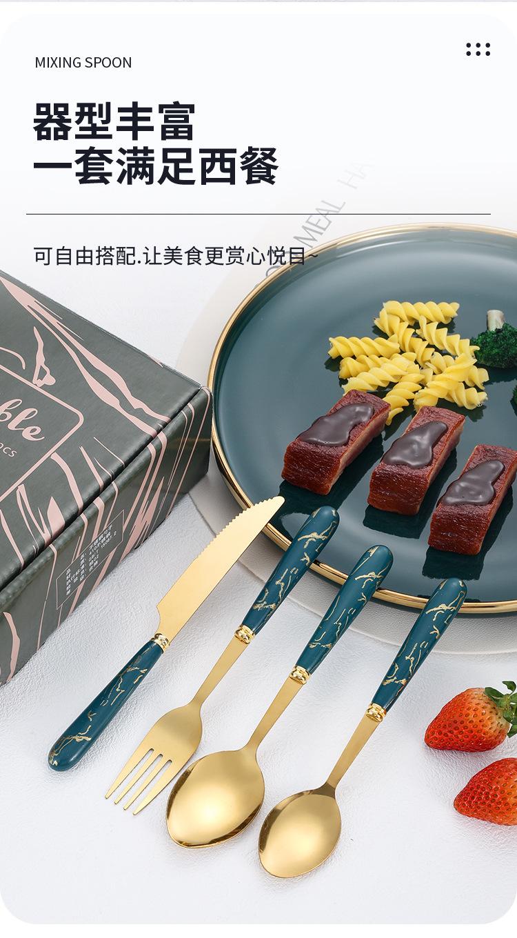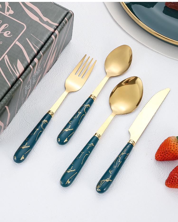 Cuchillo, tenedor y cuchara de acero inoxidable, caja de regalo de 24 piezas, mango marmoleado para hotel, cuchillo y tenedor para carne, cuchara de postre, tenedor de fruta