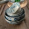 Plato de cerámica Lintang azul importado de Japón, vajilla bajo esmaltado, plato de ensalada japonesa, plato de fruta, tazón hondo, tazón para bocadillos y postres