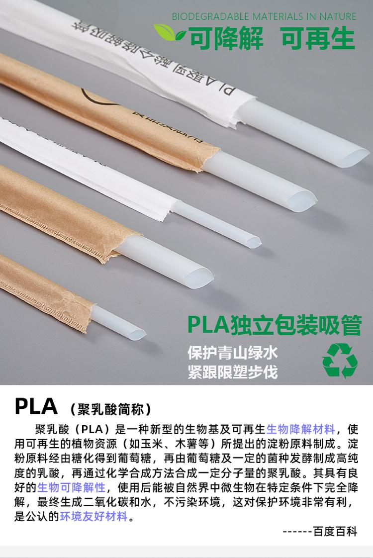Pajita de plástico de papel grueso y fino degradable PLA, desechable, embalaje independiente, para leche, té, bebidas, café, impresión de logotipo.