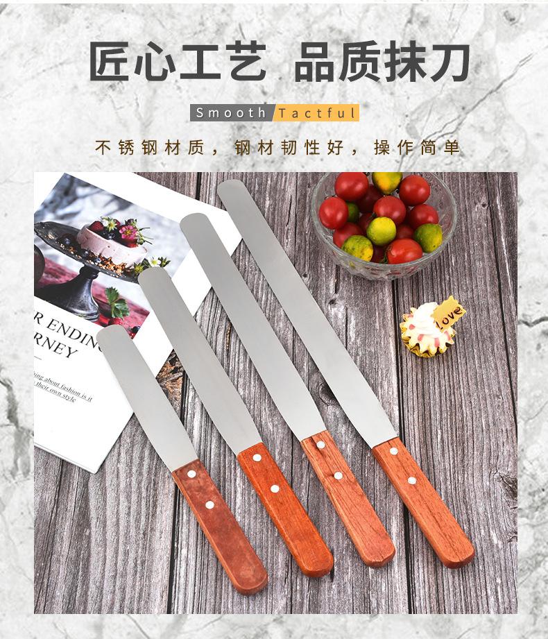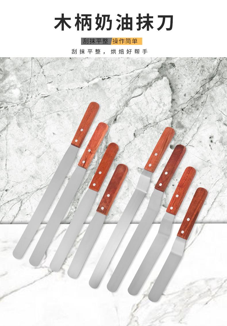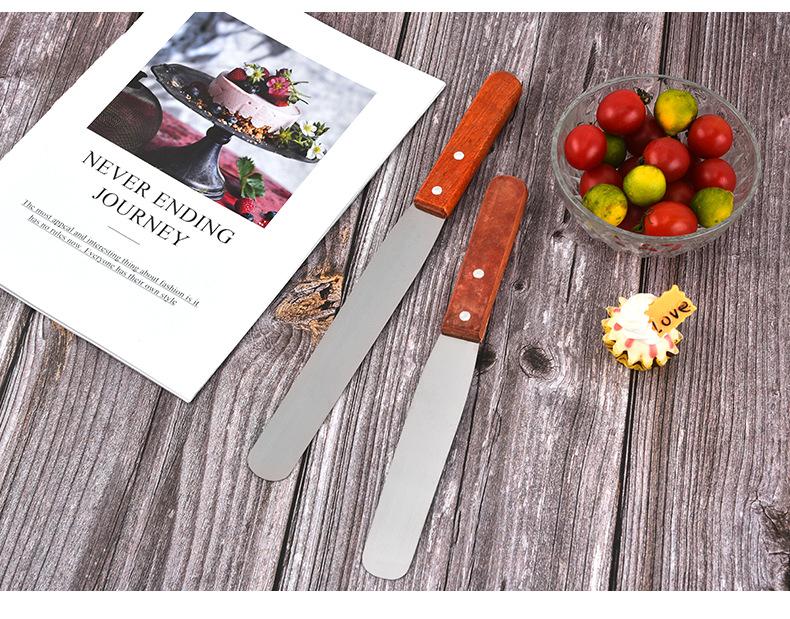 Espátula de crema con mango de madera de acero inoxidable para decorar pasteles, cuchillo raspador, herramienta para hornear, herramienta para pan, espátula para revolver
