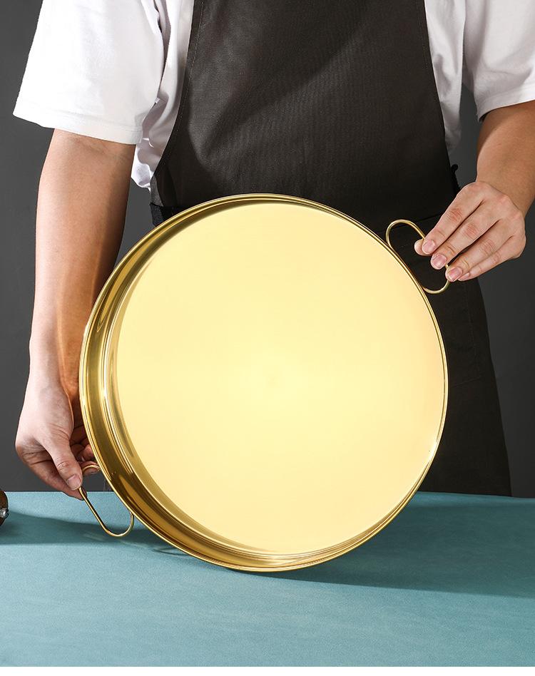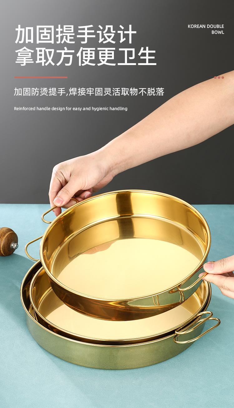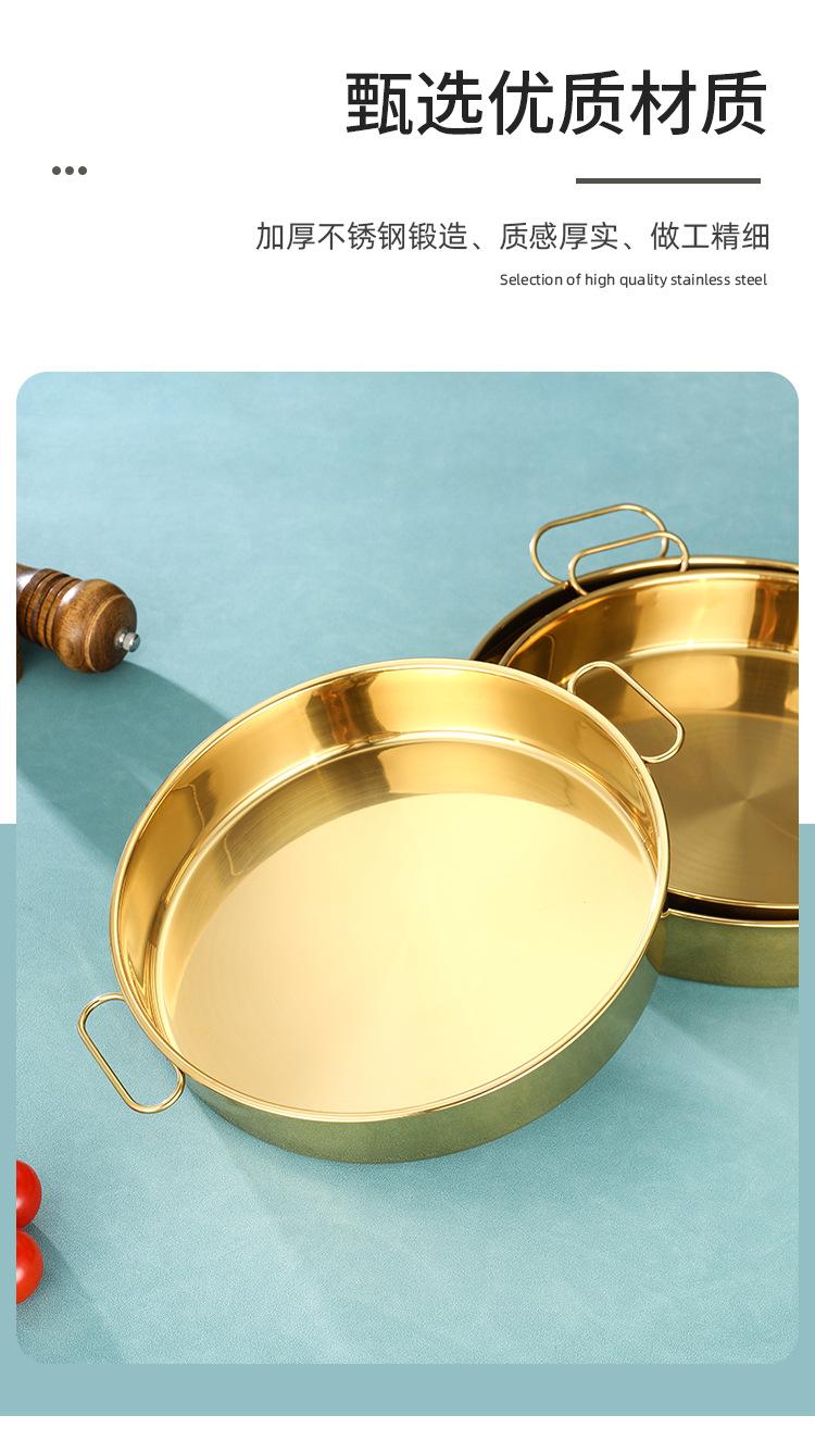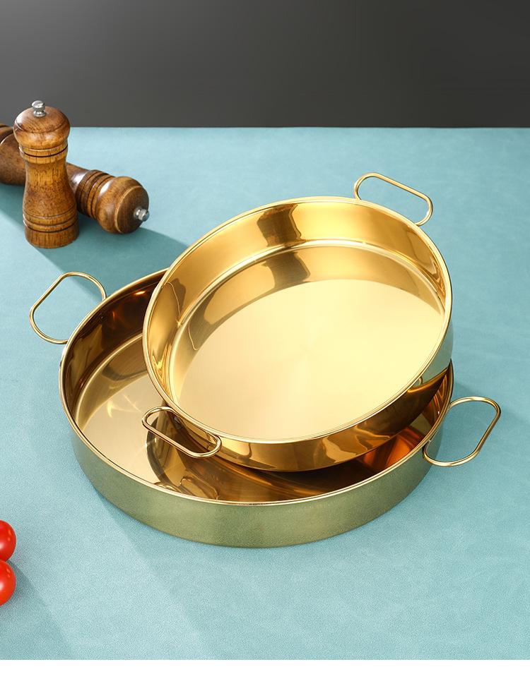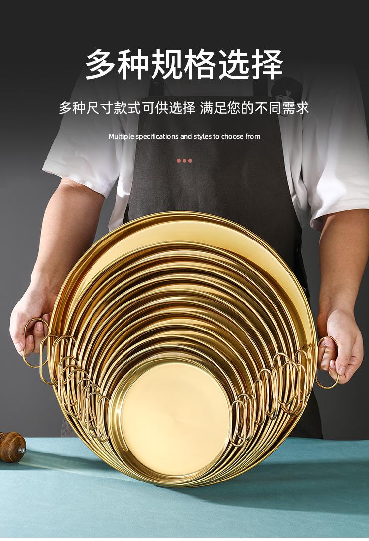 Plato grande de acero inoxidable dorado redondo con disco plano chapado en oro, plato grande hondo, bandeja binaural, vajilla comercial