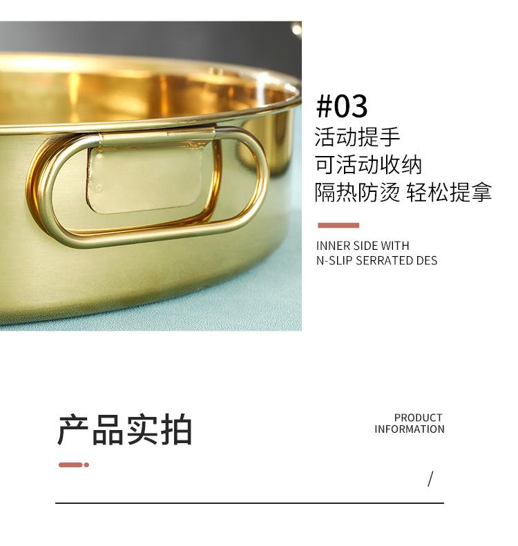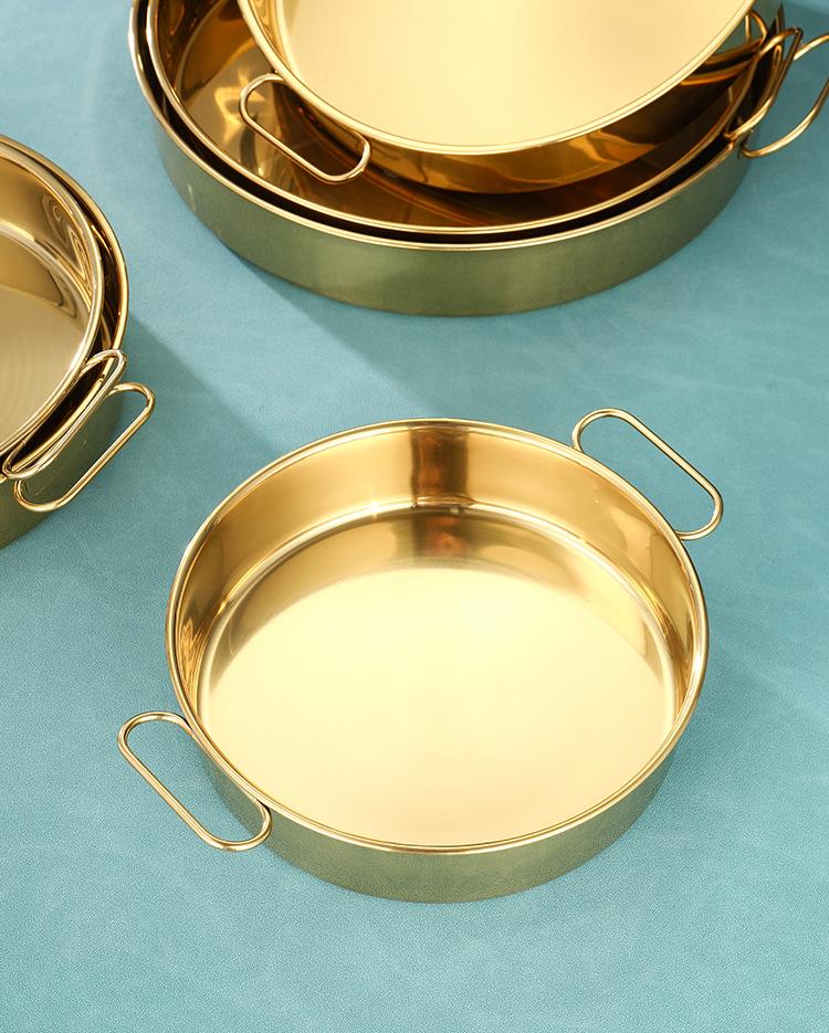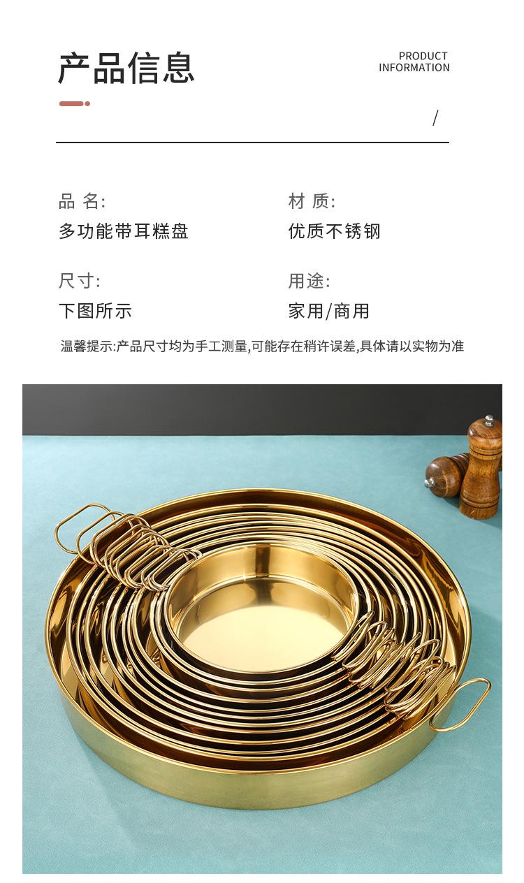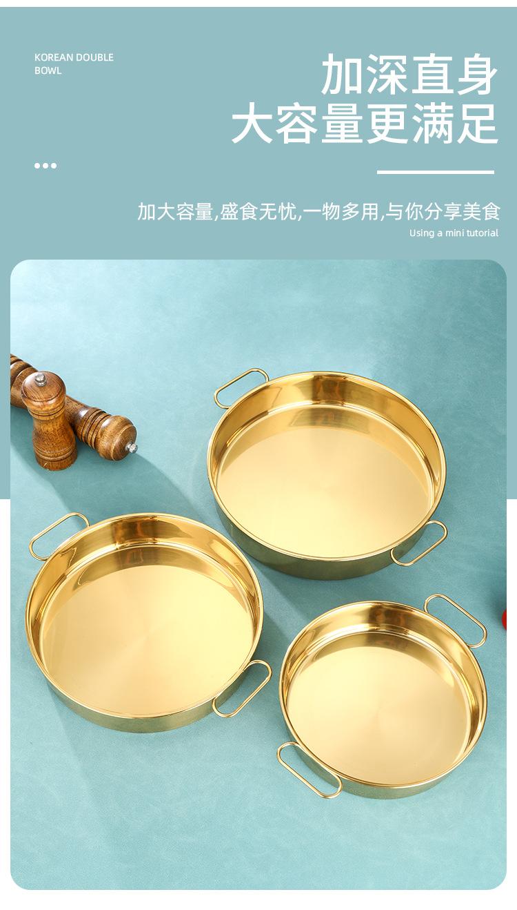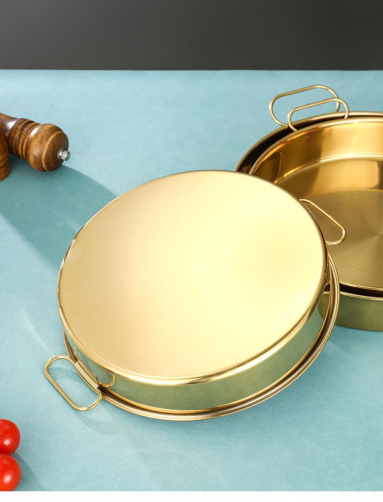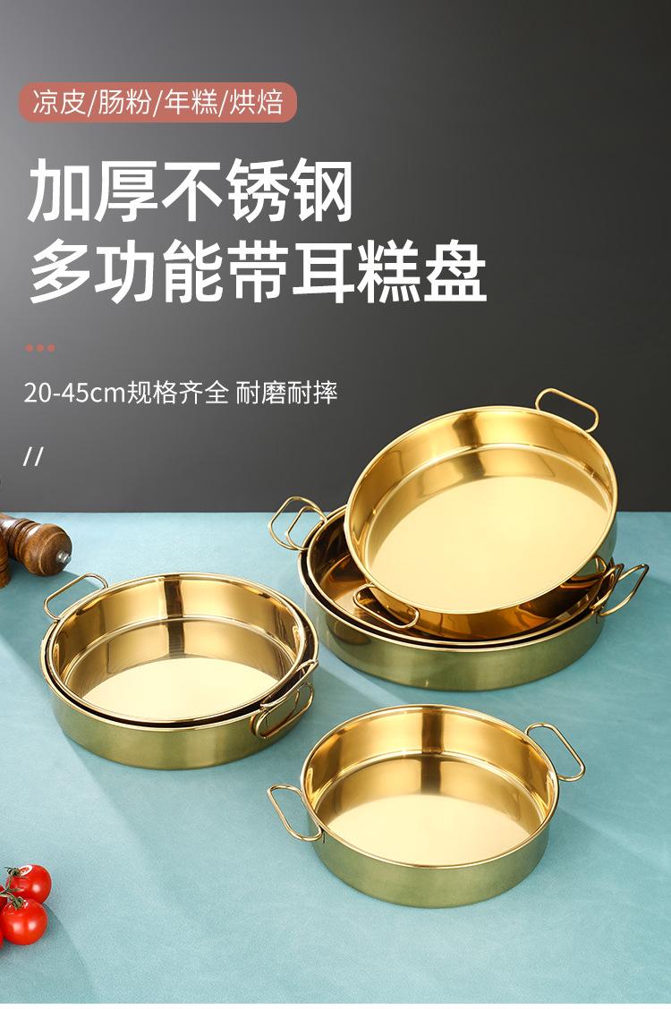 Plato grande de acero inoxidable dorado redondo con disco plano chapado en oro, plato grande hondo, bandeja binaural, vajilla comercial