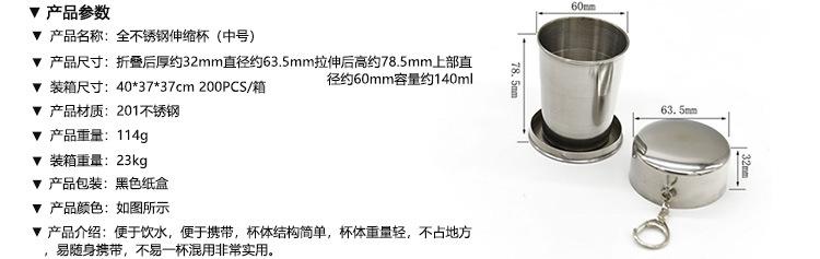 Nota: Las copas telescópicas se pueden usar para contener vino extranjero y vino blanco, pero no vino tinto ni bebidas carbonatadas. Al mismo tiempo, es mejor no usar líquidos con olores fuertes y penetrantes.Además, si usas un vaso telescópicoTenga cuidado al llenar el recipiente de agua caliente porque el acero inoxidable es muy conductor del calor.