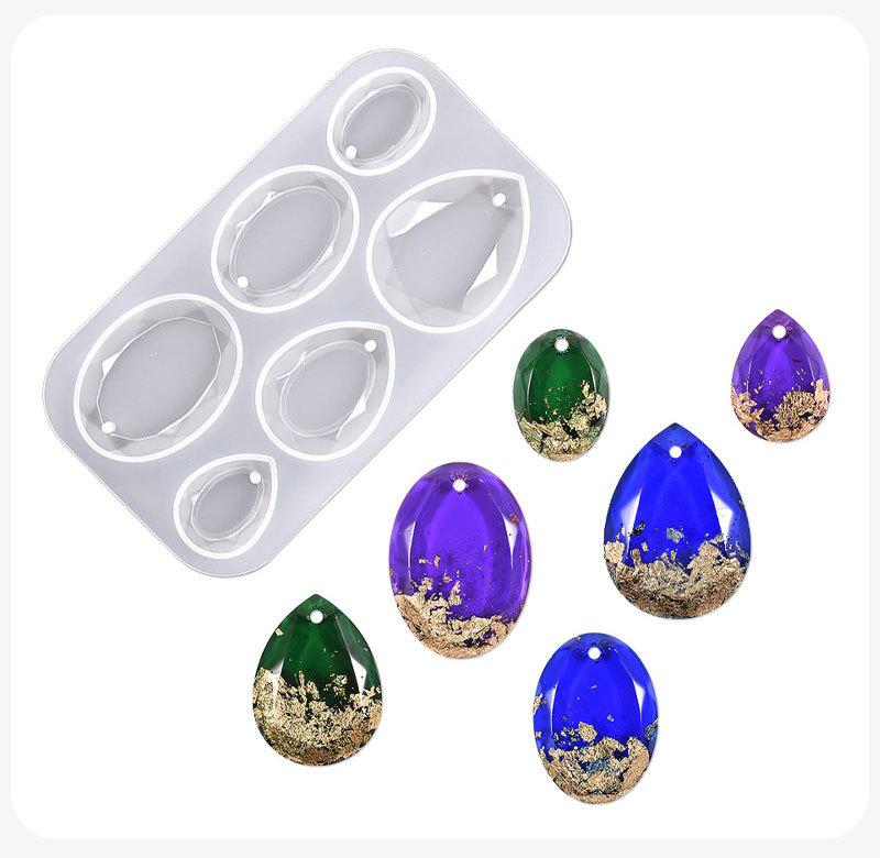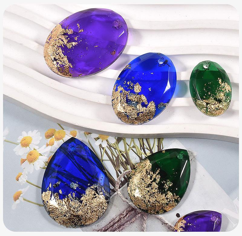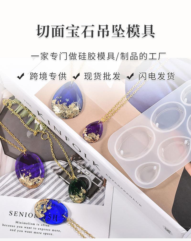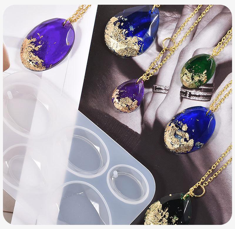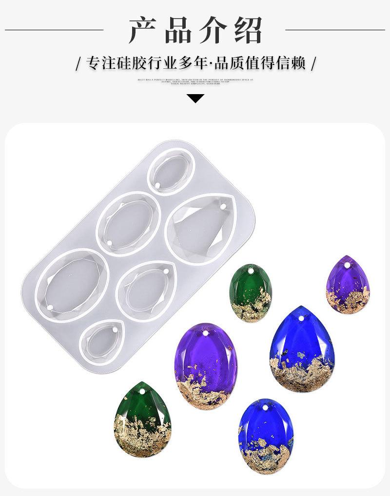Molde de silicona para colgante de suéter con forma de gota de cristal, espejo alto, sección ovalada, forma de gota, gema