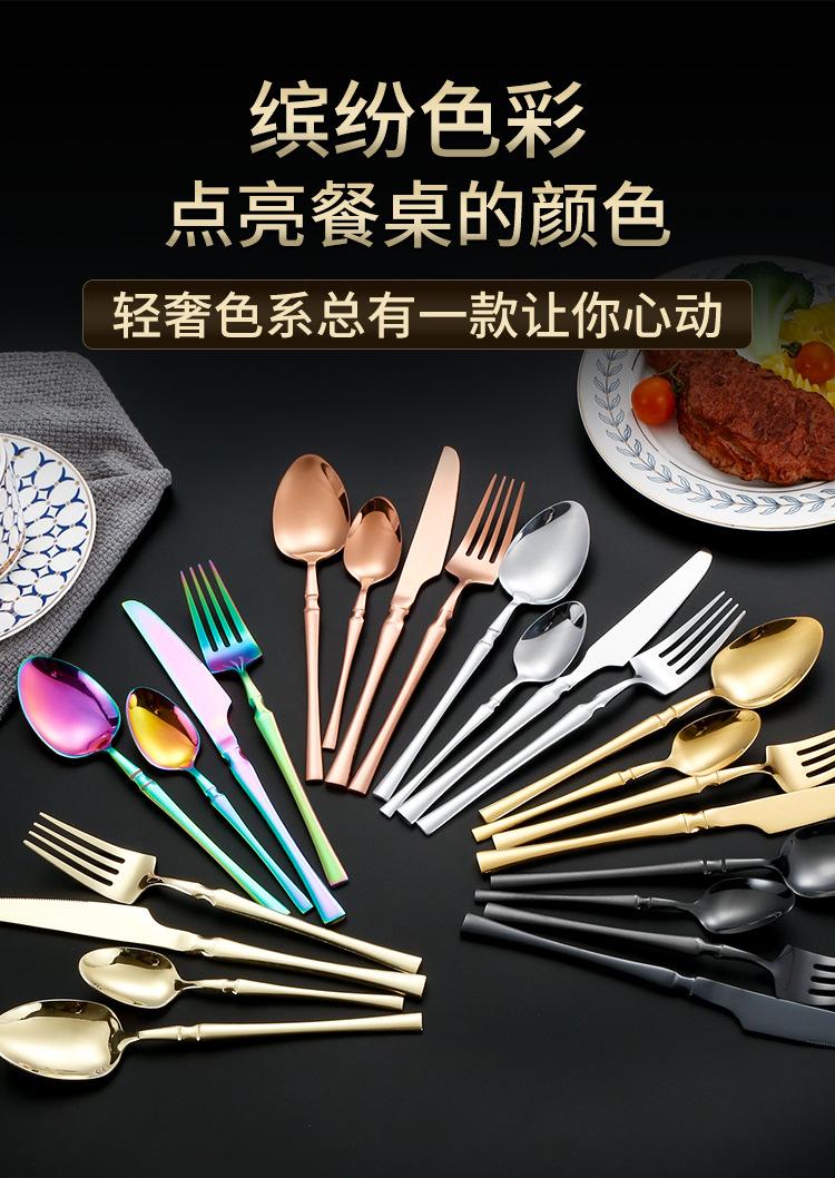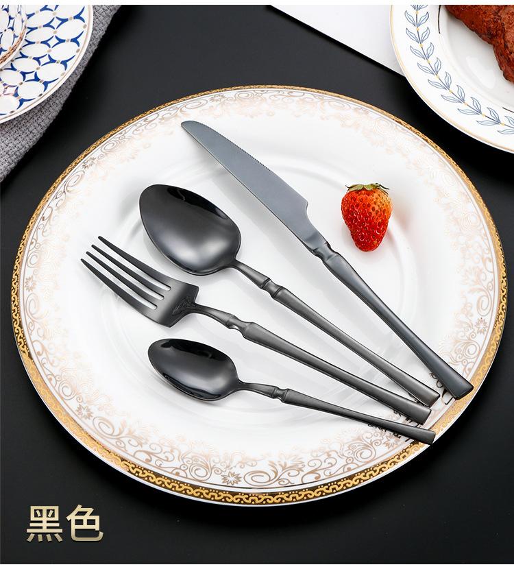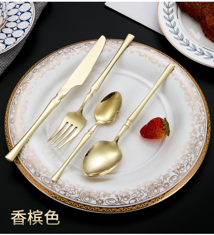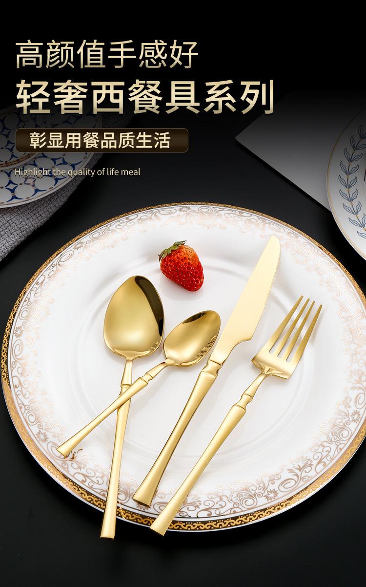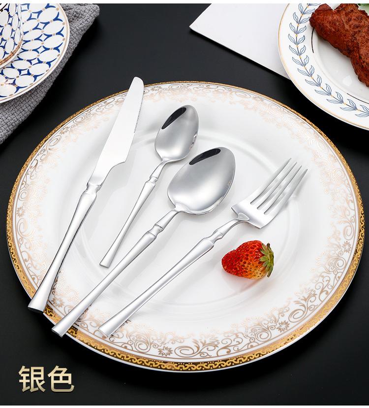 Cuchillo y tenedor de acero inoxidable transfronterizo, cuchara, pequeño, para hombre, de cintura, cuatro piezas, cuchillo y tenedor para carne, juego de vajilla occidental brillante, cuchara de estilo europeo