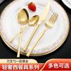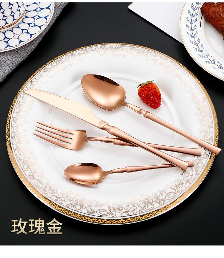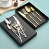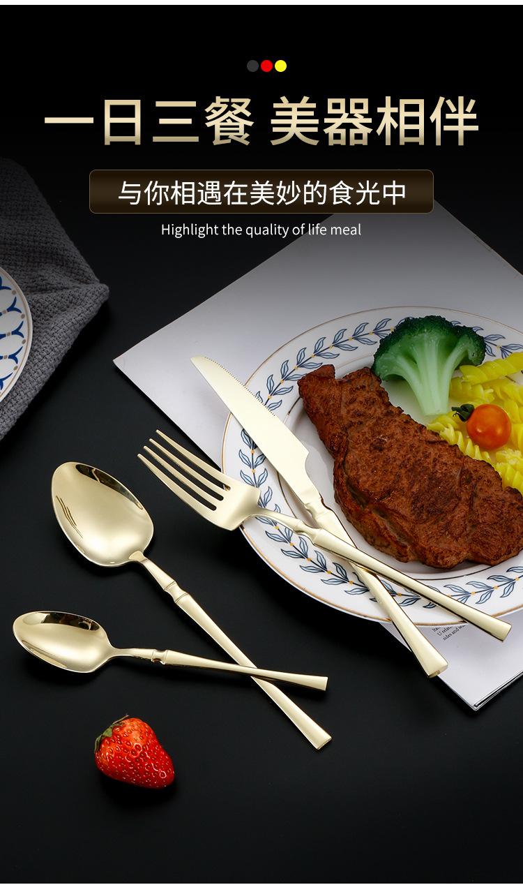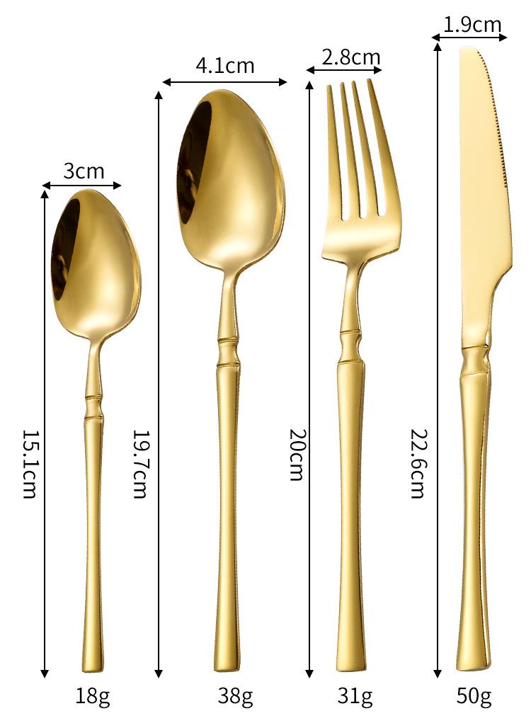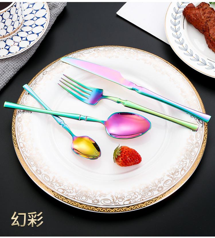 Cuchillo y tenedor de acero inoxidable transfronterizo, cuchara, pequeño, para hombre, de cintura, cuatro piezas, cuchillo y tenedor para carne, juego de vajilla occidental brillante, cuchara de estilo europeo