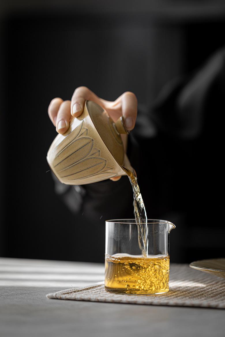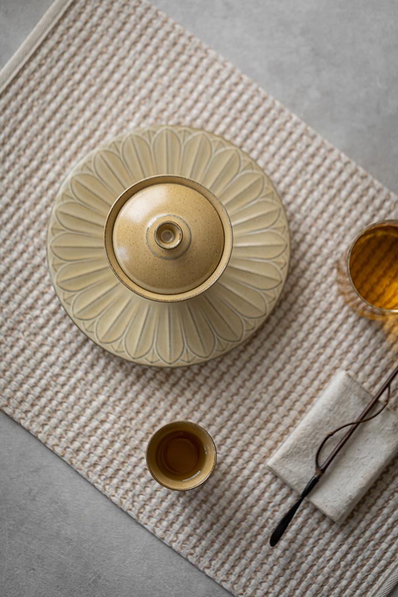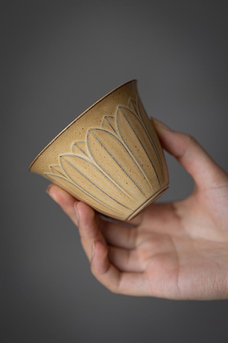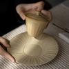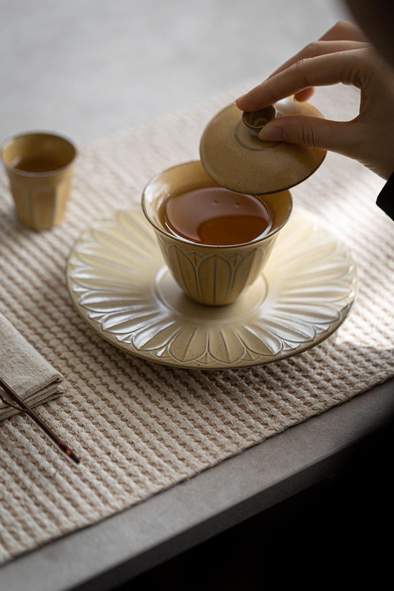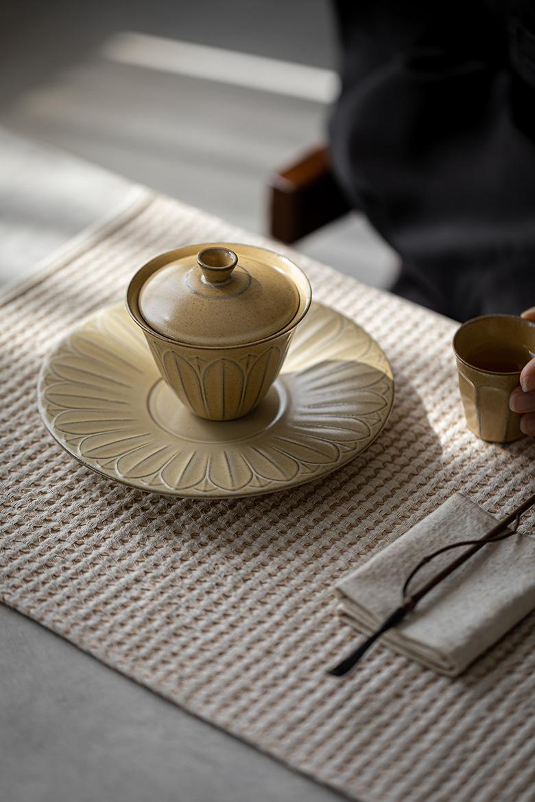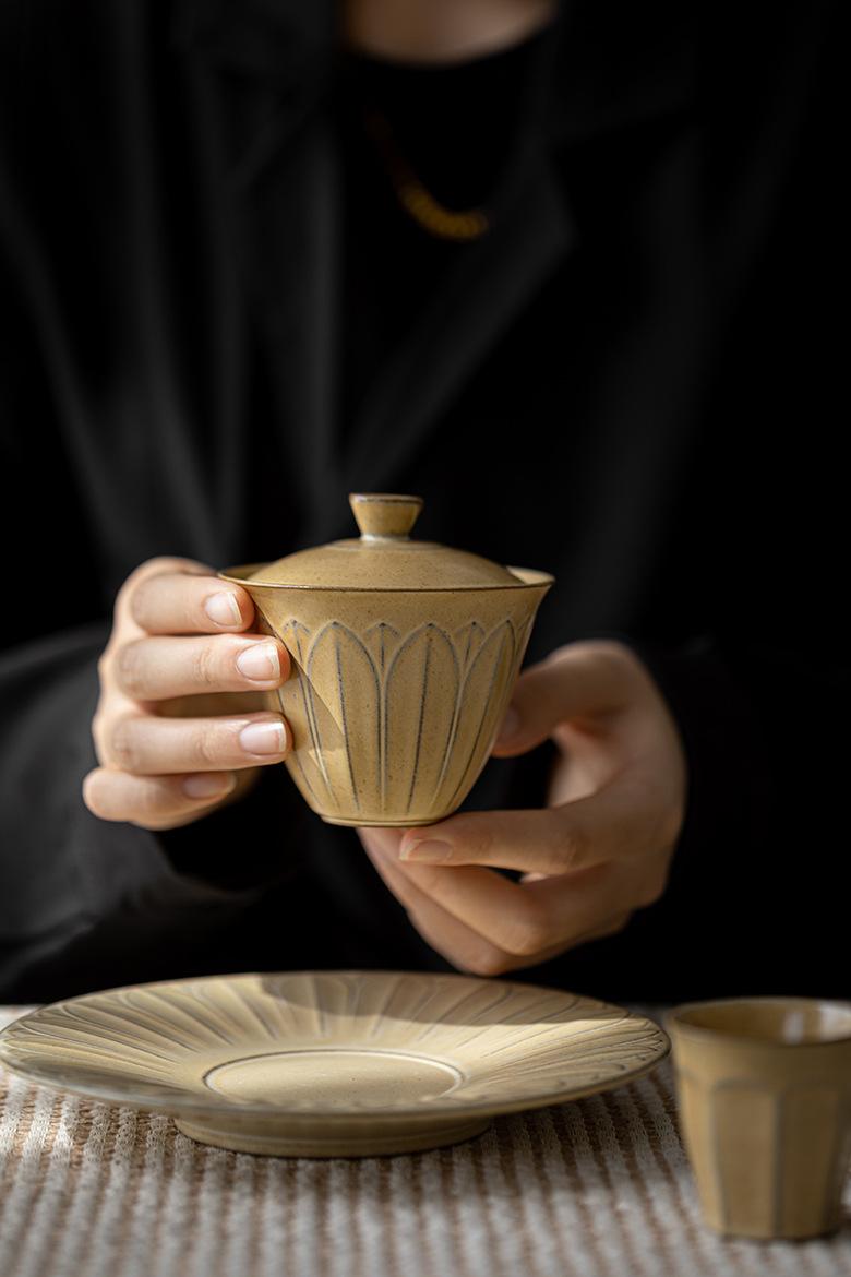 Cuenco de té vintage con esmalte amarillo Miyanmi, juego de té de kung fu hecho a mano de gres, cuenco de té en relieve, tetera de estilo japonés