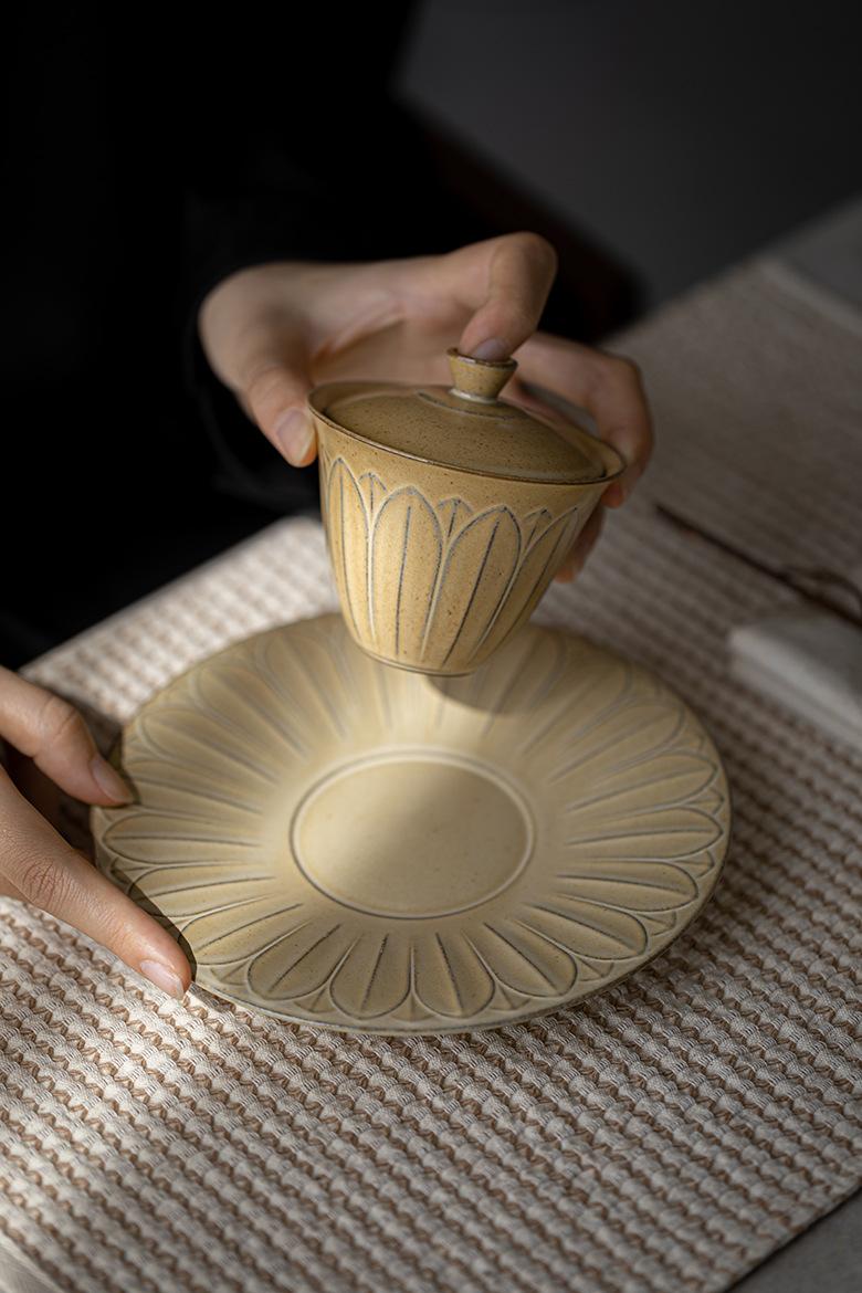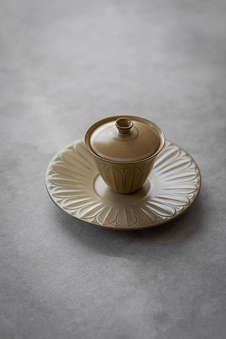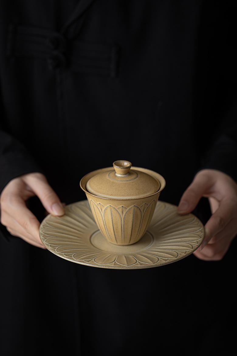 Yellow glaze-Chrysanthemum pattern cover Bowl