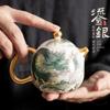 Tetera de Plata Dorada Xianglong Hecha a Mano Cerámica Té Olla Individual Lujo Ligero Hogar Cafetera Tetera Juego de Té Kung Fu Regalo