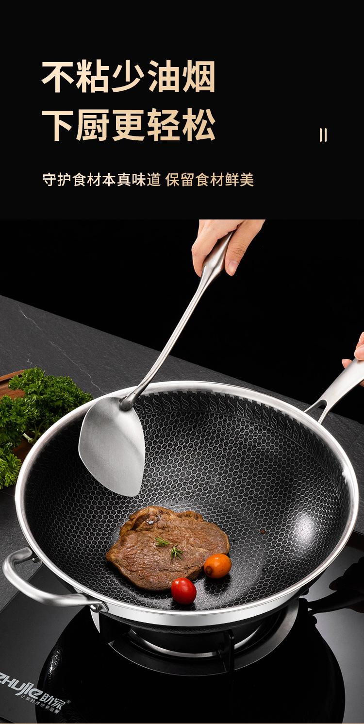 Wok de Acero Inoxidable 304 Sin Recubrimiento Antiadherente Sartén Wok Doméstico Cocina de Inducción Estufa de Gas Olla Especial de Fondo Plano