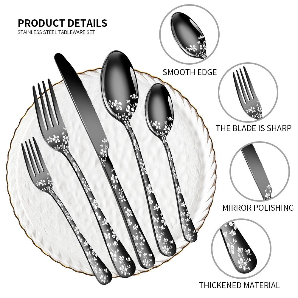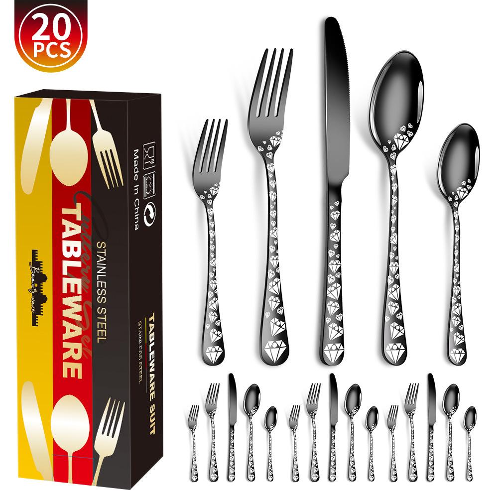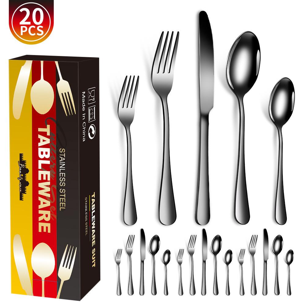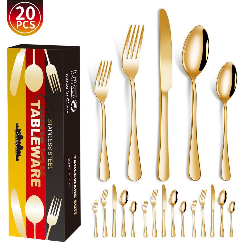 Vajilla de acero inoxidable transfronteriza de 20 piezas, cuchillo y tenedor, cuchillo para carne occidental, tenedor, cuchara, tenedor y cuchara, caja de regalo.