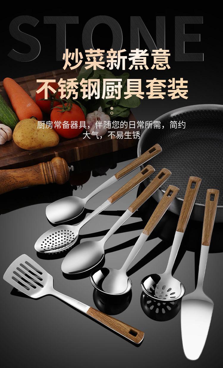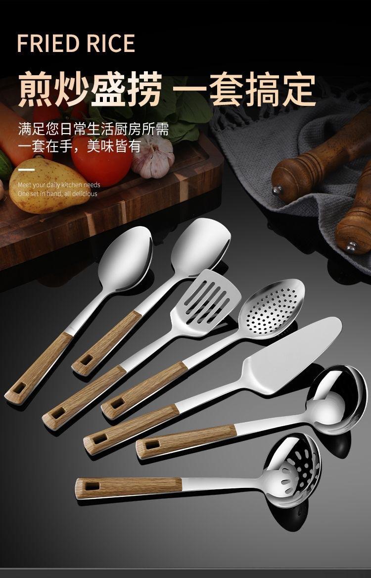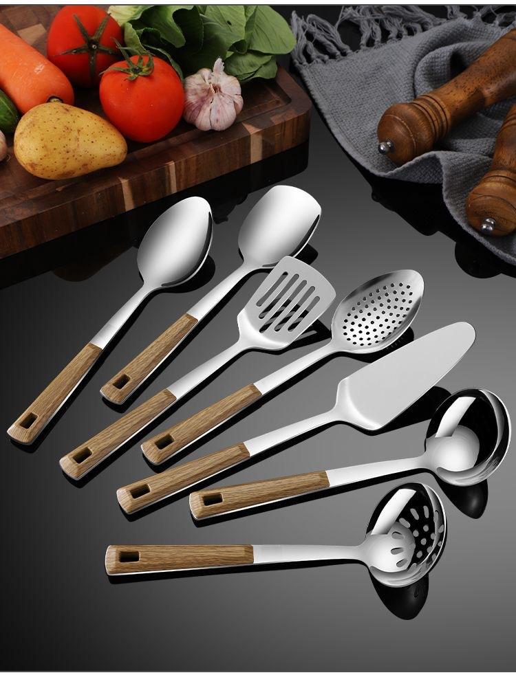 Compra Espátula de Acero Inoxidable con Mango de Madera, Espátula para Cocinar, Espumadera, Espátula para Freír, Juego de Siete Piezas de Utensilios de Cocina, Utensilios Antiadherentes al por mayor en Joom.pro