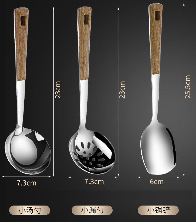 Wood grain spatula, Wood grain small soup spoon, Wood grain small frying shovel, Wood grain small colander