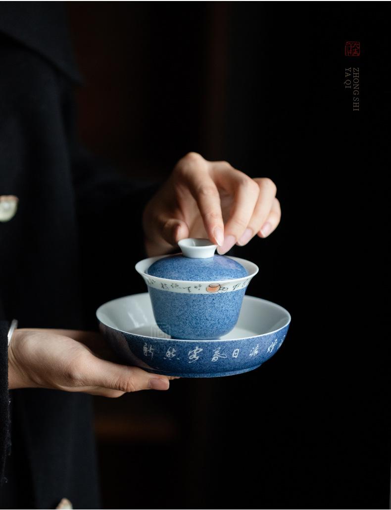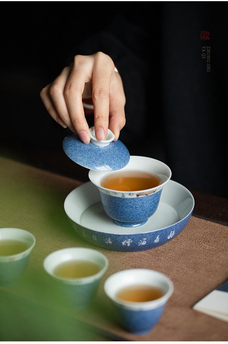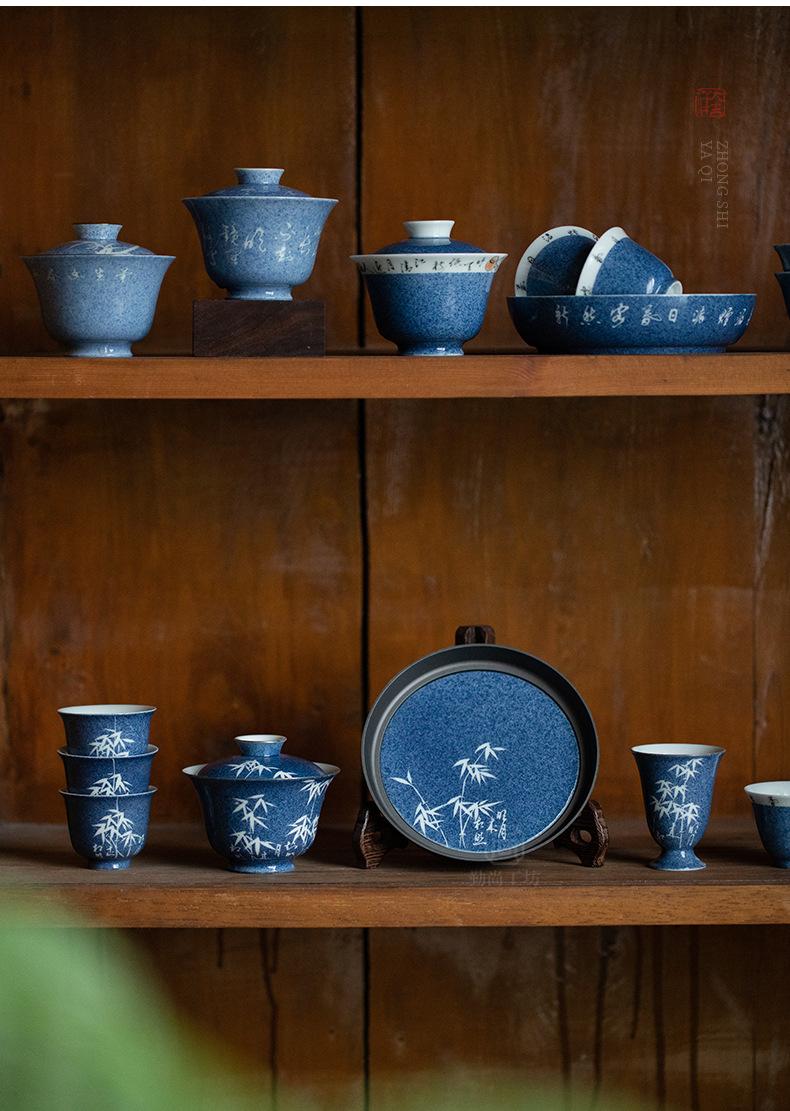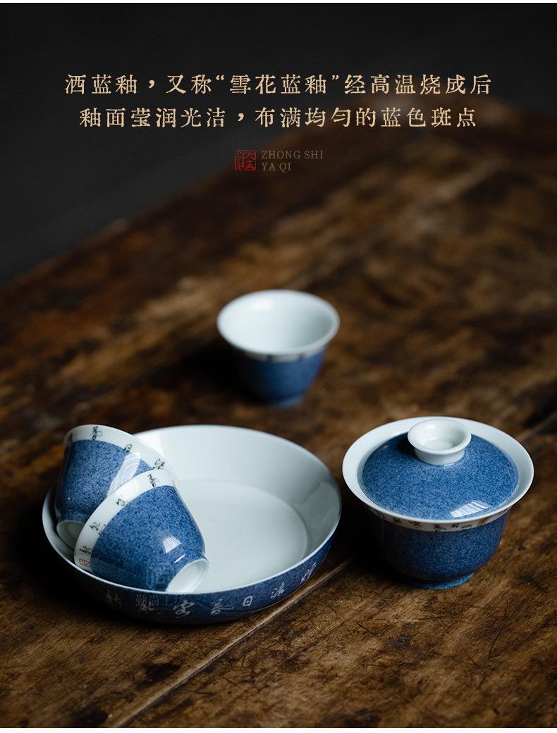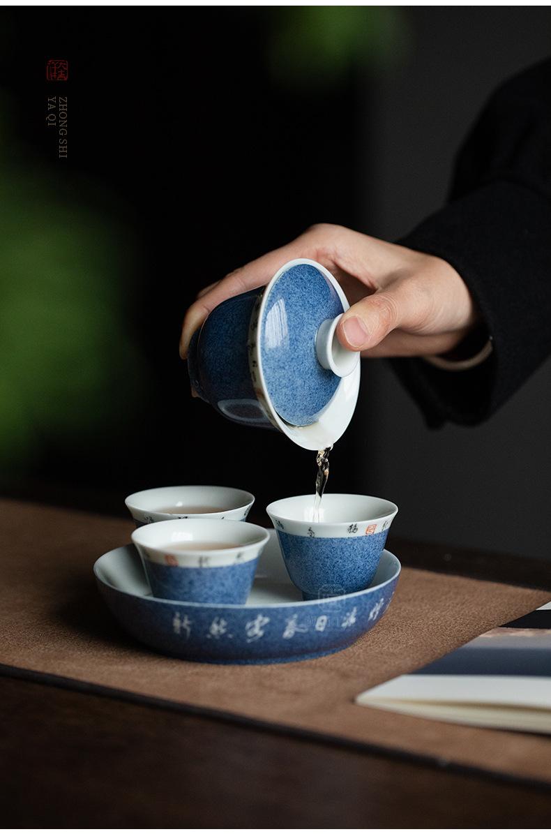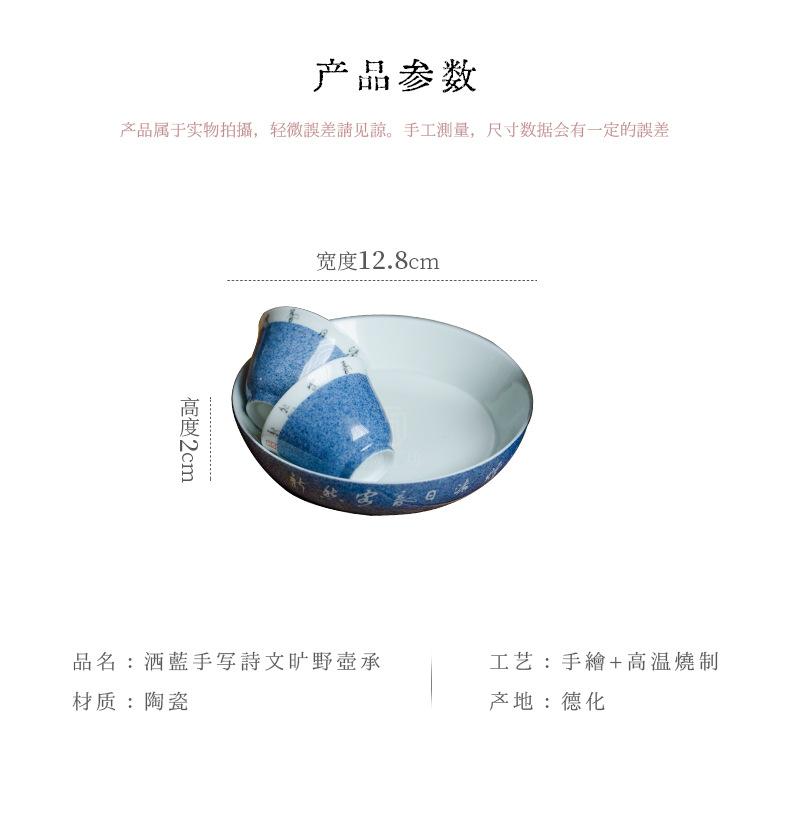 Salpicaduras de escritura azul Soporte para olla Shiwen para el hogar Cubierta de cerámica Soporte para el fondo del tazón Bandeja seca para burbujas para tetera Accesorios para ceremonia del té Portaté Bandeja pequeña