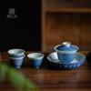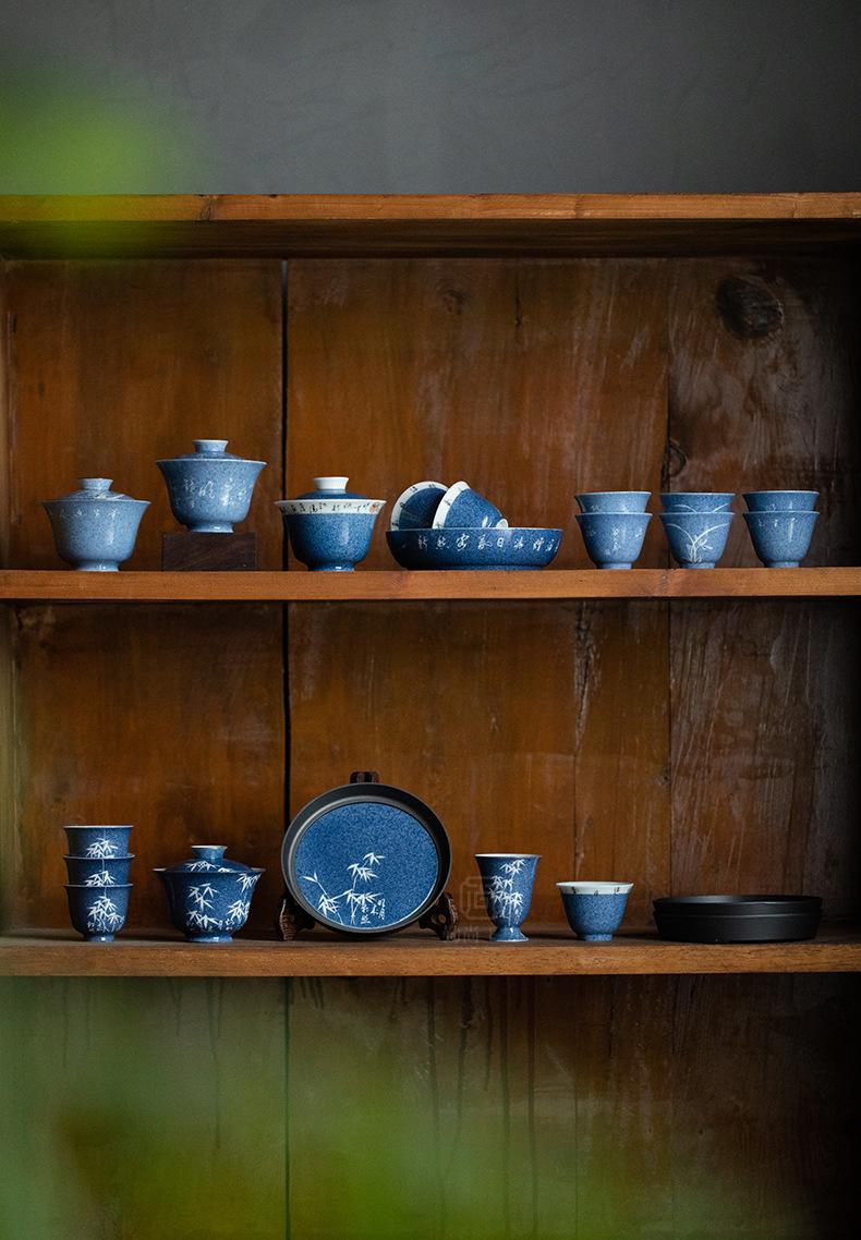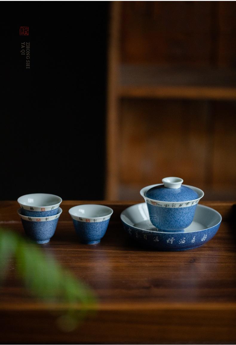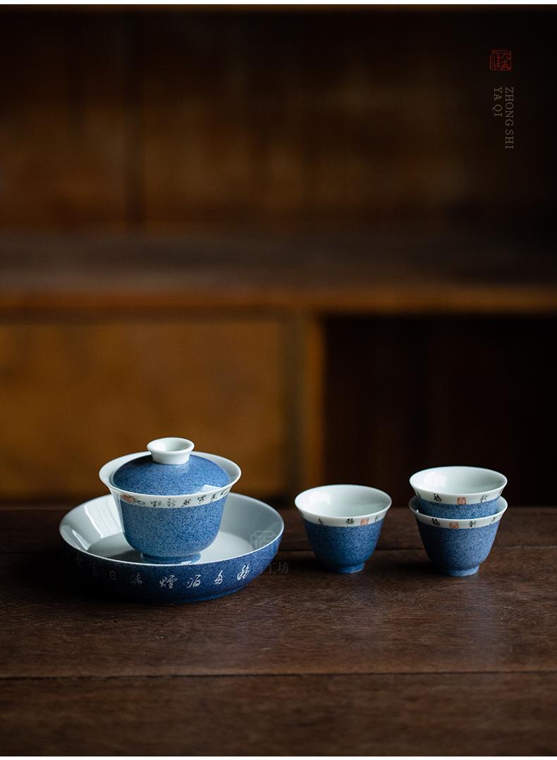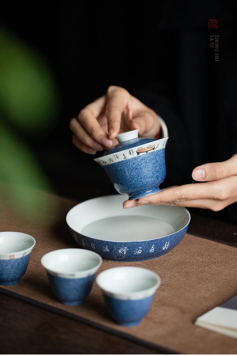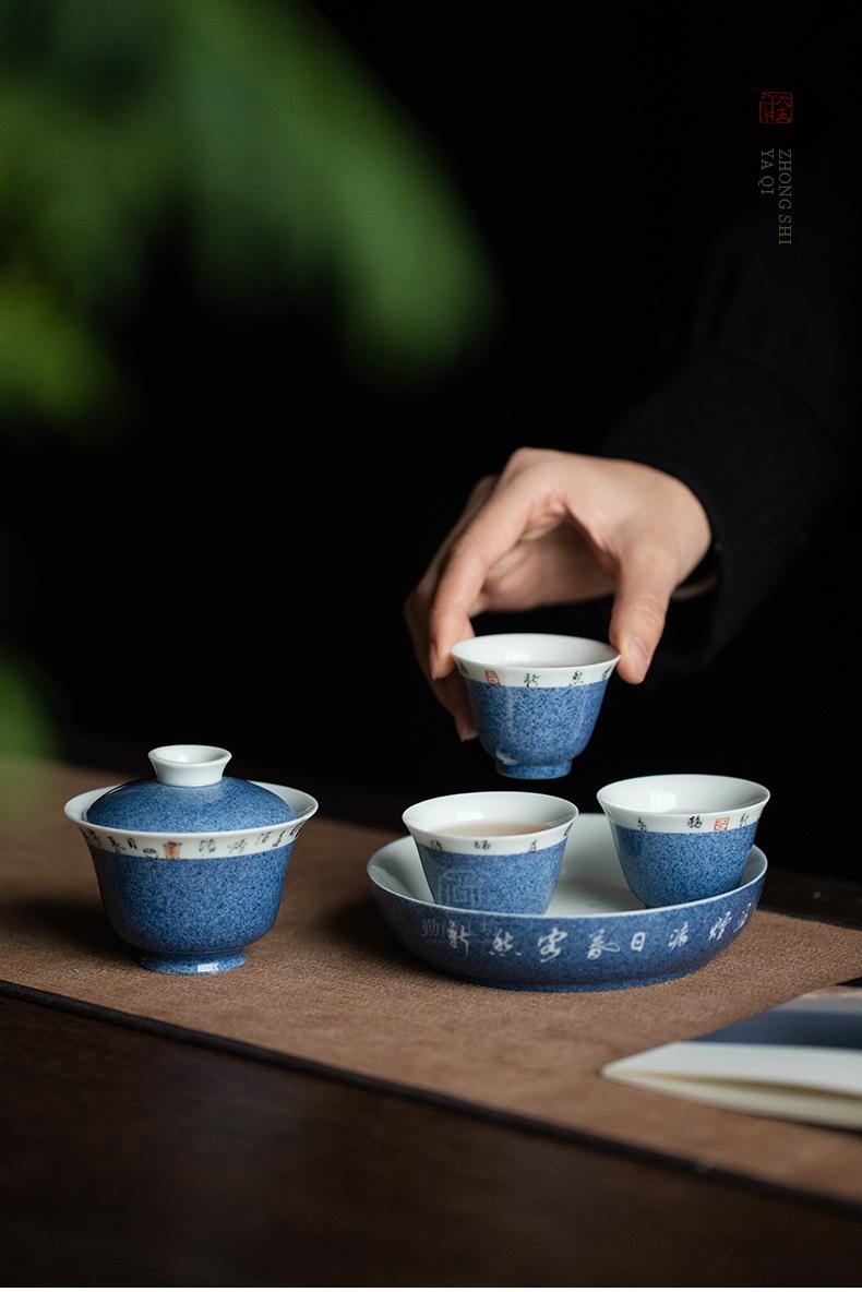 Salpicaduras de escritura azul Soporte para olla Shiwen para el hogar Cubierta de cerámica Soporte para el fondo del tazón Bandeja seca para burbujas para tetera Accesorios para ceremonia del té Portaté Bandeja pequeña
