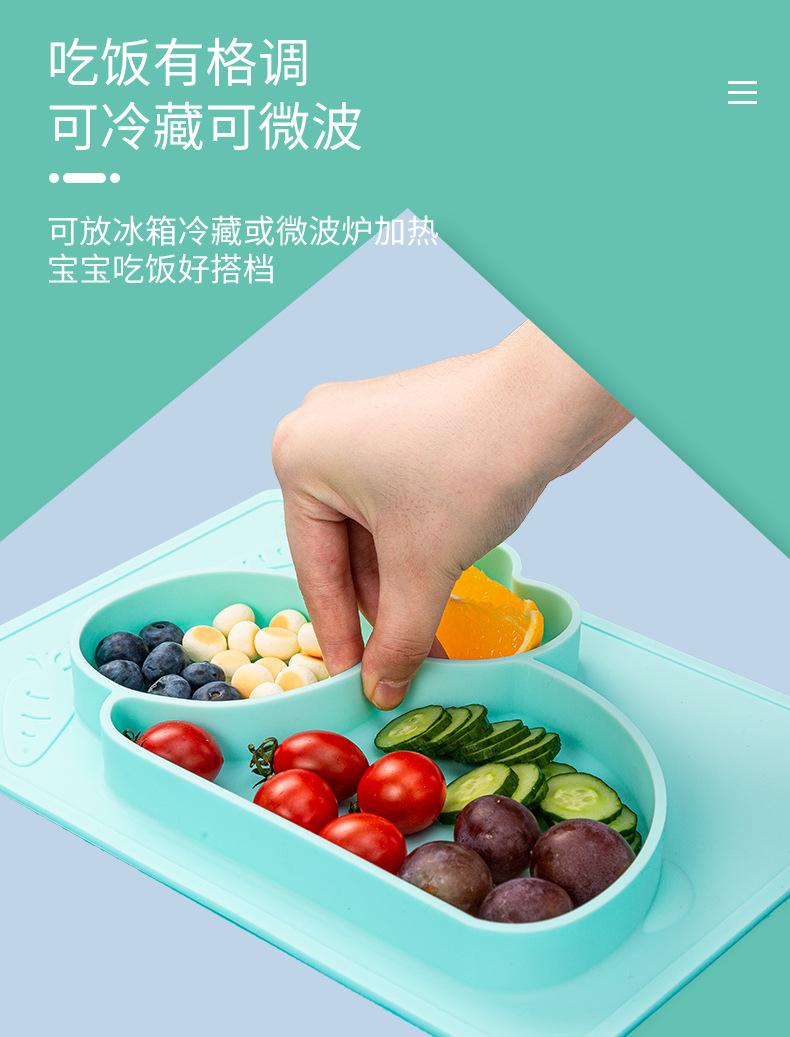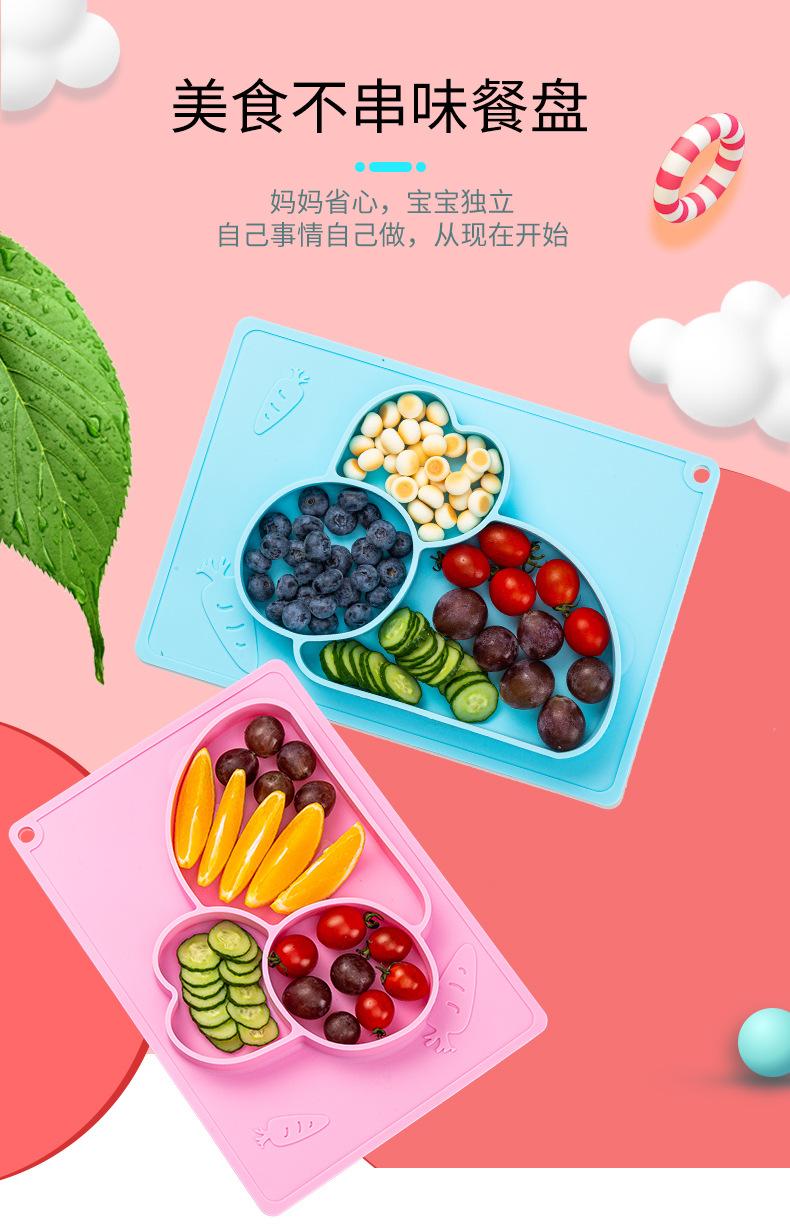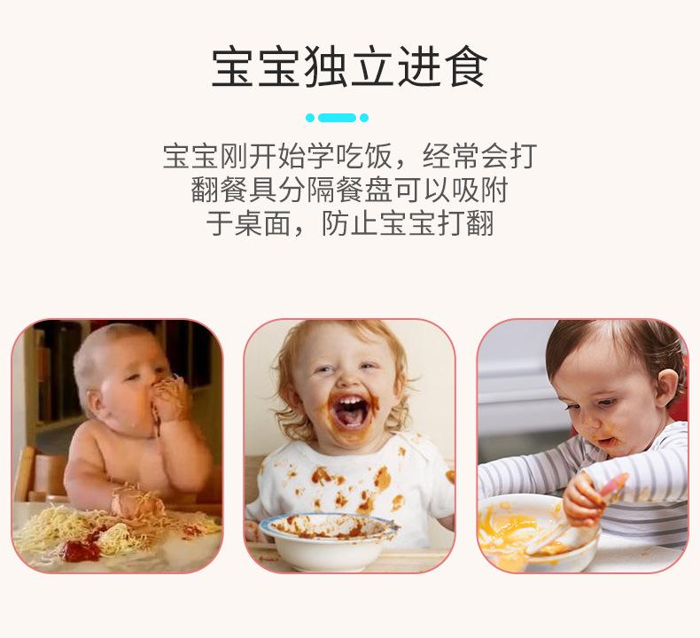 Plato de silicona con dibujos animados para niños Dorado, con ventosa dividida, anticaídas, 6285
