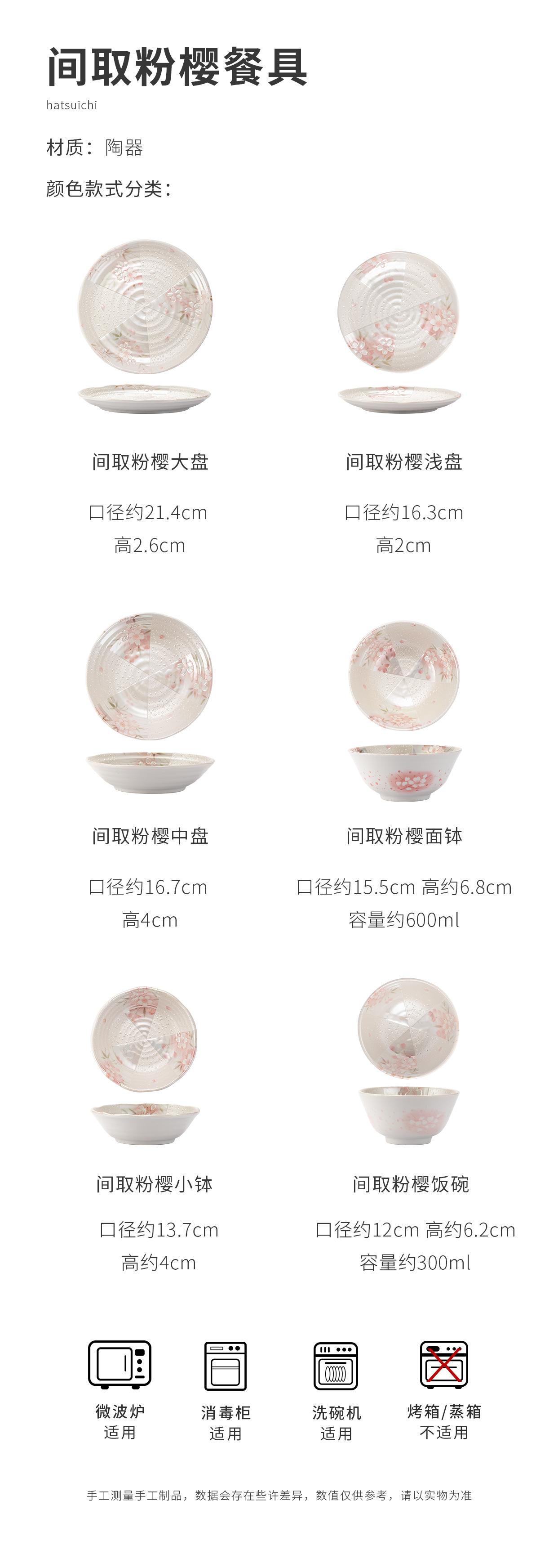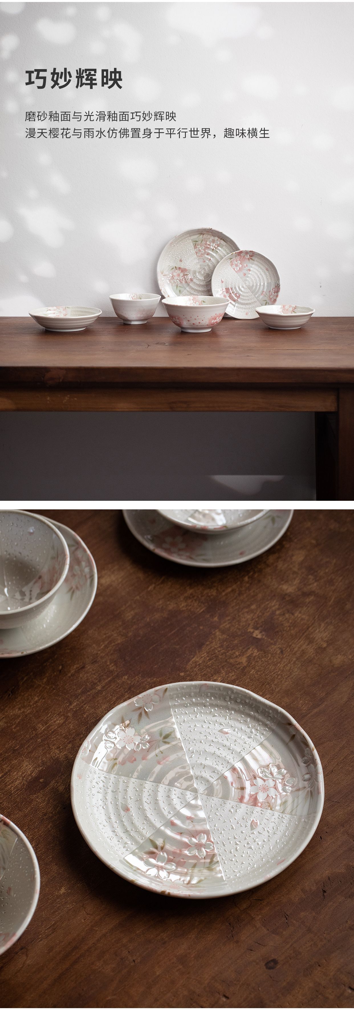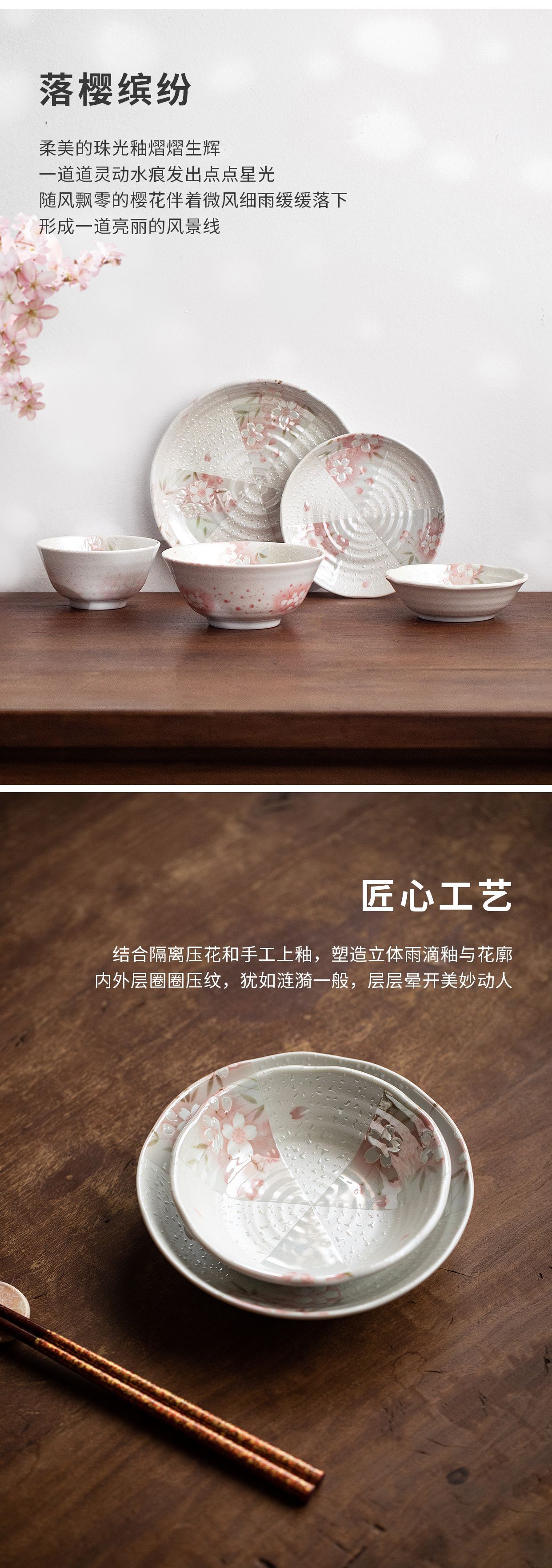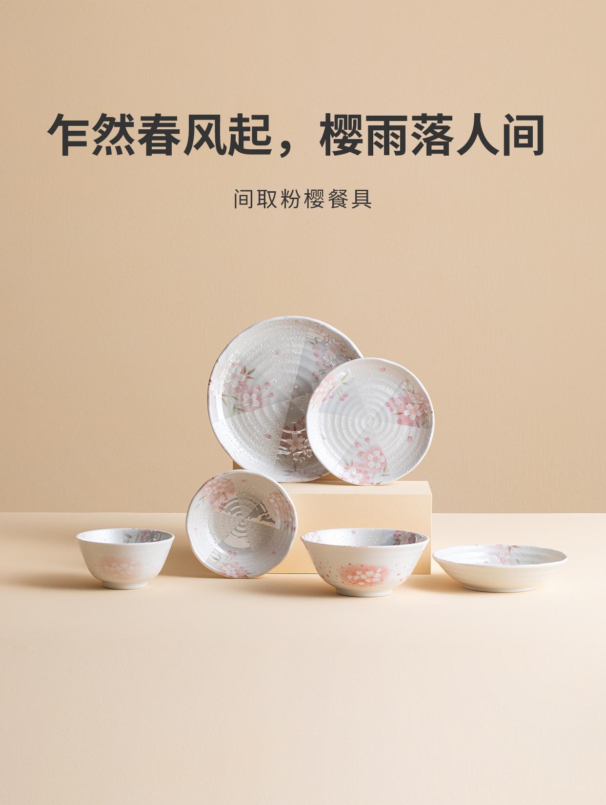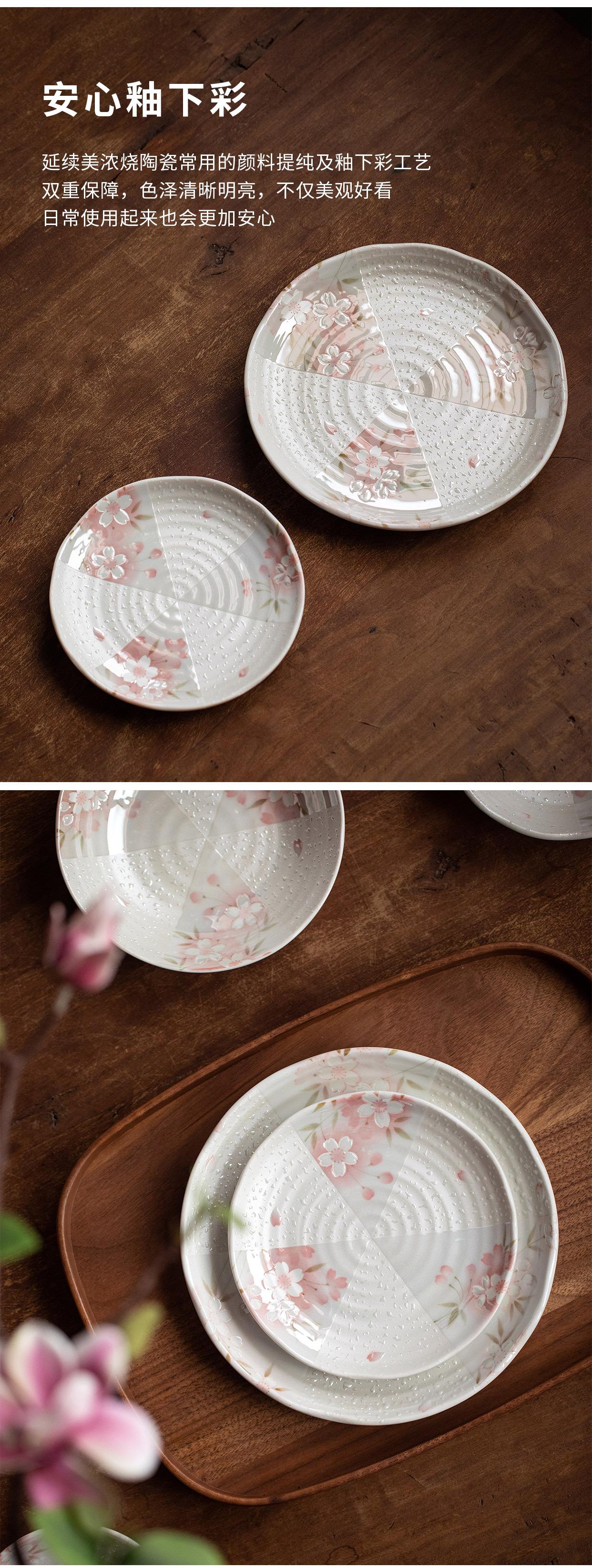 Plato de esmalte perlado de flor de cerezo Meizhong importado de Japón, plato japonés para el hogar, plato sencillo, vajilla de cerámica fresca y pequeña