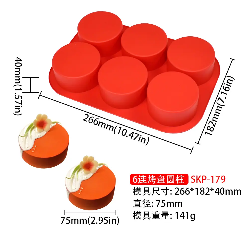 Molde cilíndrico de silicona de 6 piezas para hornear, molde para pastel de bricolaje, molde para hornear pudín Qi Feng, molde para vela de aromaterapia, yeso, molde para jabón hecho a mano