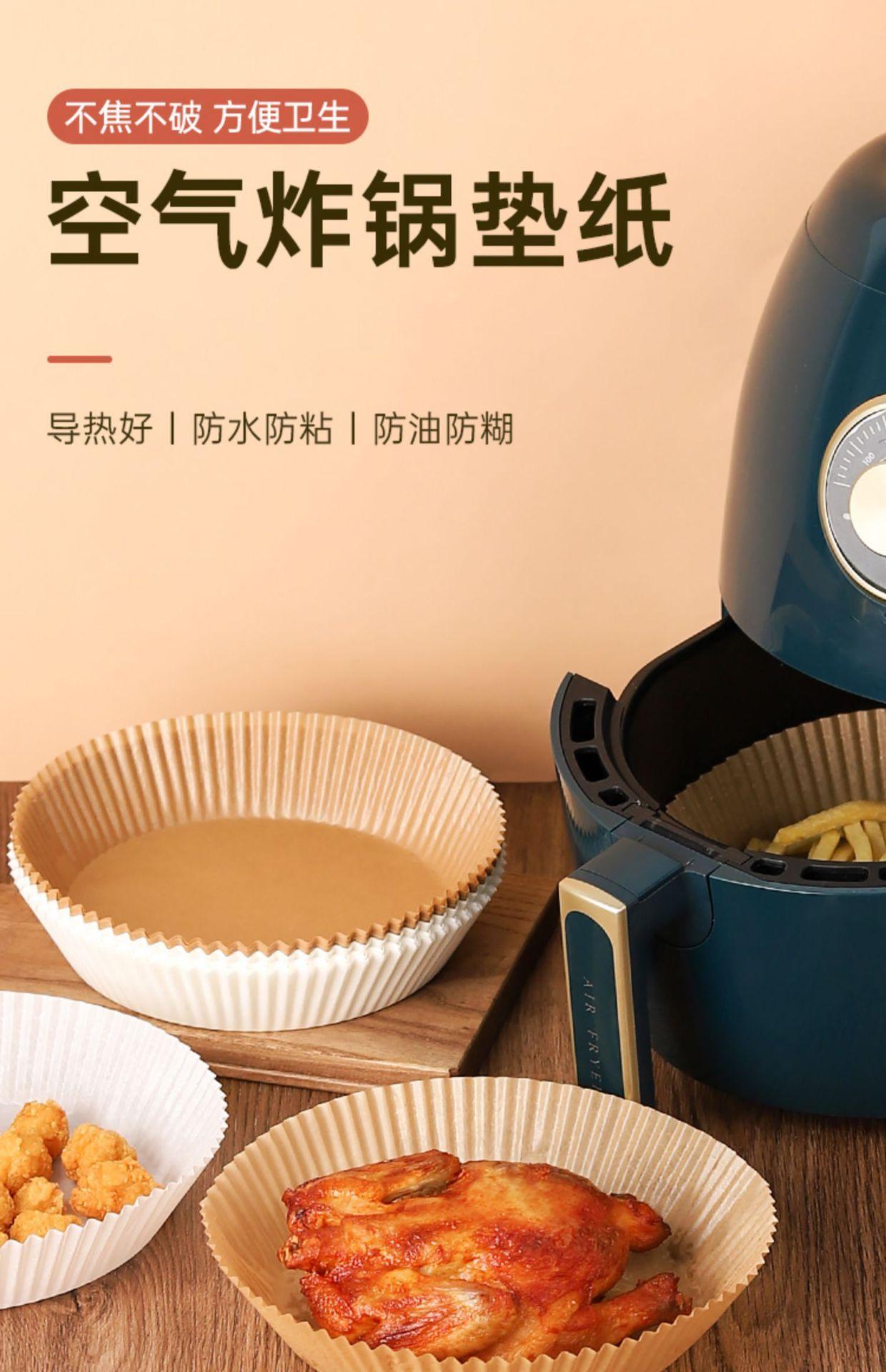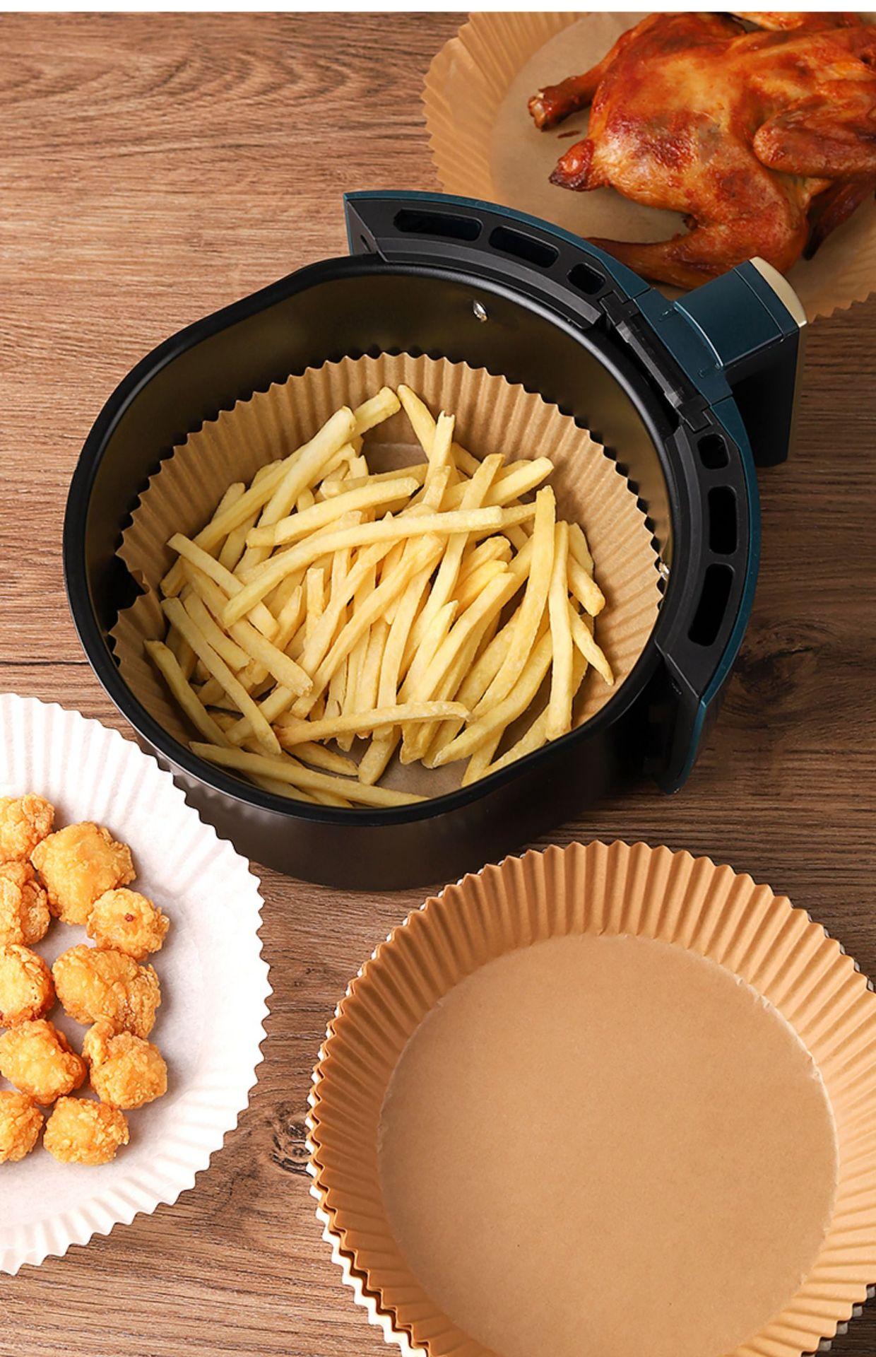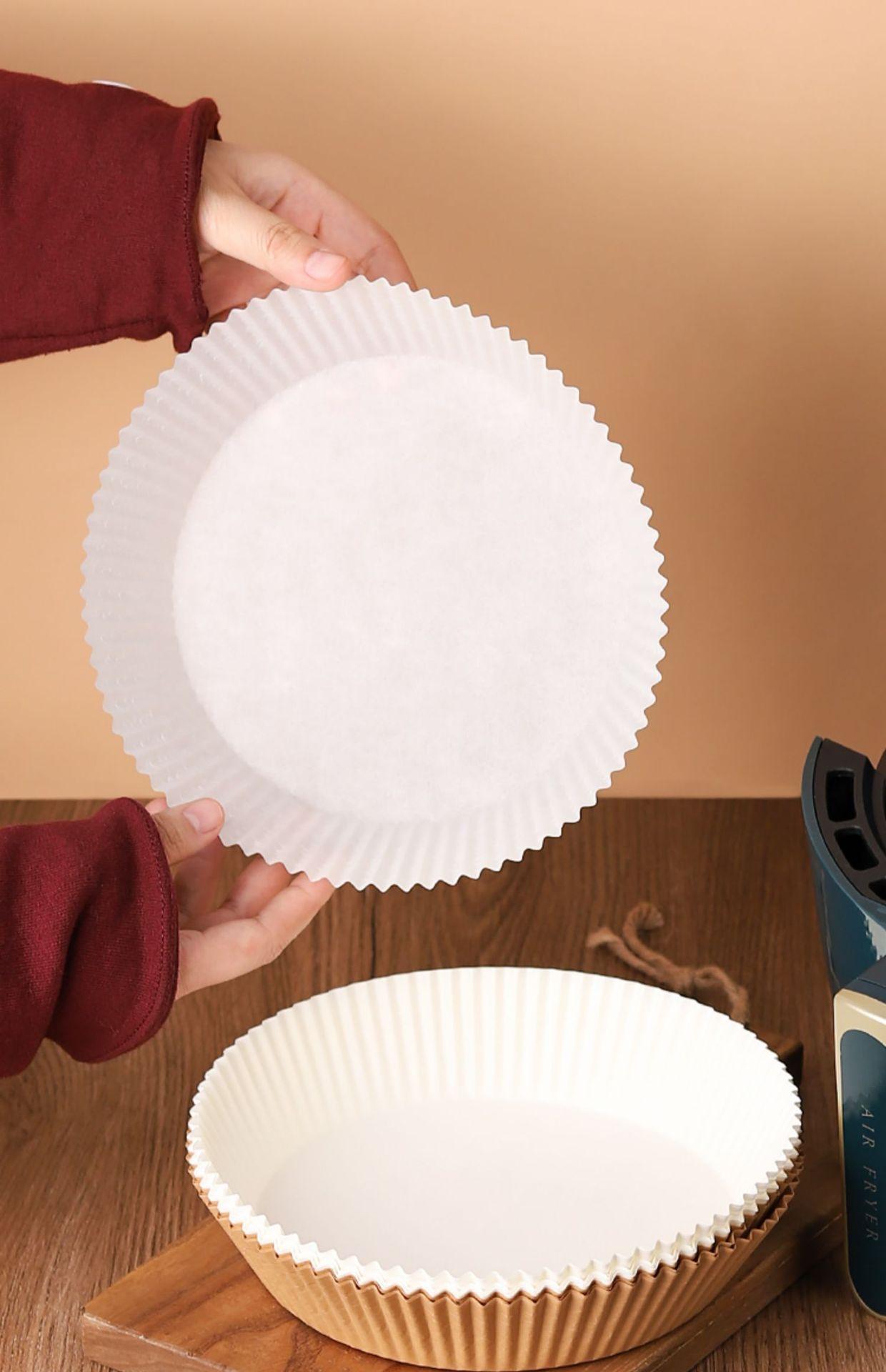 Bandeja de papel especial para freidora de aire, bandeja de papel de silicona para aceite, soporte de papel, papel absorbente de aceite redondo, almohadilla para alimentos, papel para hornear, papel desechable para hornear en el hogar
