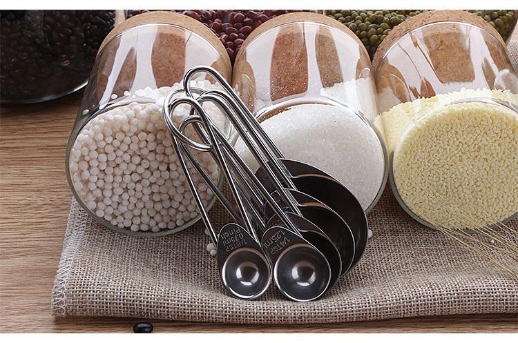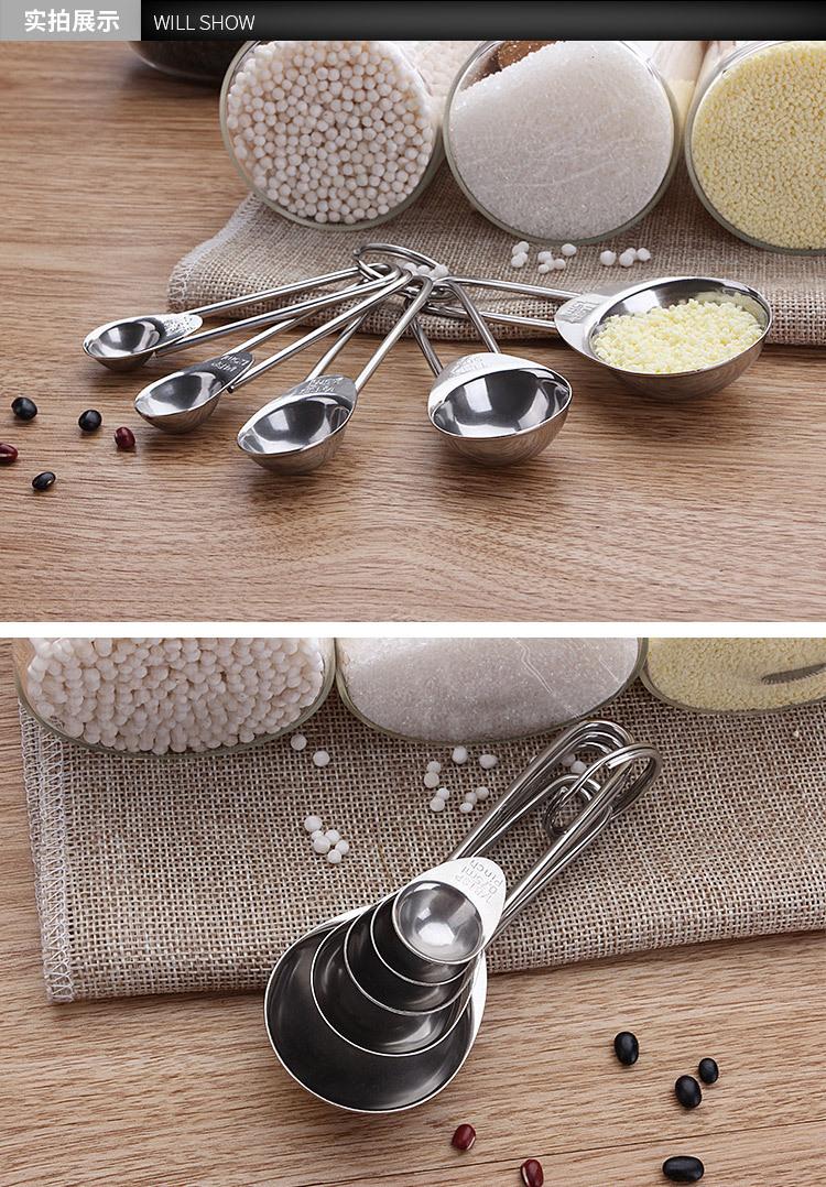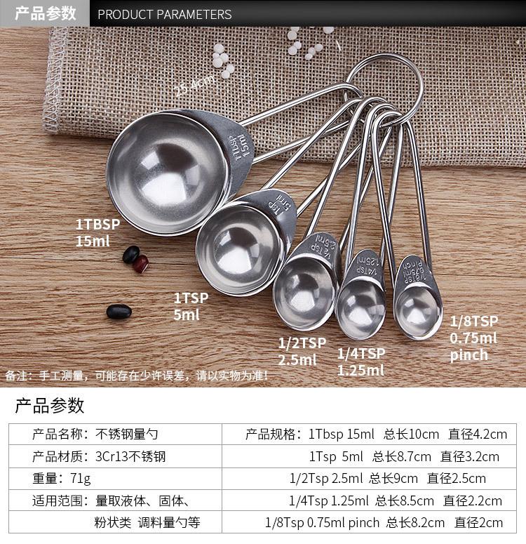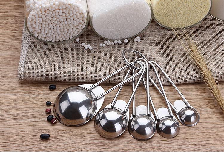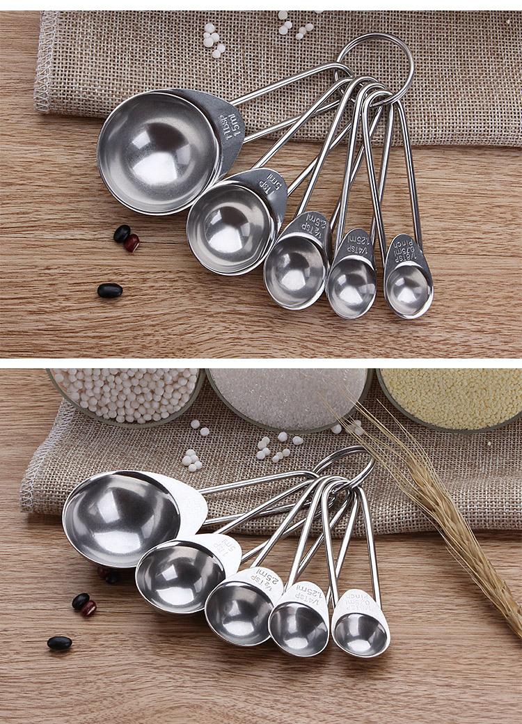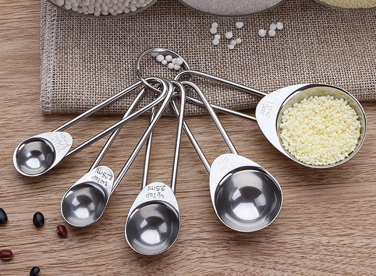 Cuchara medidora redonda cuadrada de acero inoxidable de Amazon, juego de 5 piezas, cuchara para condimentar, cuchara medidora para hornear, cuchara para cocinar