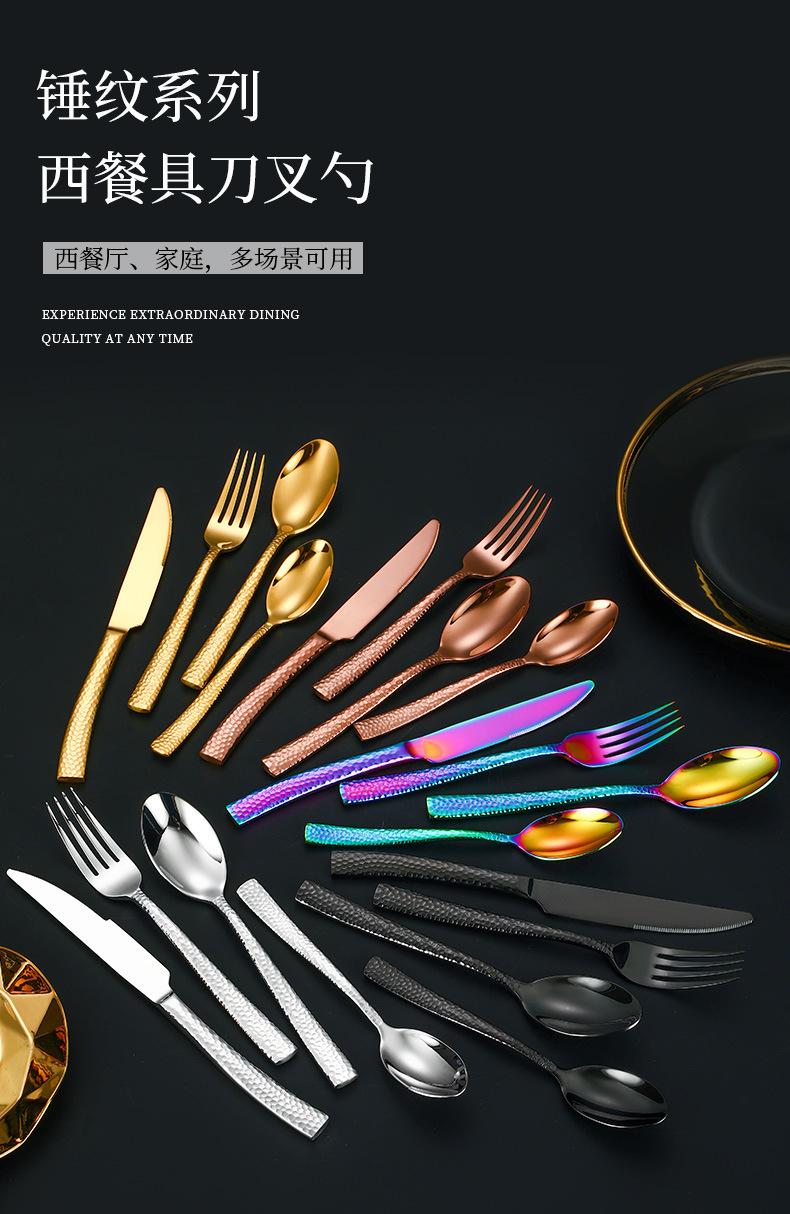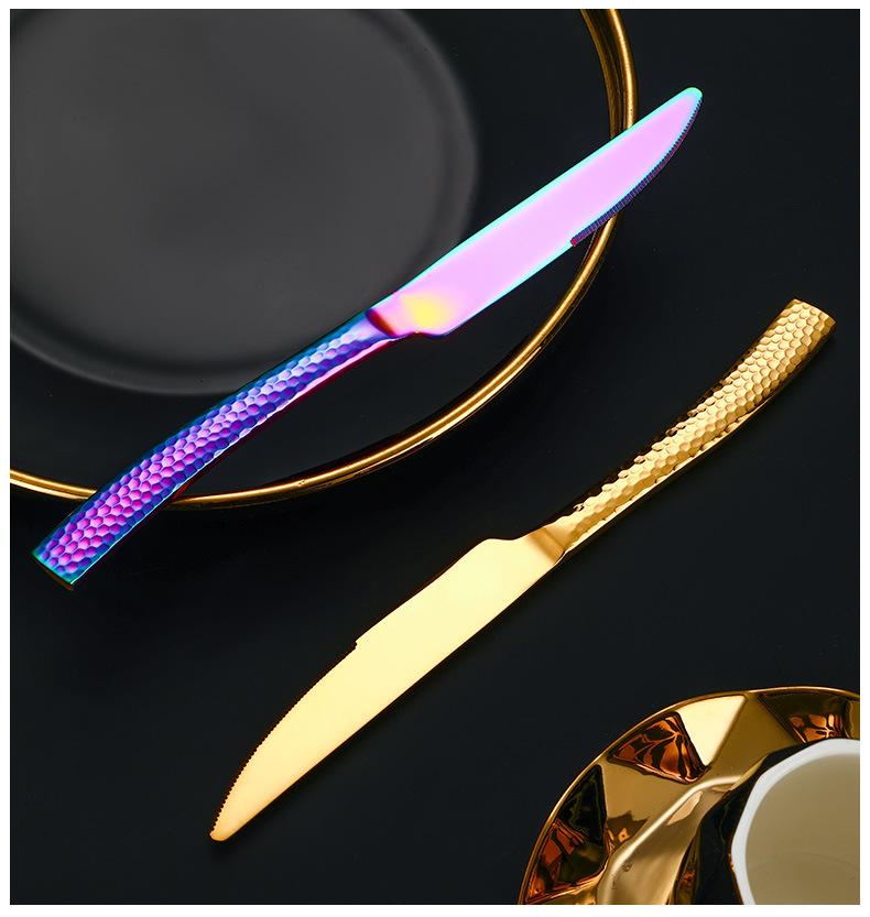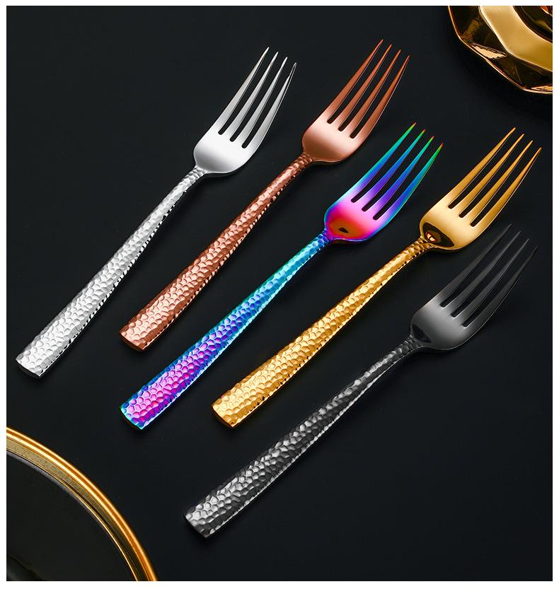 Cuchillo y tenedor de acero inoxidable 304 con mango de martillo creativo para el hogar, juego de vajilla de comida occidental.