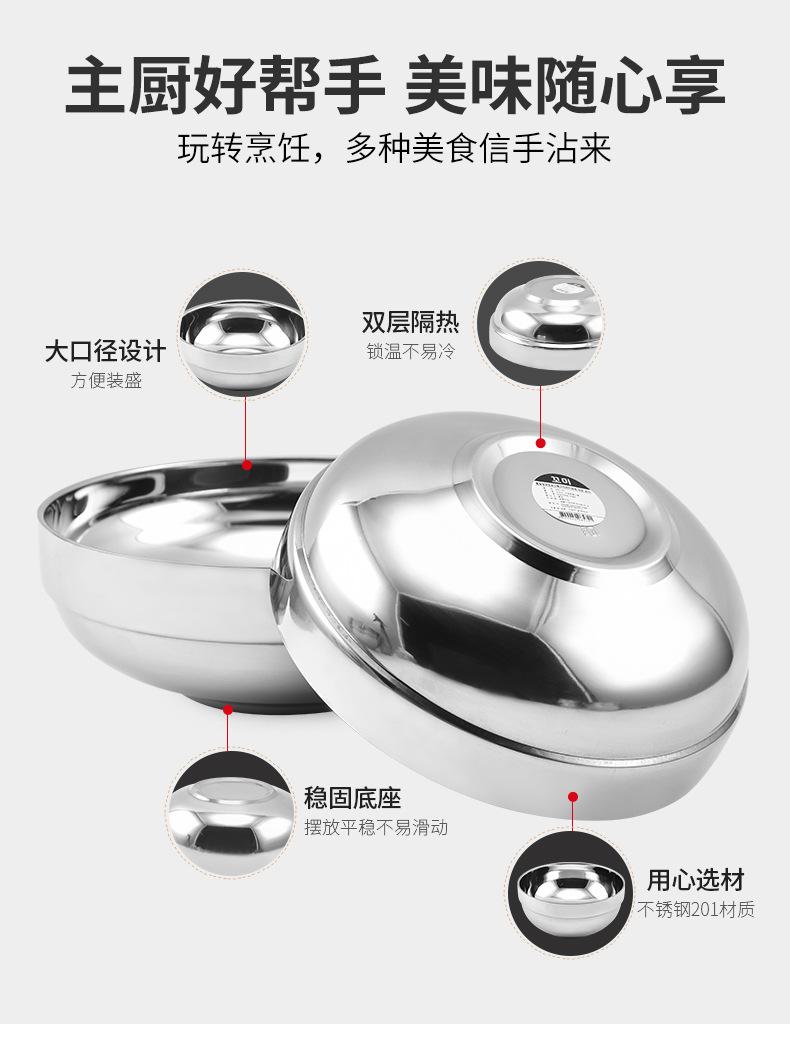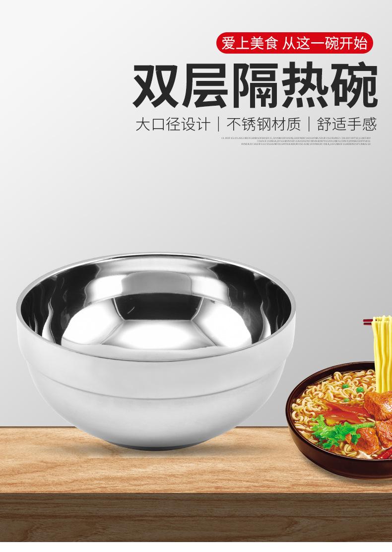Compra Cuenco de arroz de acero inoxidable ligero de doble capa con aislamiento térmico, estilo coreano, cuenco para ensaladas y fideos fríos, herramienta de cocina multiusos. al por mayor en Joom.pro