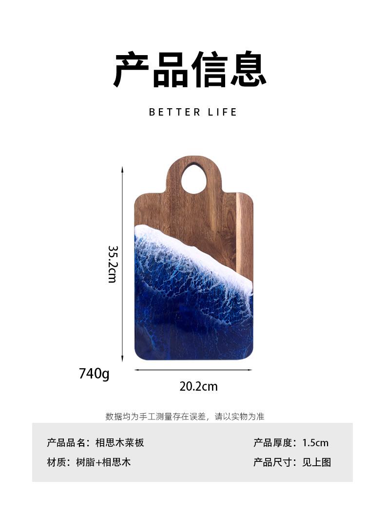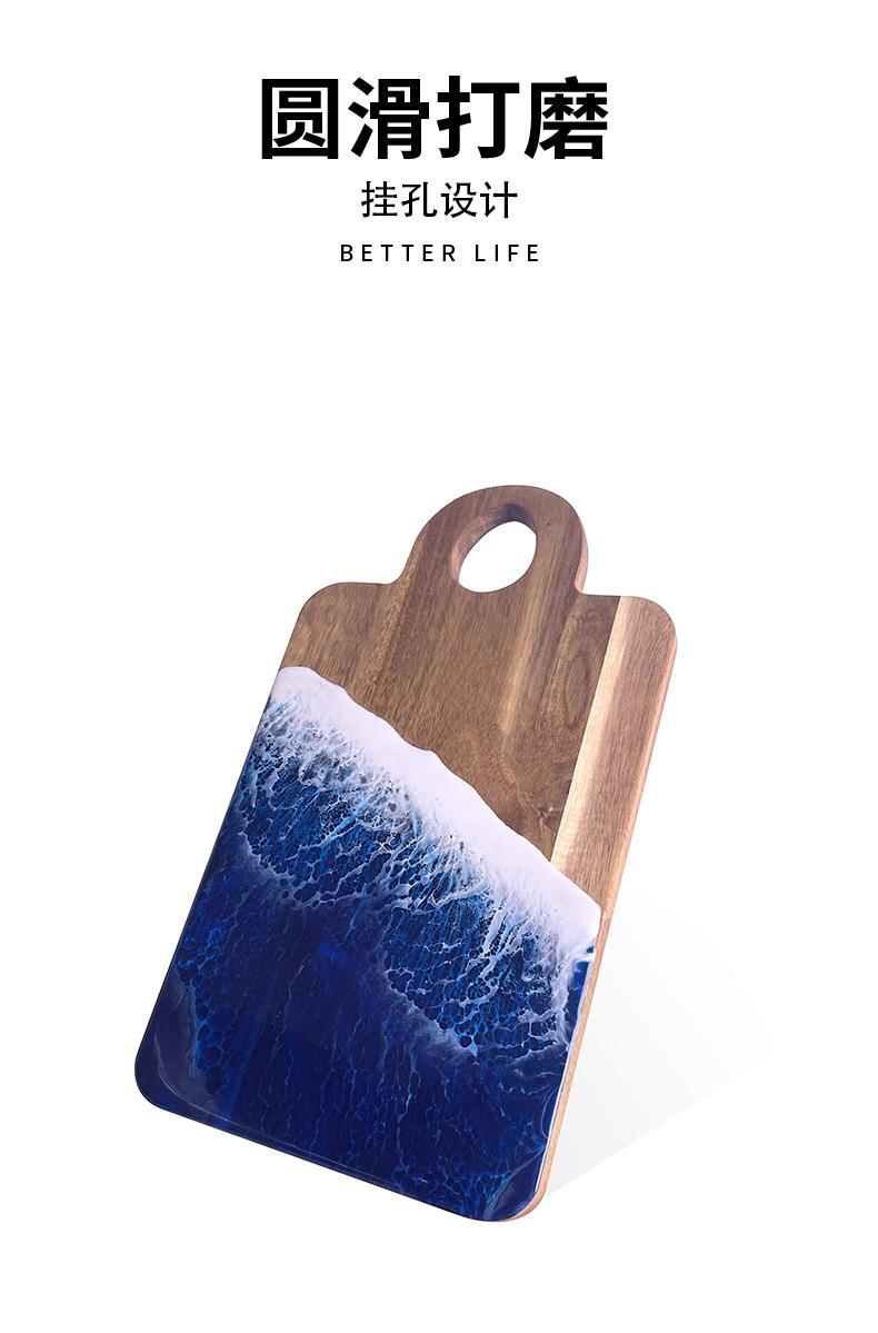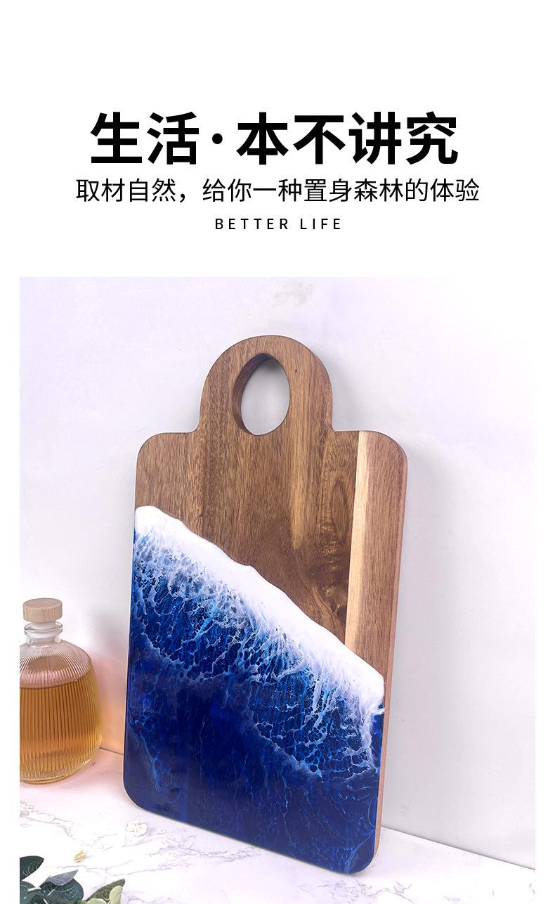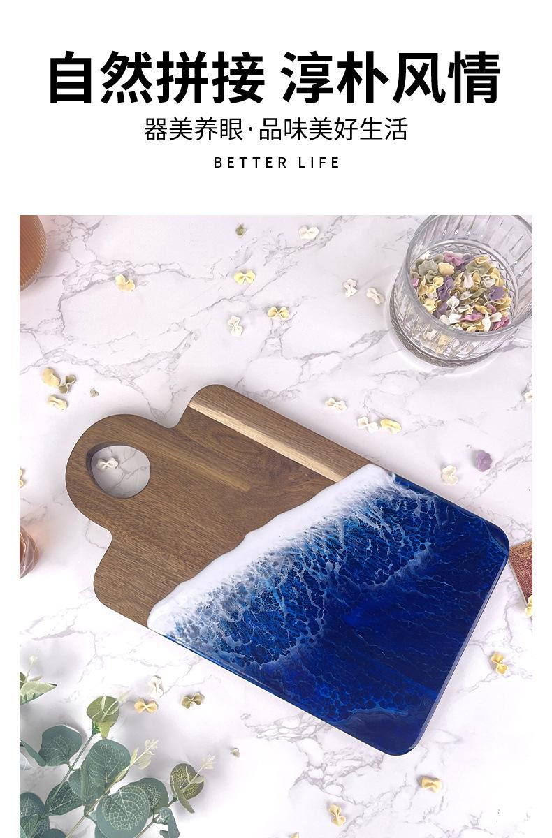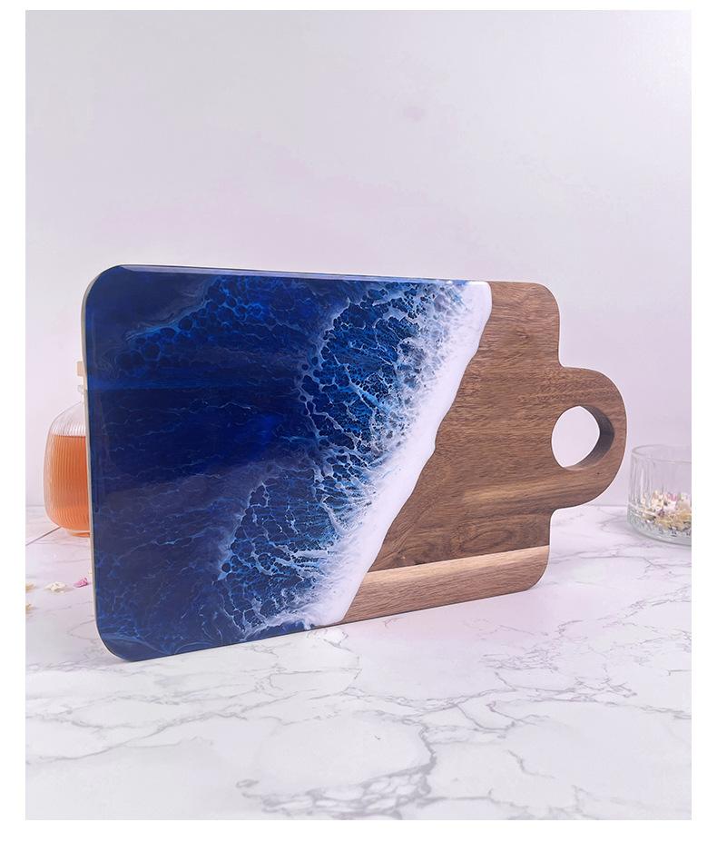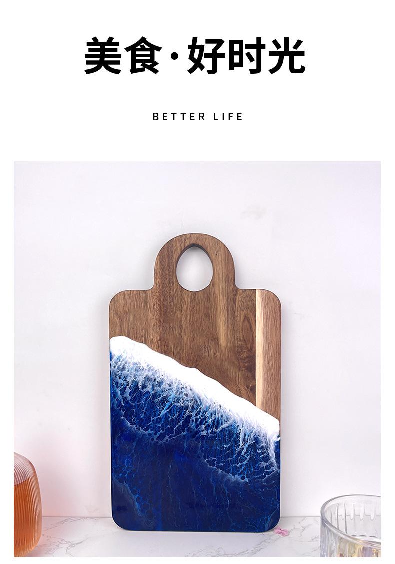 Tabla de cortar de resina con borde ondulado, tabla de cortar de madera de acacia con empalme de resina, tabla de cortar de frutas y tabla de cortar carne
