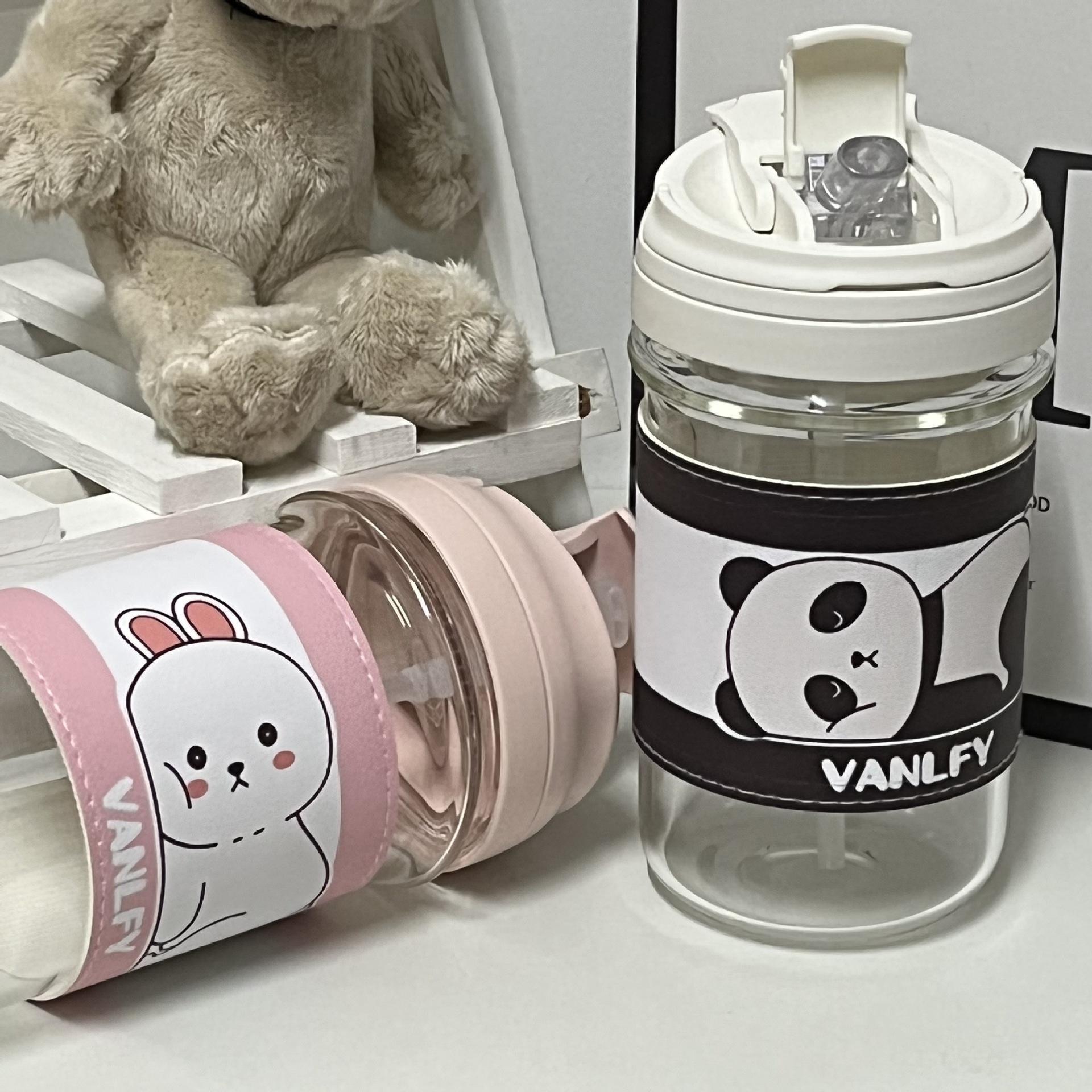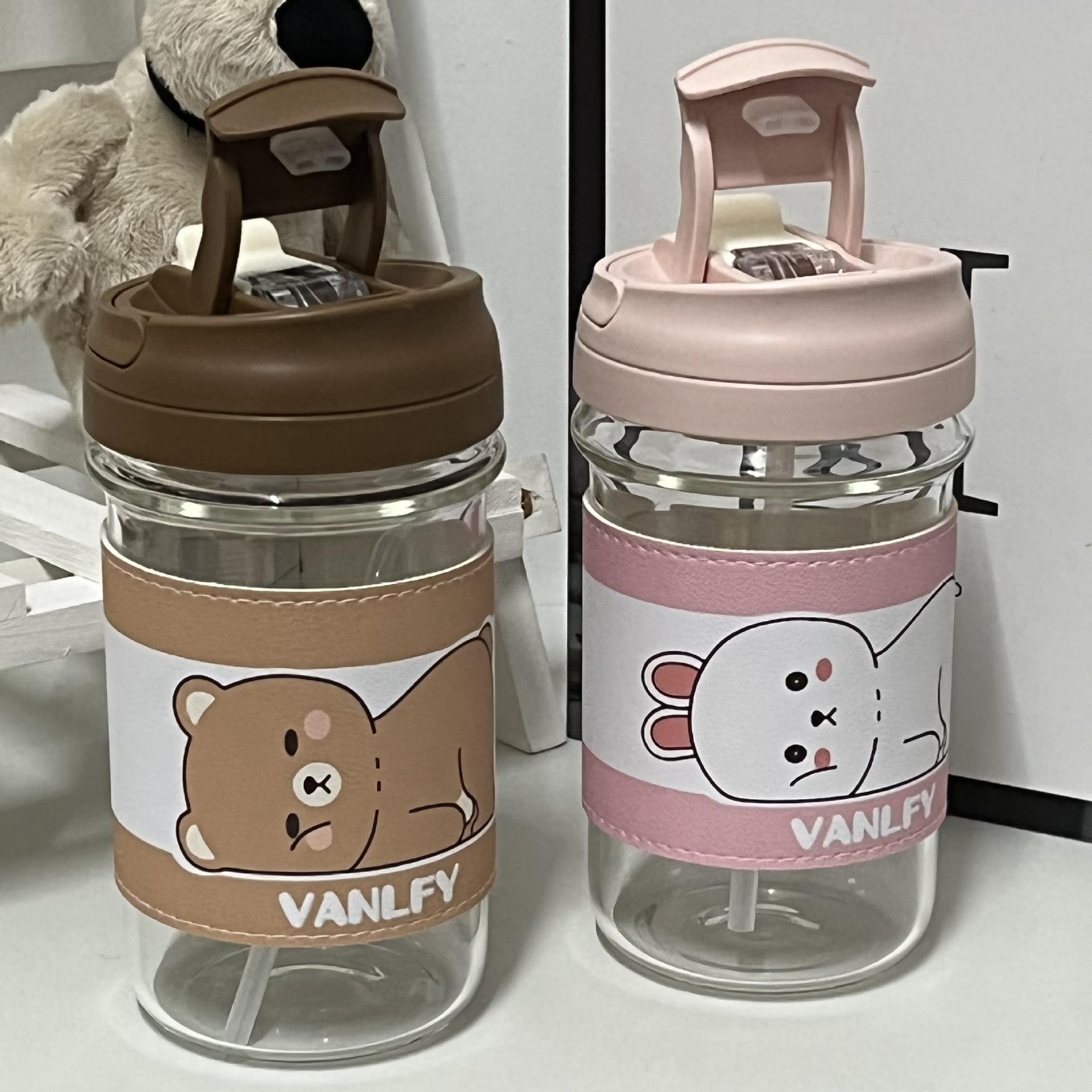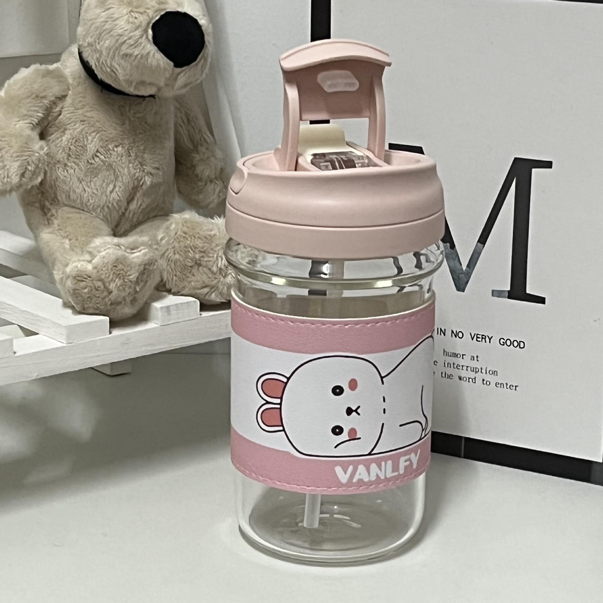 Vaso de Agua para Niñas Vaso de Vidrio Niña con Buena Apariencia y Gran Capacidad de Vientre Doble Bebida 2024 Nuevo Popote Oficina Vaso Lindo