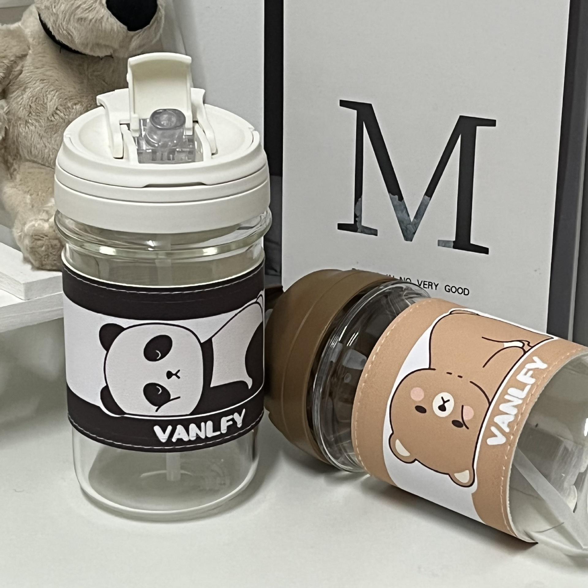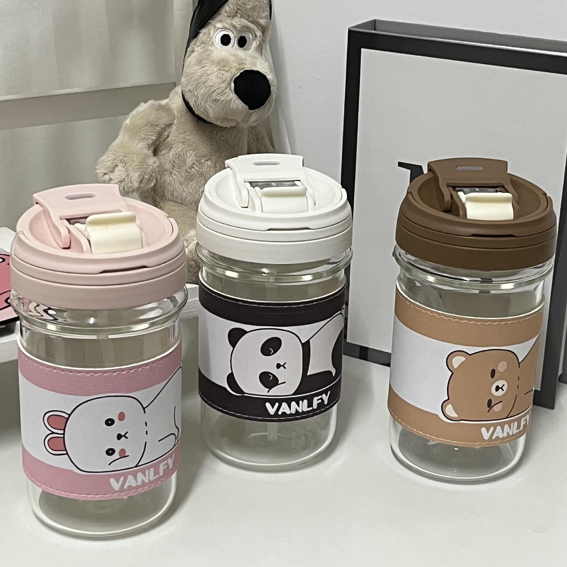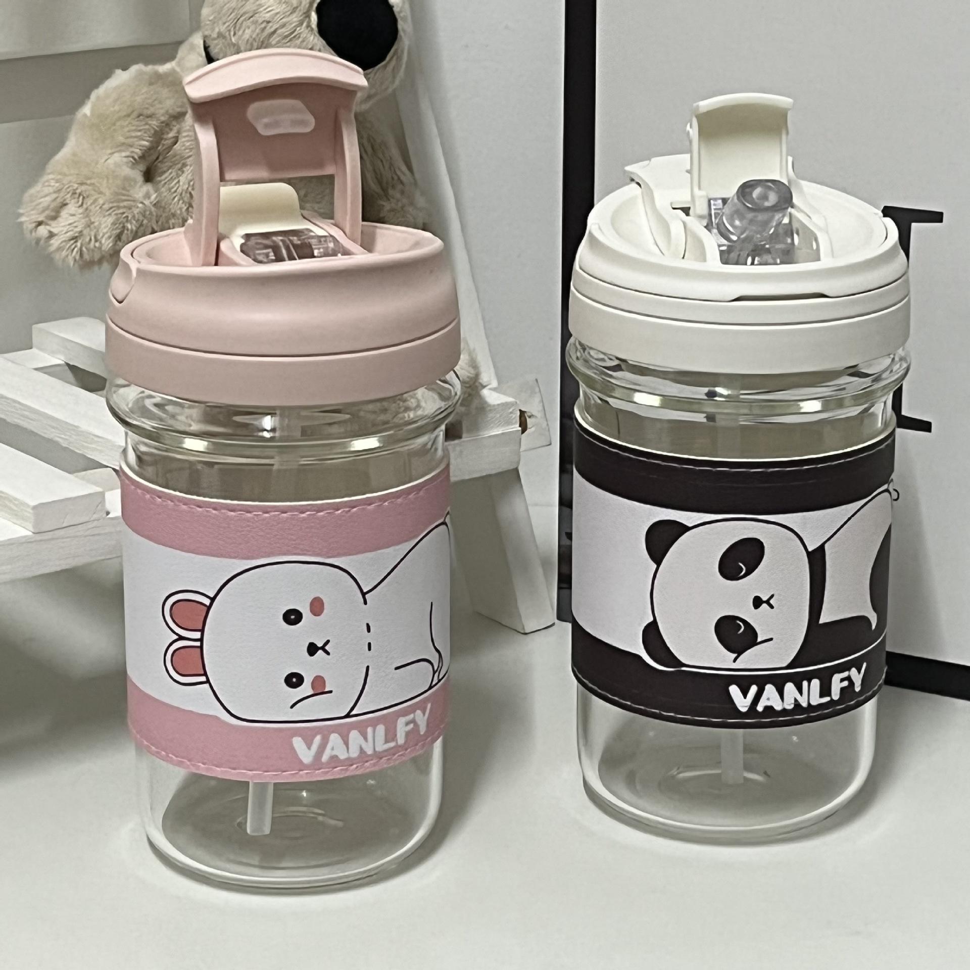 Vaso de Agua para Niñas Vaso de Vidrio Niña con Buena Apariencia y Gran Capacidad de Vientre Doble Bebida 2024 Nuevo Popote Oficina Vaso Lindo