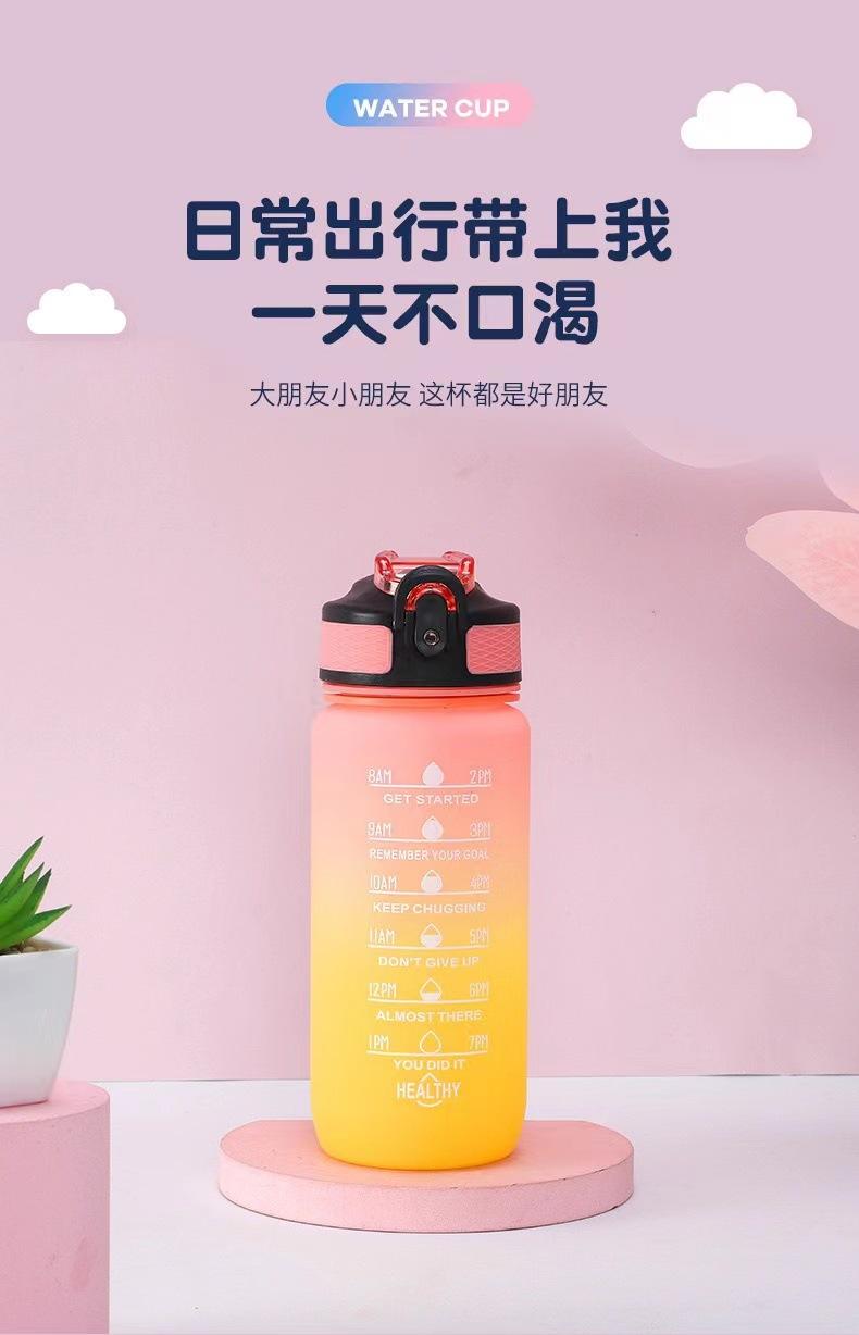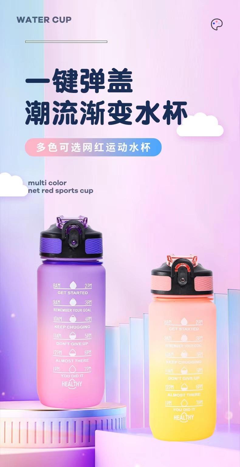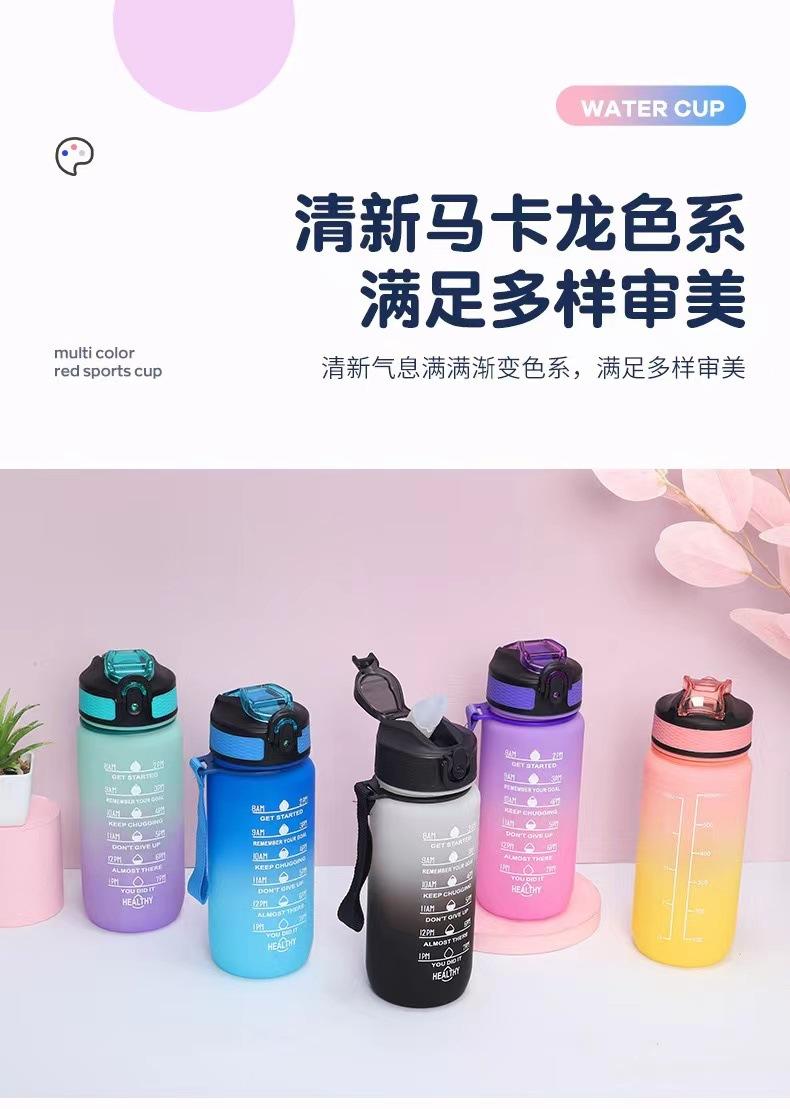 Vaso de agua con gradiente de rebote de Amazon con asa y tapa abatible. Vaso de plástico para agua, deportivo, para exteriores, con pajita.