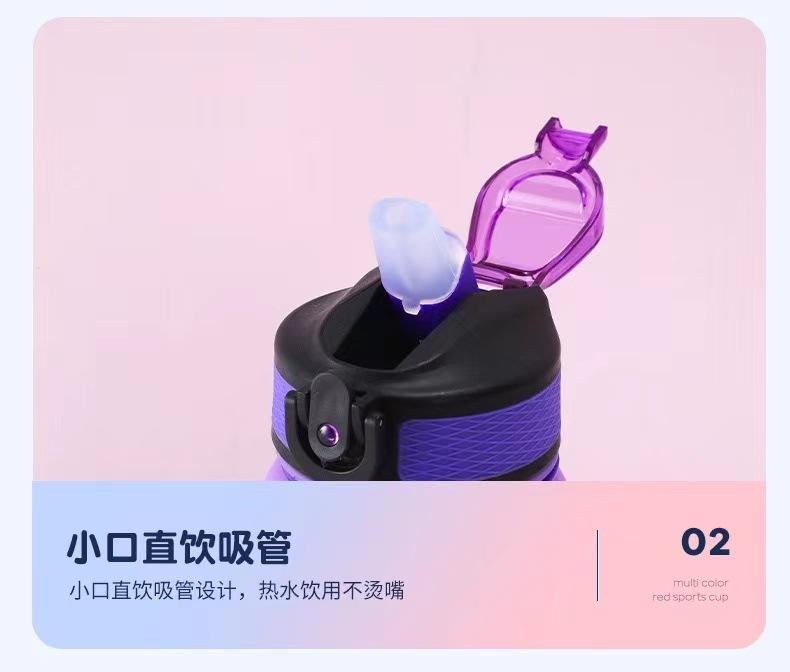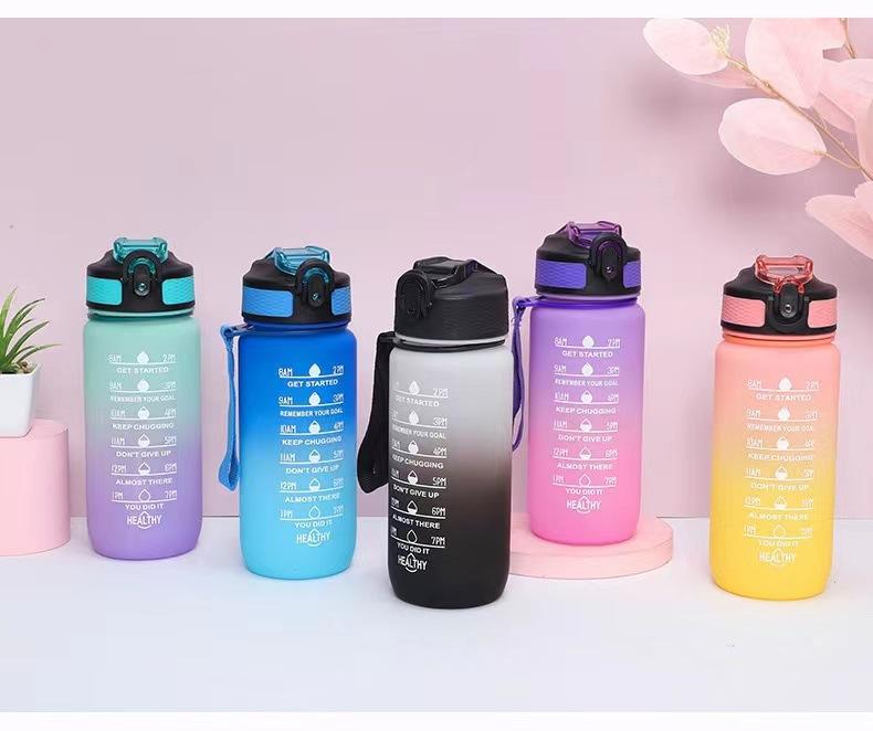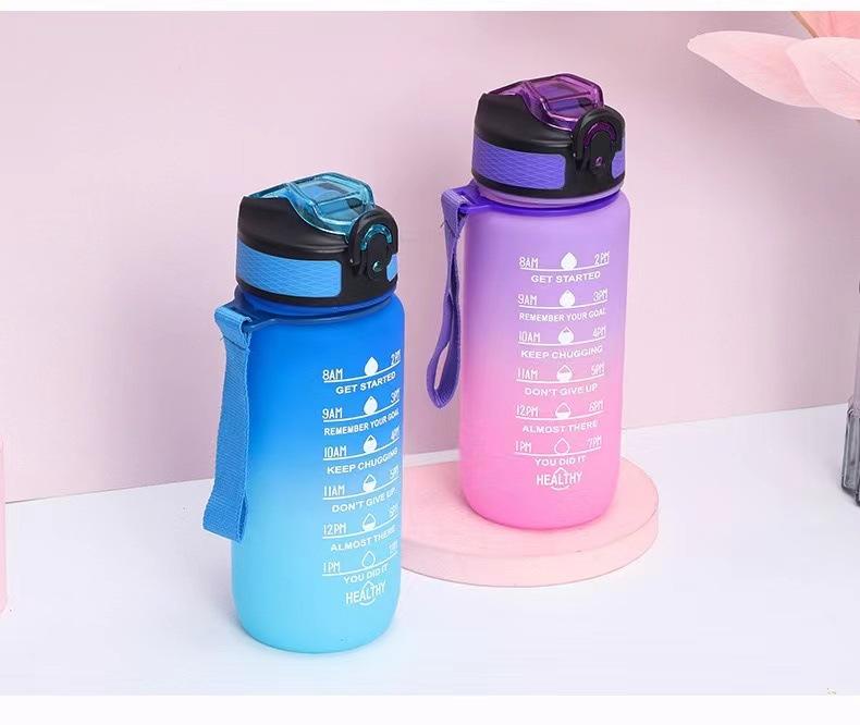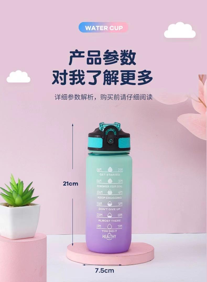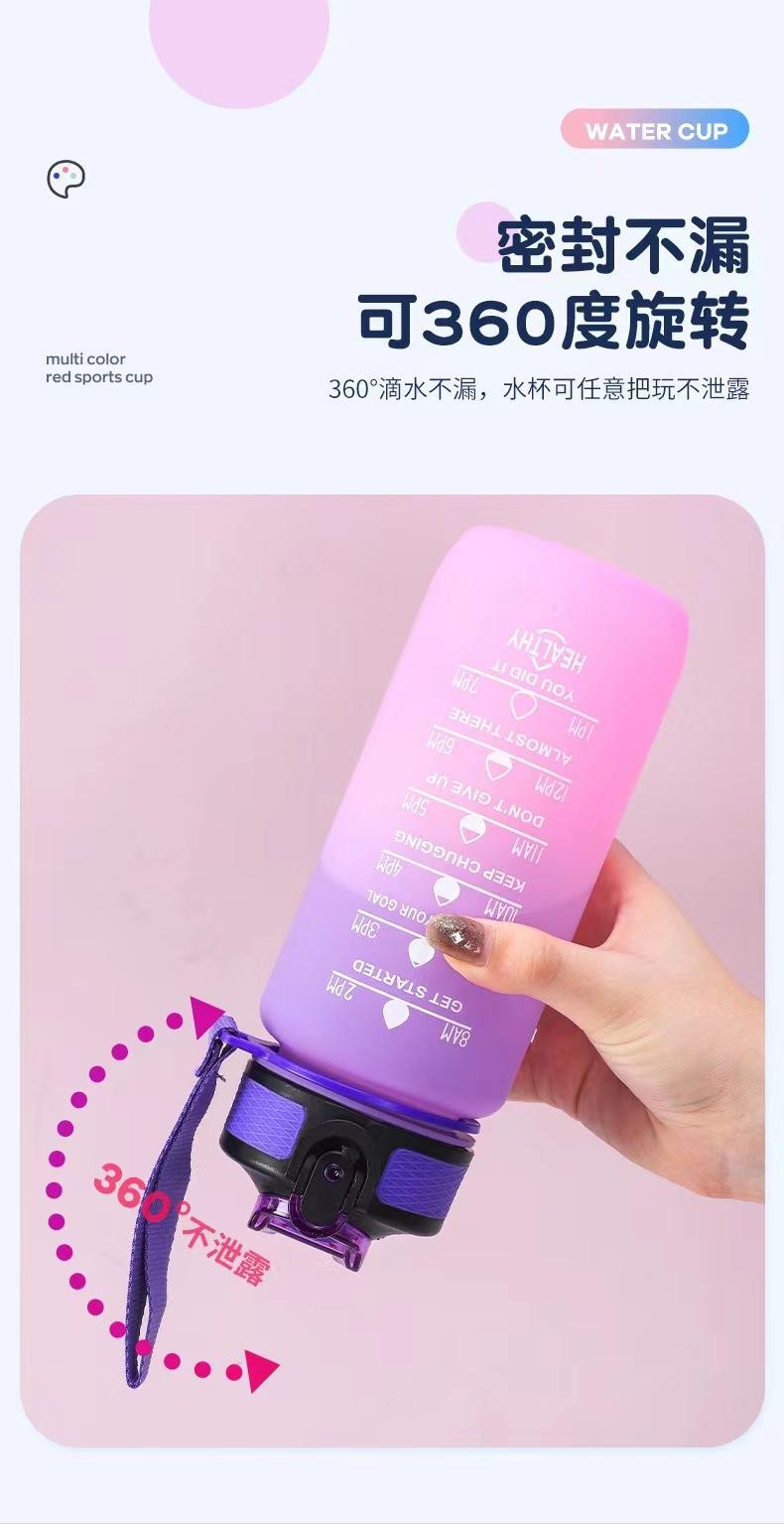 Vaso de agua con gradiente de rebote de Amazon con asa y tapa abatible. Vaso de plástico para agua, deportivo, para exteriores, con pajita.