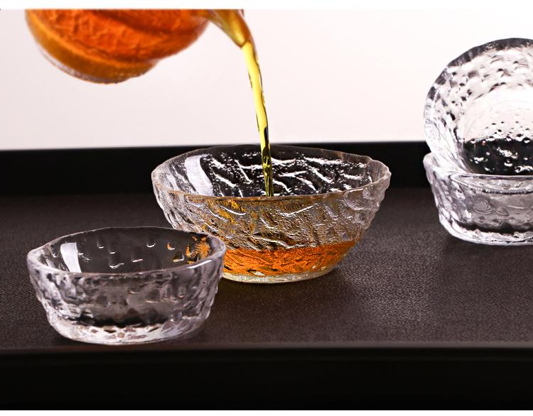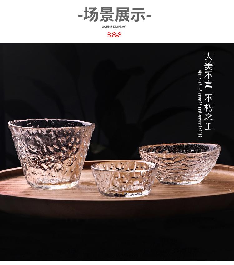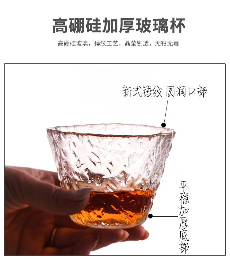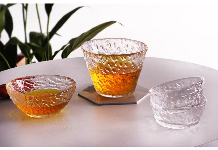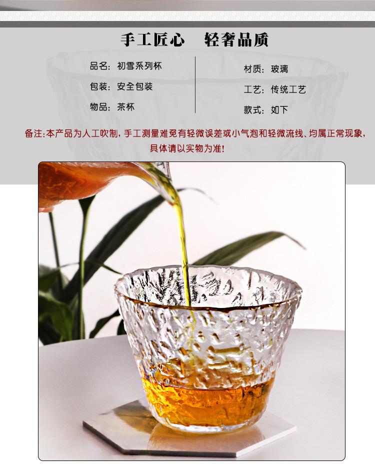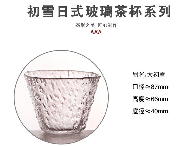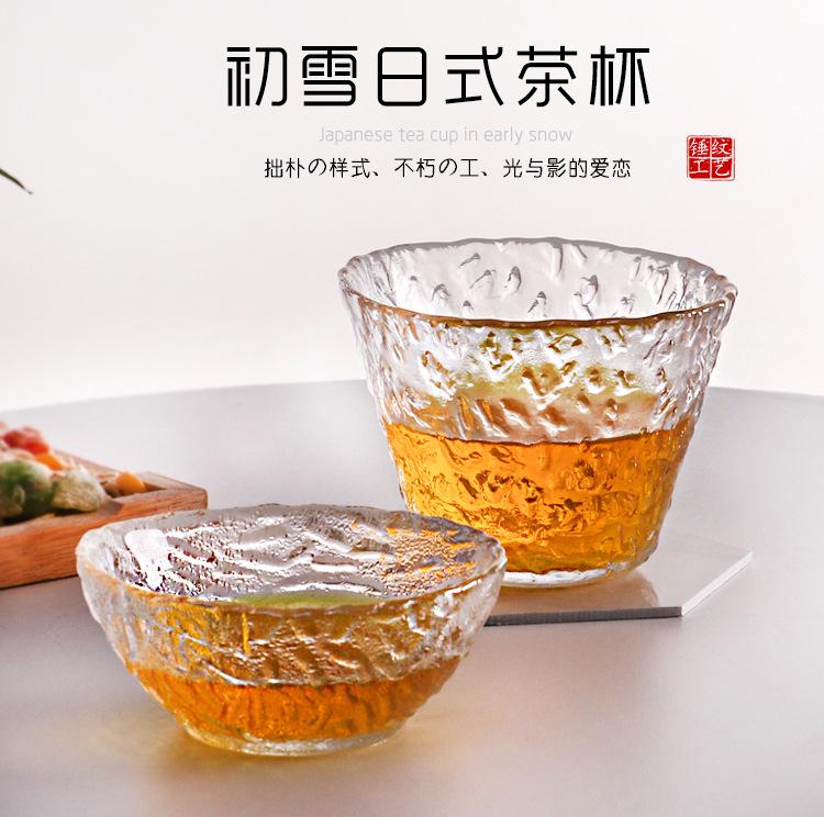 La primera taza de nieve, patrón de martillo de estilo japonés, taza de feria, taza de té de vidrio resistente al calor para el hogar, taza de té pequeña, taza maestra, juego de té de kung fu al por mayor