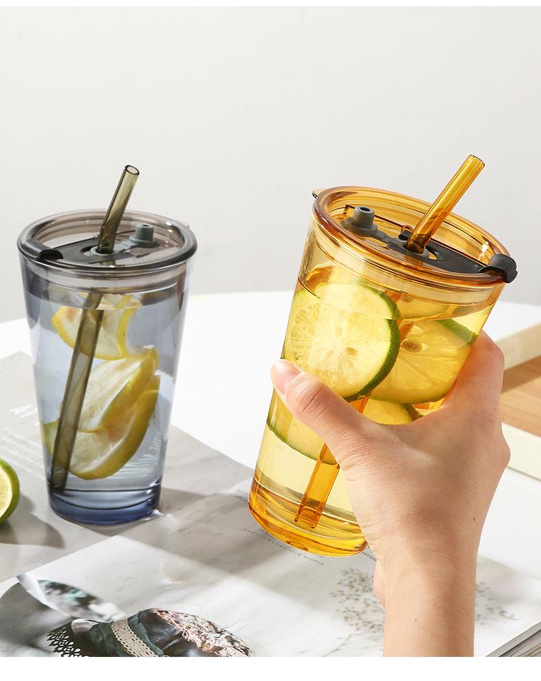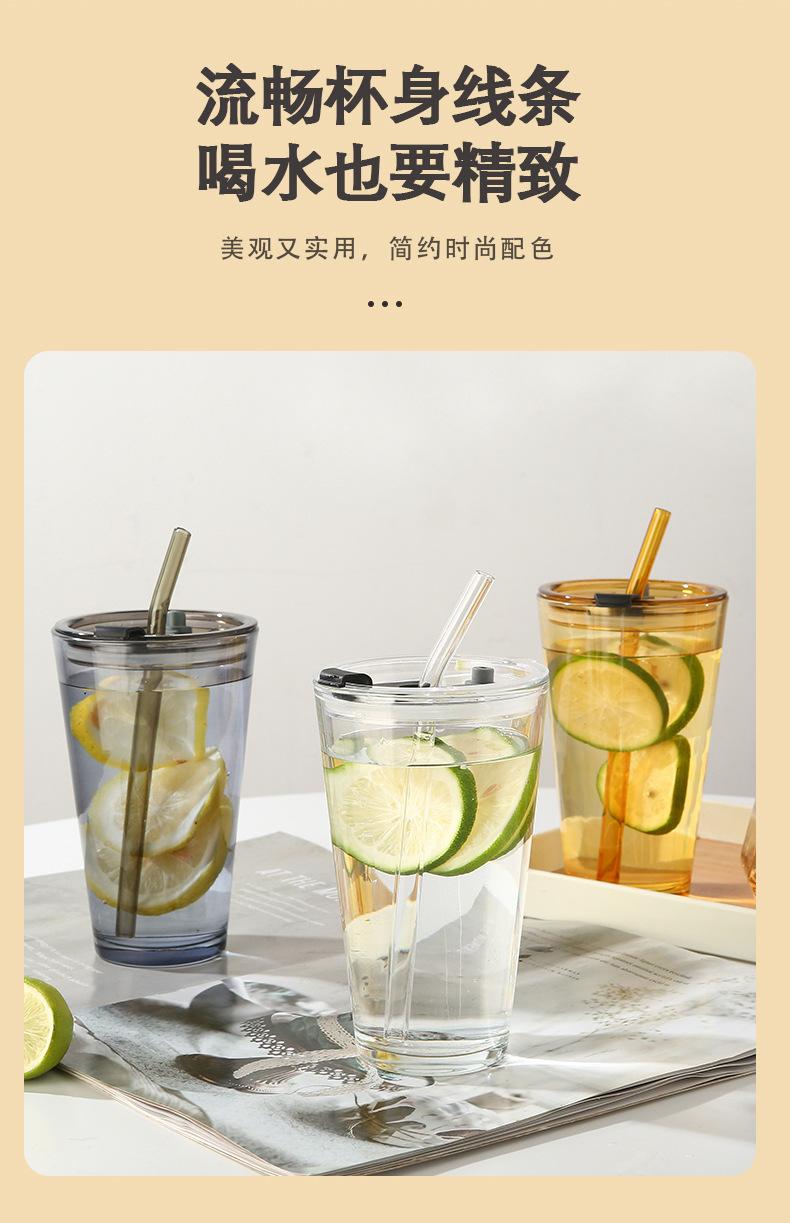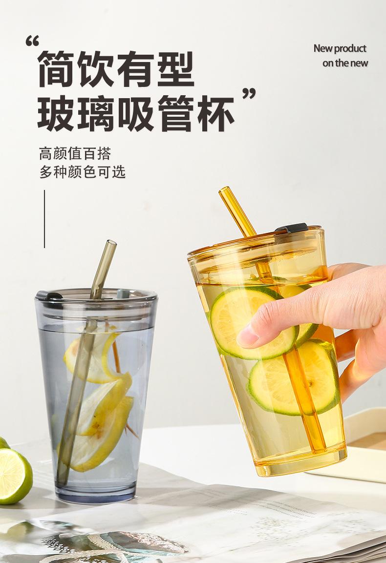 Vaso de Agua Sellado de Vidrio para el Hogar Creativo y Fresco Vaso para Jugo Vaso con Pajita Regalo con Logotipo Impreso Regalo Creativo