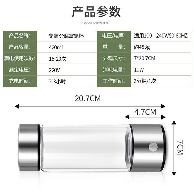 [En stock] taza de agua rica en hidrógeno transfronteriza taza de agua taza de agua de producción de hidrógeno portátil taza de agua electrólisis de moléculas pequeñas electrólisis de alto borosilicato