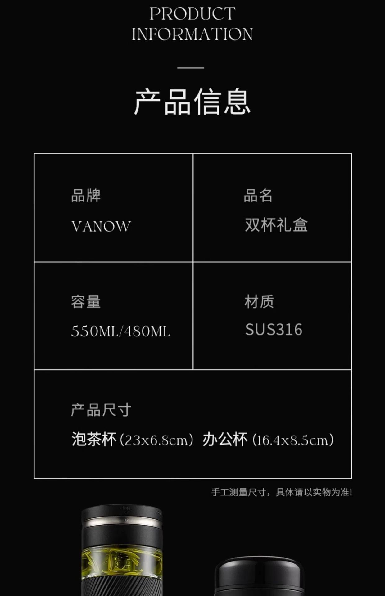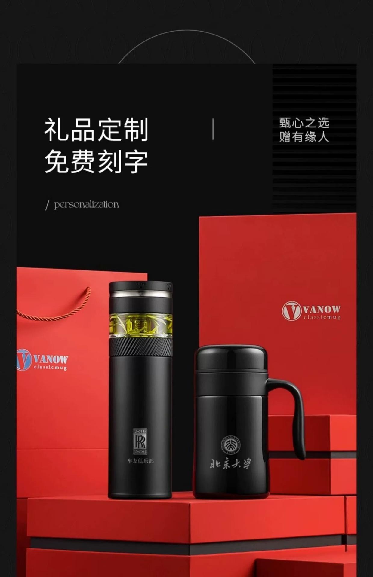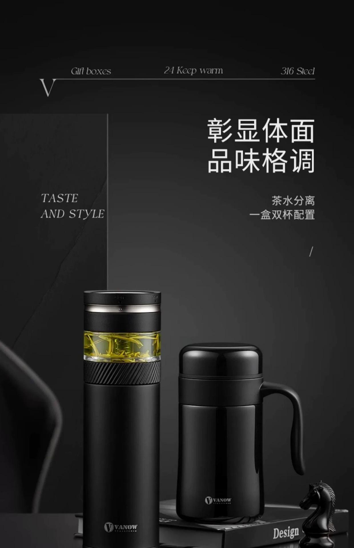Set de Caja de Regalo Vanow Taza de Té Taza Termo para Separación de Agua y Té Regalo Grabado para Hombre Taza de Agua con Logo Impreso