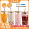 Vaso apilable vertical de 11 oz de Amazon, vaso de bambú, vaso creativo de vidrio con tapa para bebidas, cerveza, jugo, leche, té.