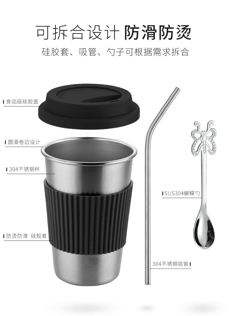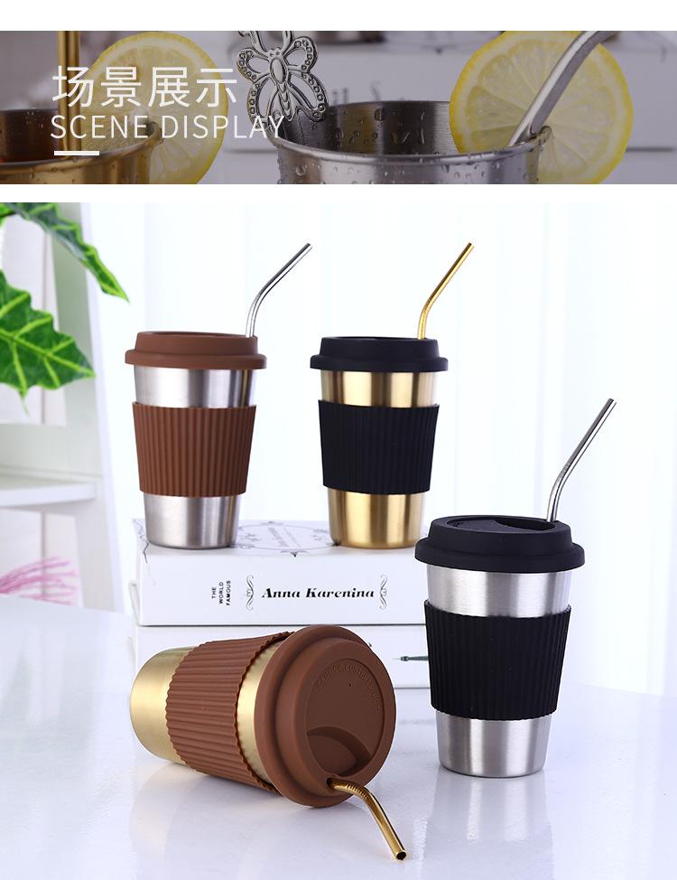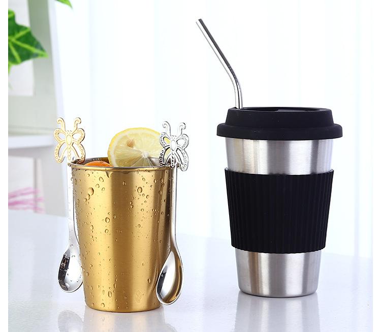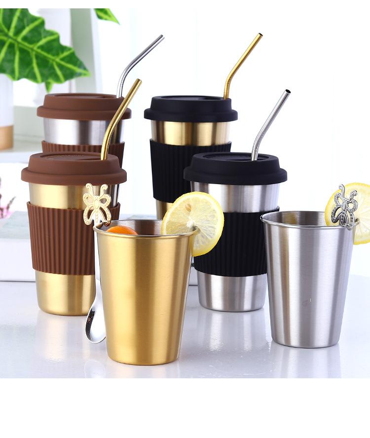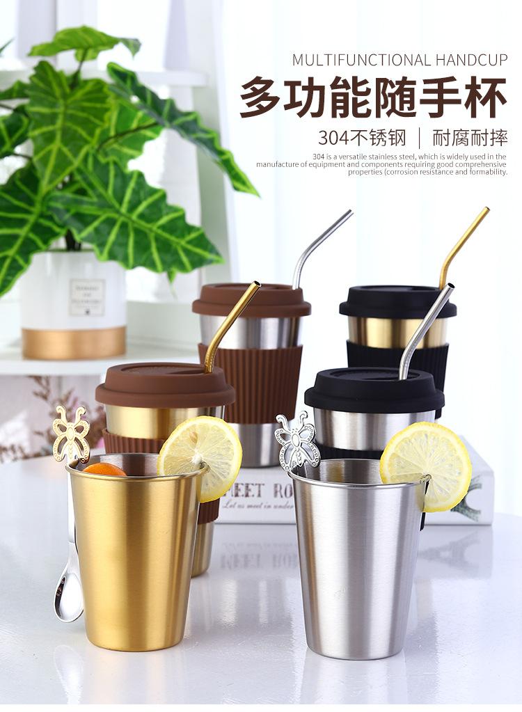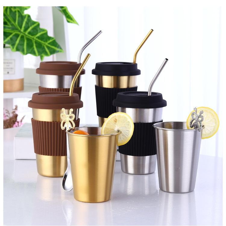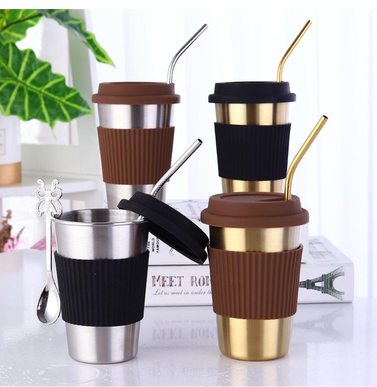 Taza de Acero Inoxidable 304 Estilo Industrial Taza de Agua Ins con Tapa Taza para Bebidas Frías Oficina Creativa Taza con Pajita Hogar Moderna Cool