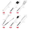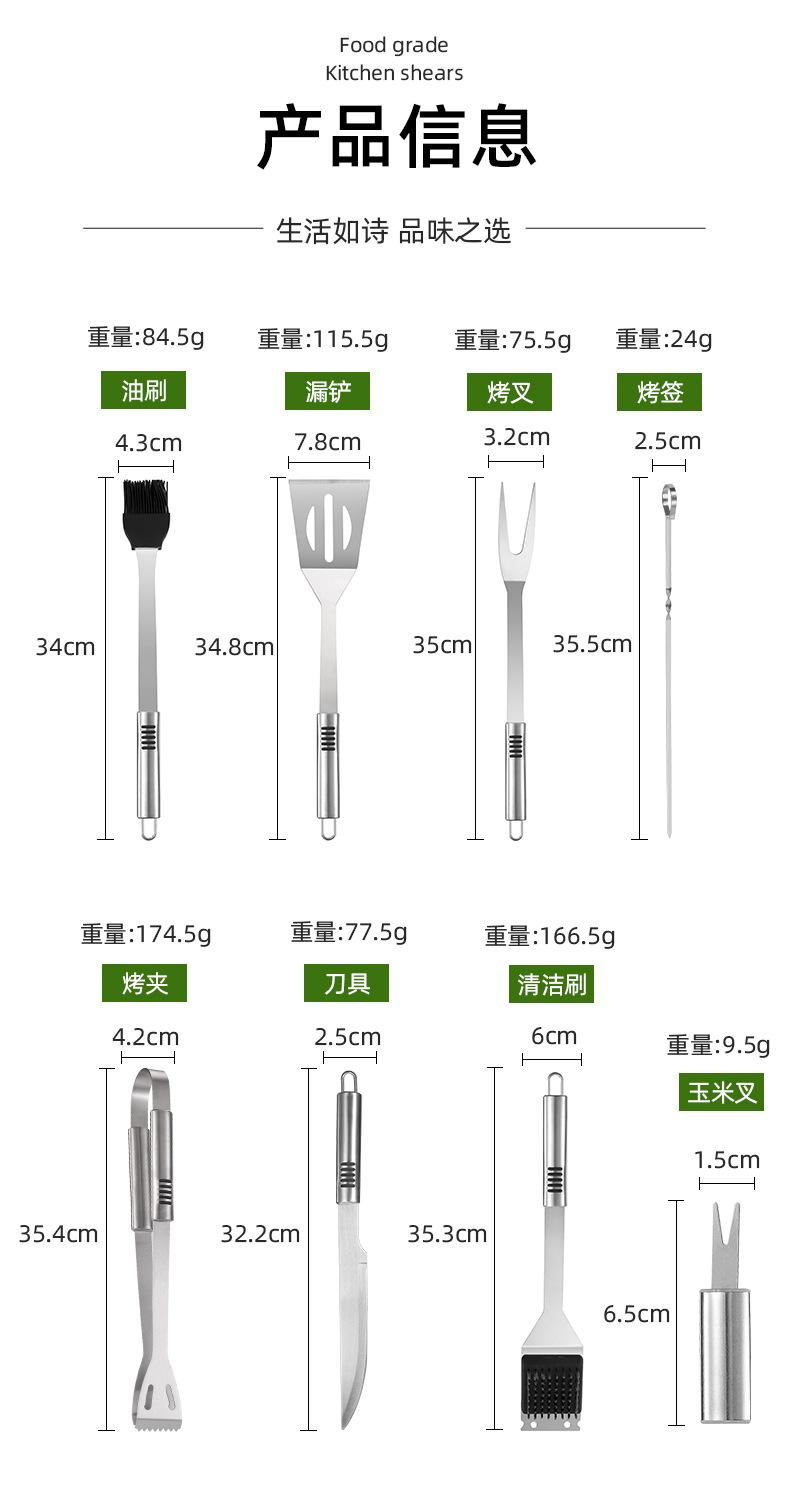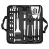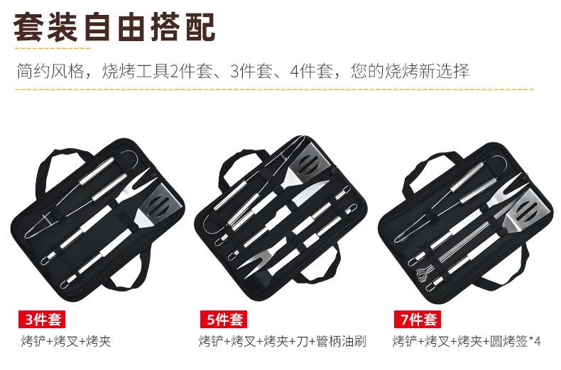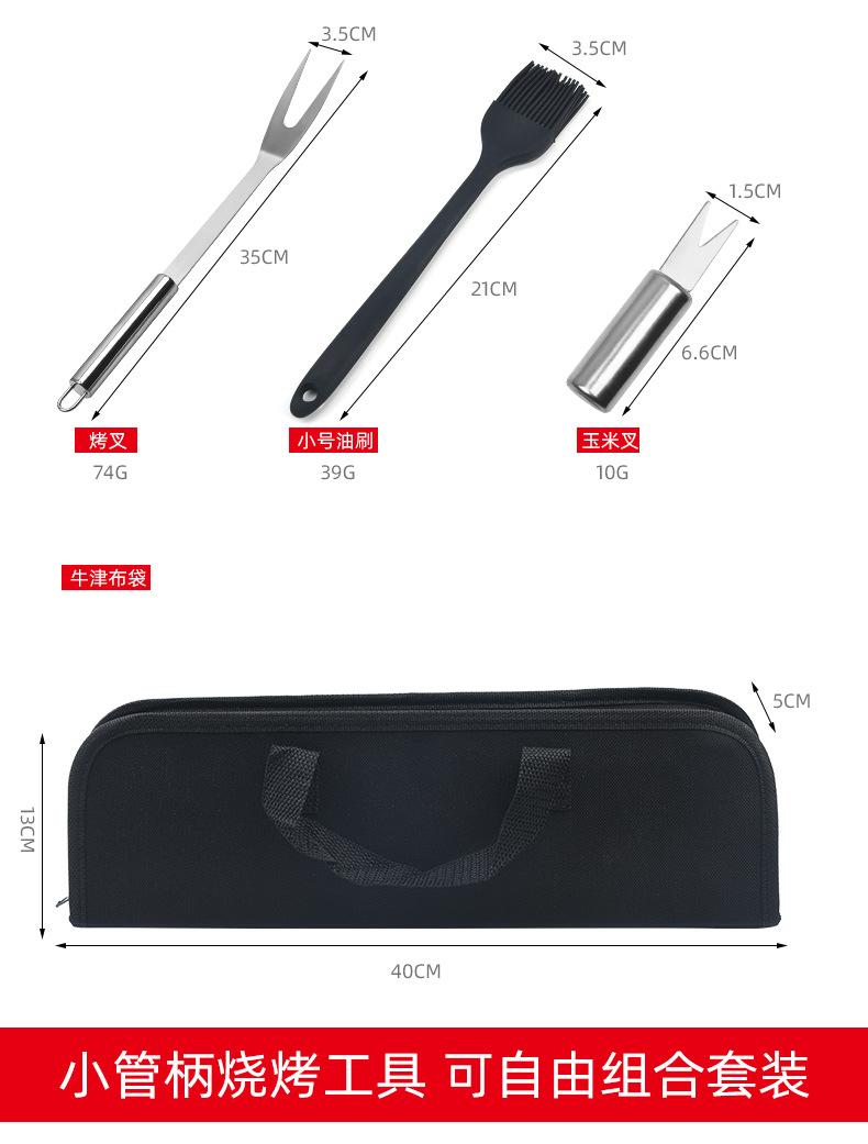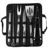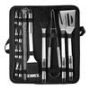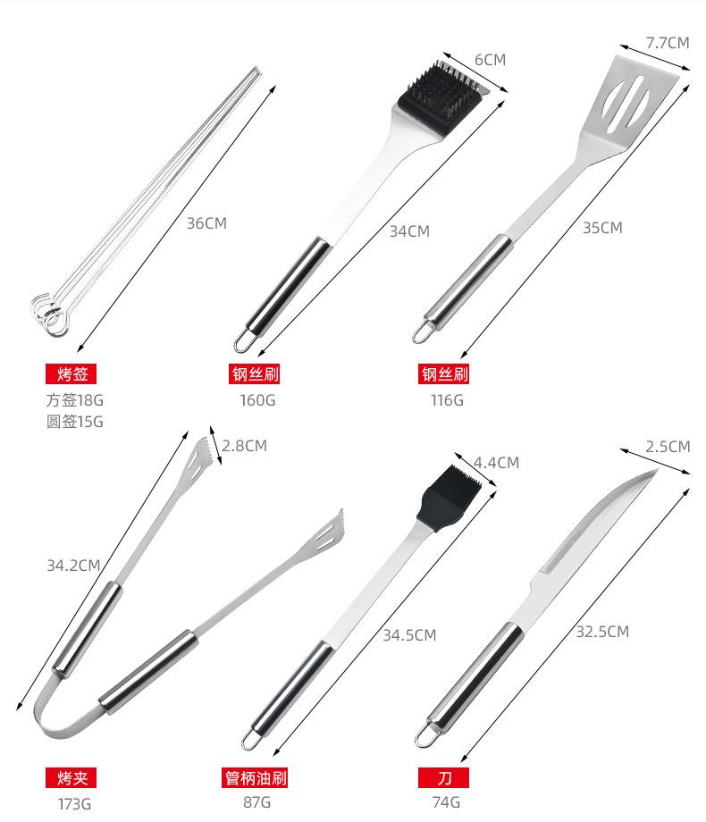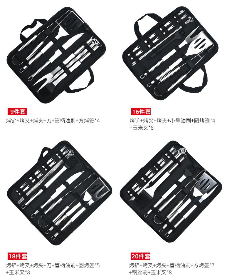 Cada herramienta para barbacoa se coloca en una bolsa de tela y se asegura con bandas elásticas y Velcro, luego se envuelve individualmente en una bolsa de burbujas y se coloca en una caja de exportación.