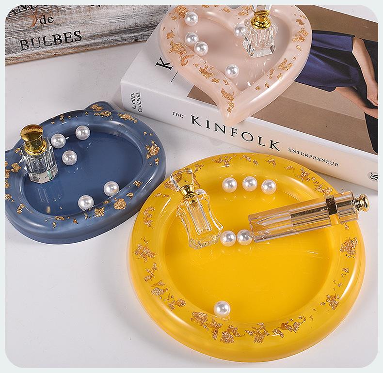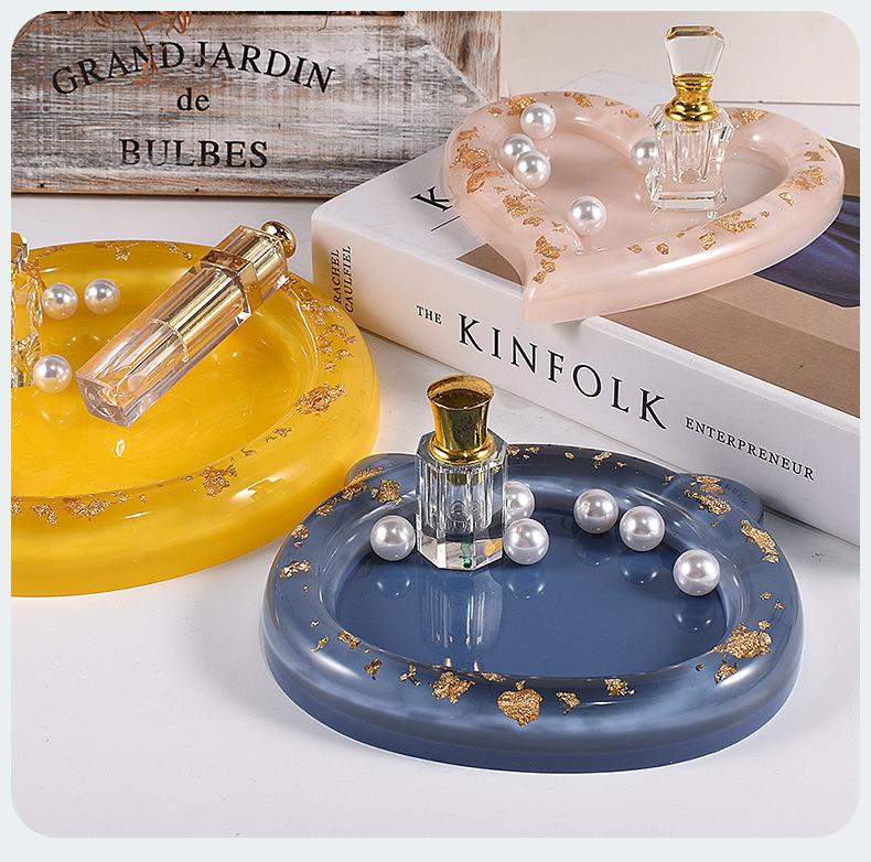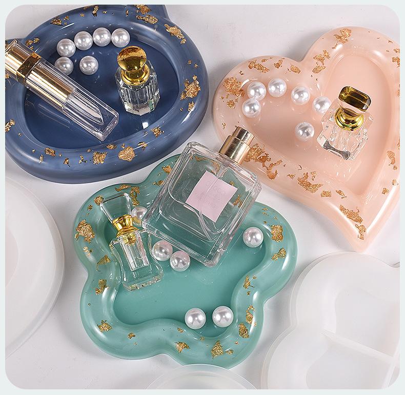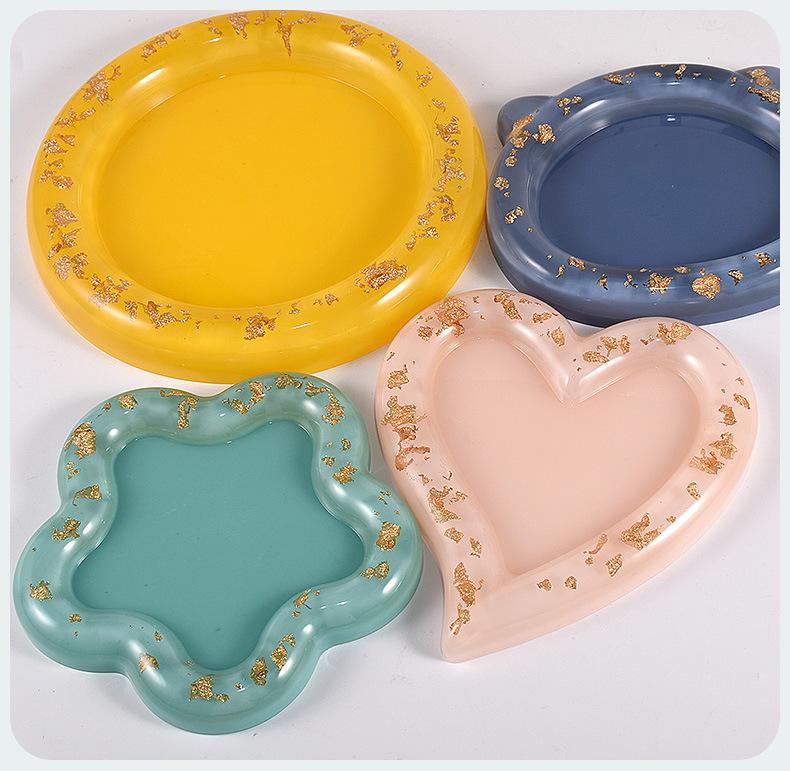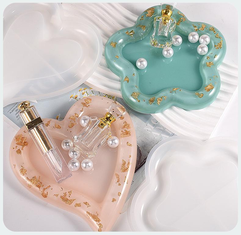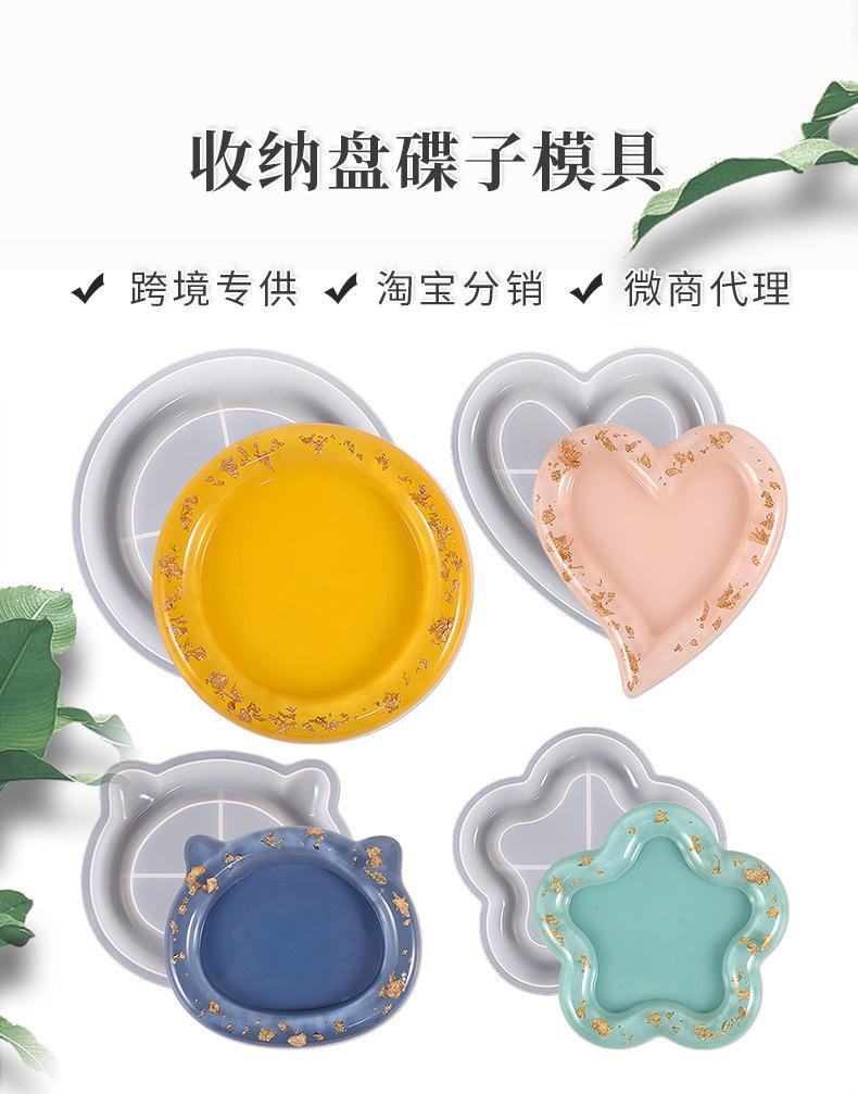 Molde de silicona para bandeja de almacenamiento de resina epoxi DIY con goteo de cristal, bandeja de almacenamiento, redondo, forma de corazón, cabeza de gato, plato de flores