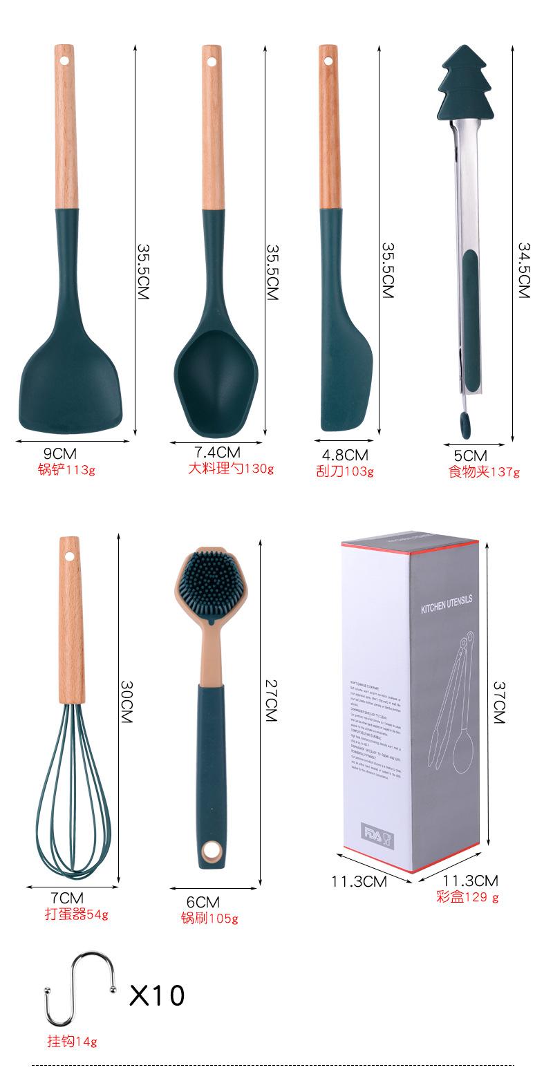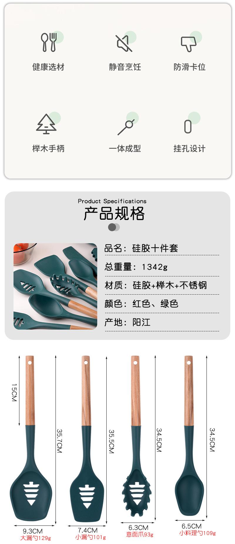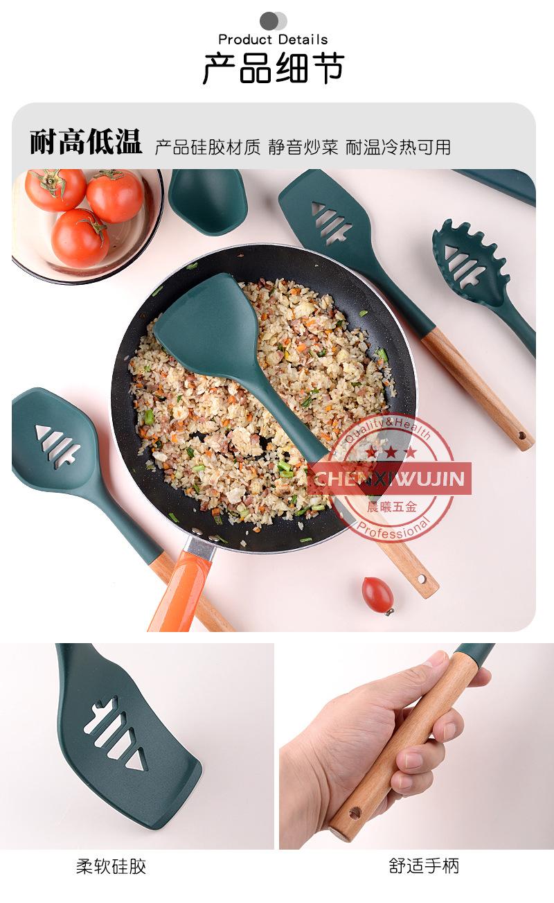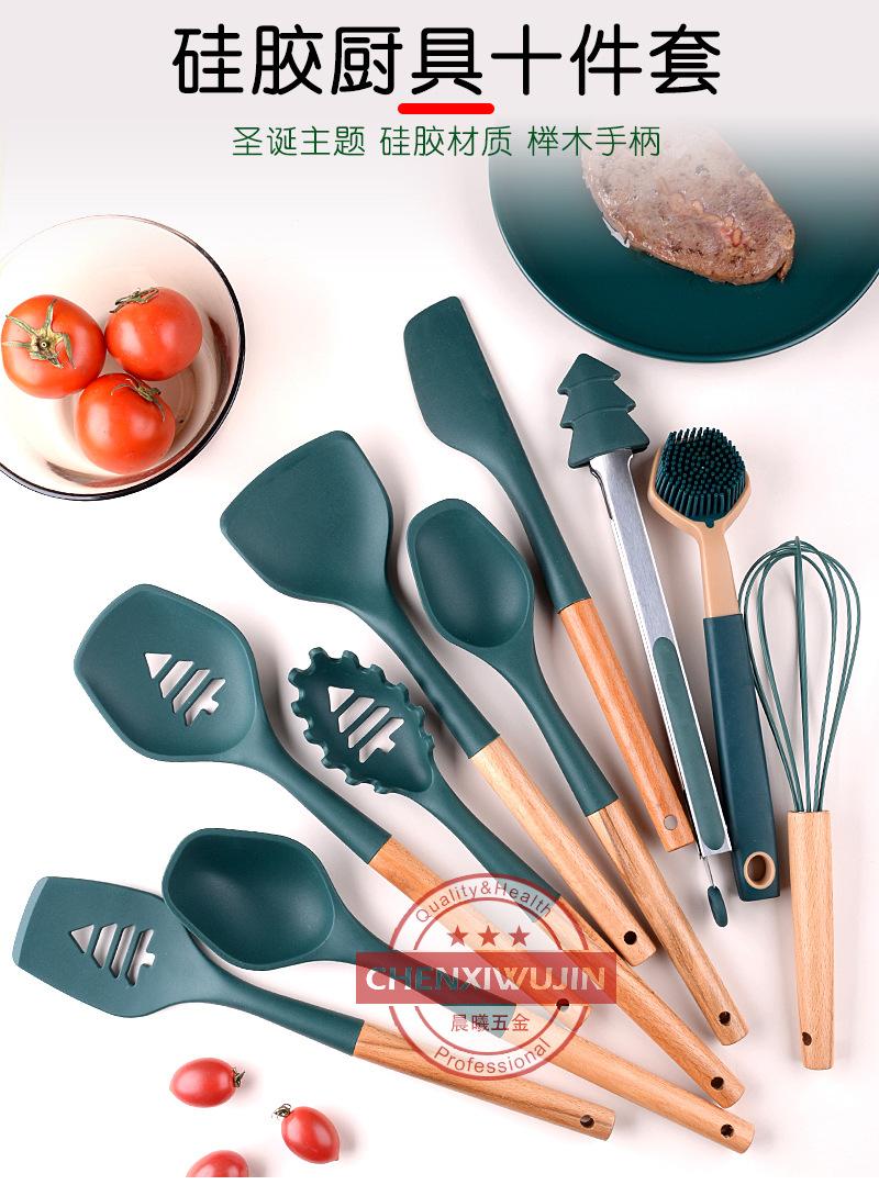 Juego de utensilios de cocina de silicona, sartén antiadherente, pala para saltear, cuchara, espátula de silicona resistente a altas temperaturas para el hogar, juego de 10 piezas
