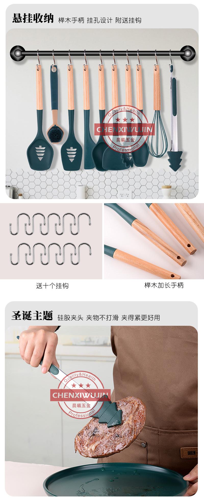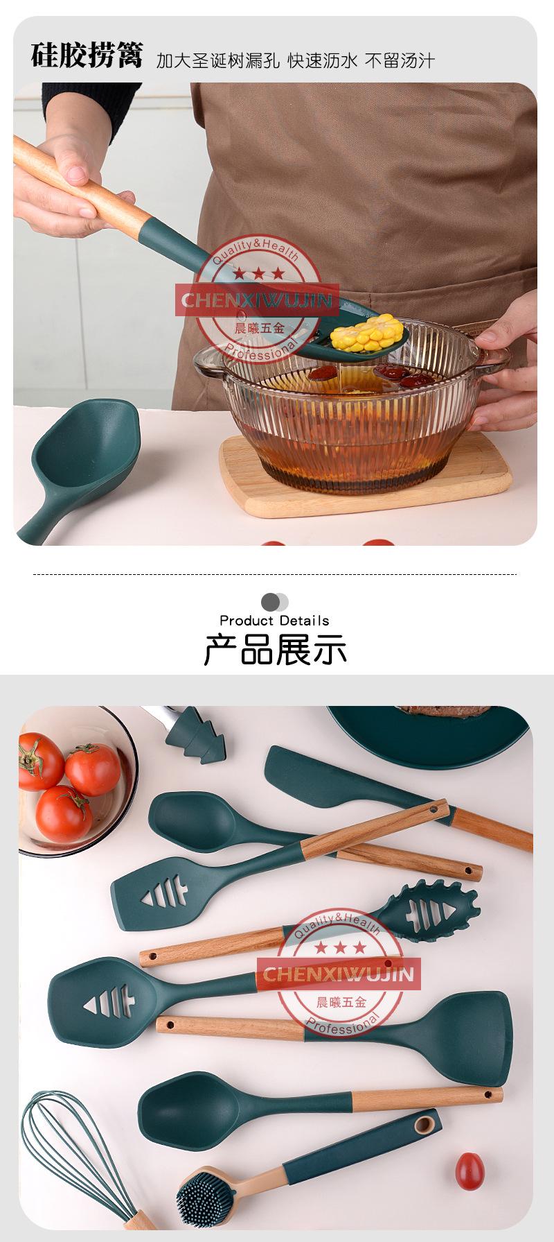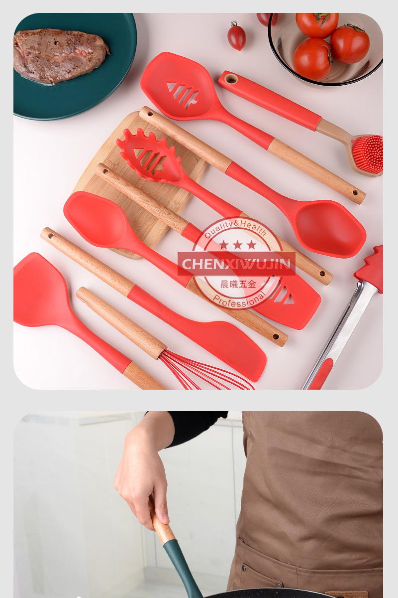 Juego de utensilios de cocina de silicona, sartén antiadherente, pala para saltear, cuchara, espátula de silicona resistente a altas temperaturas para el hogar, juego de 10 piezas