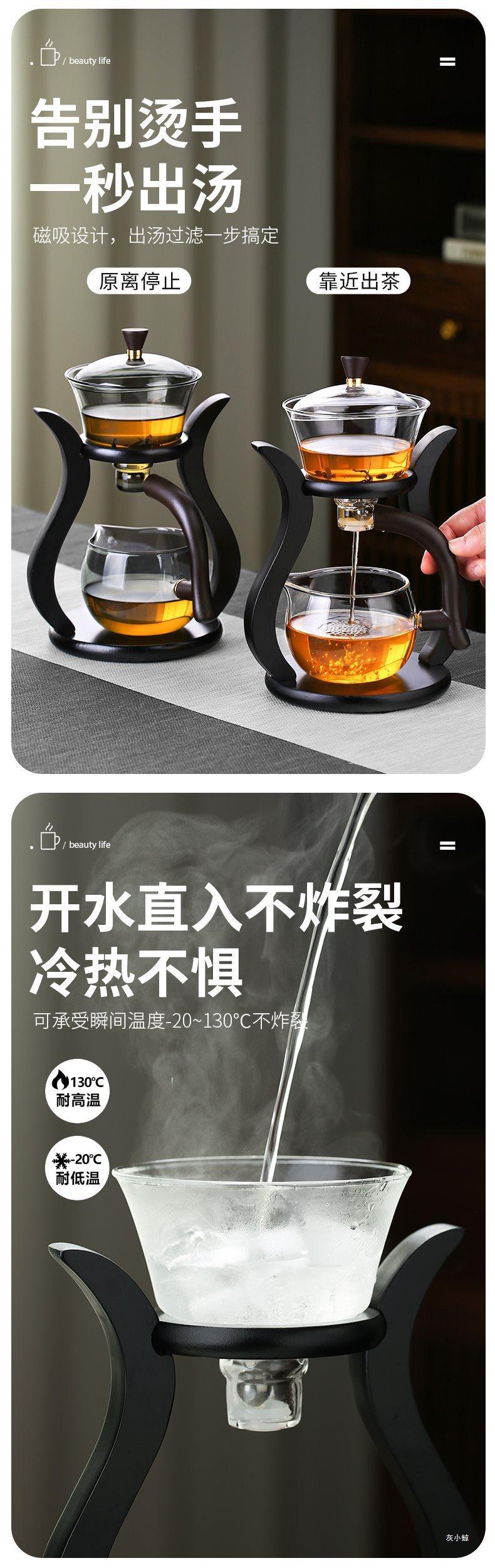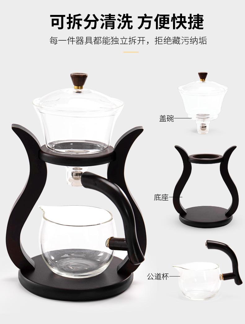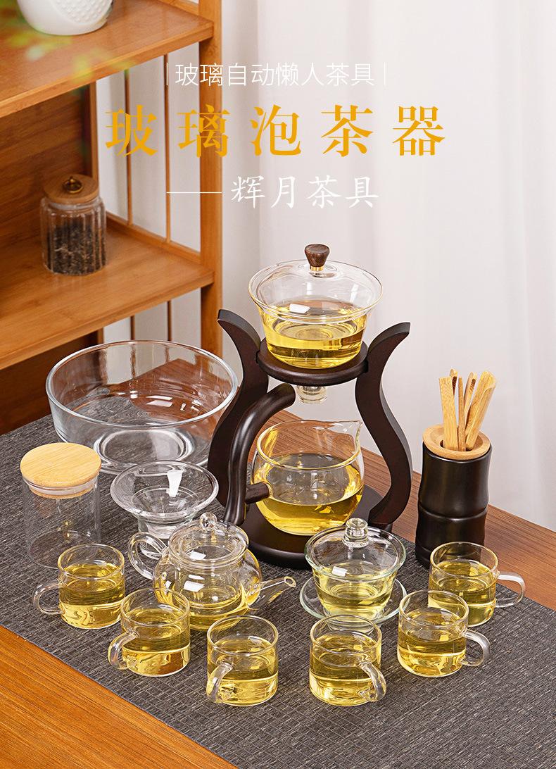 Juego de Té Automático para Perezoso de Vidrio Magnético Accesorios Colador de Bola de Acero Taza Gorda Tapa de Olla Individual Tazón Estante de Bambú Varios Accesorios