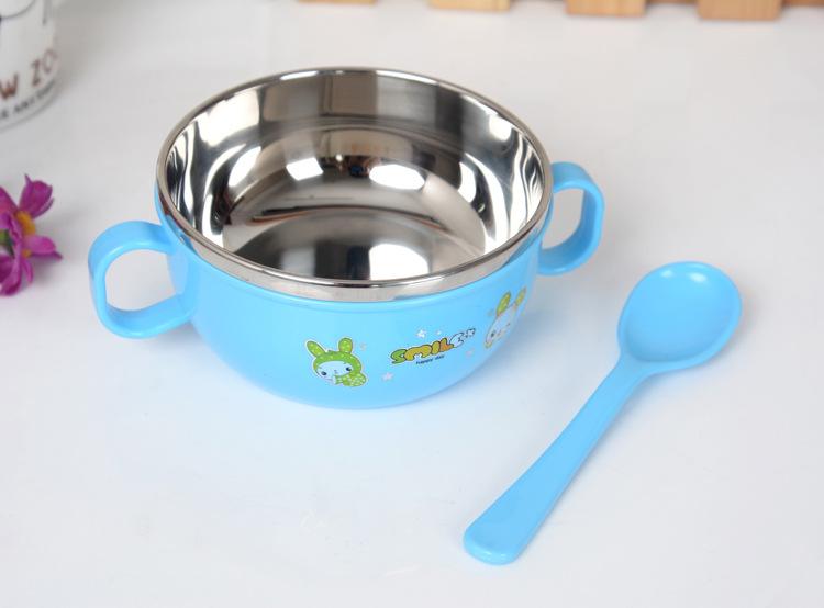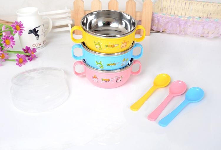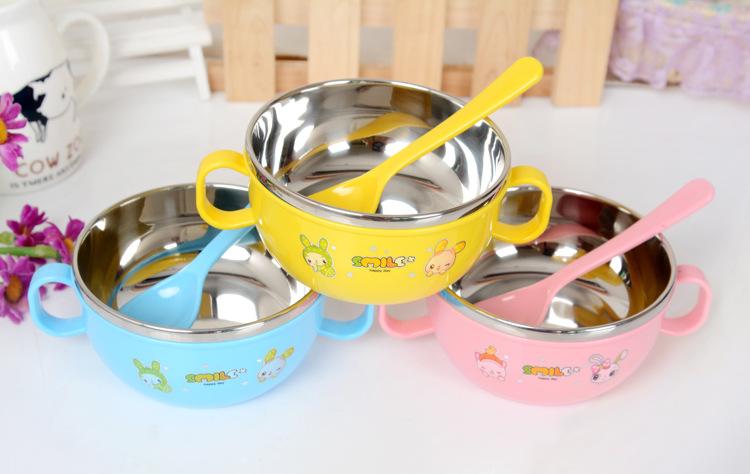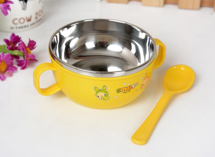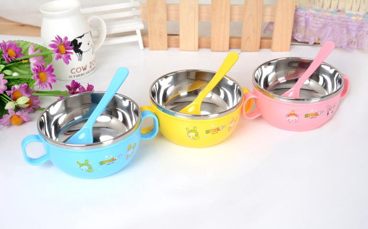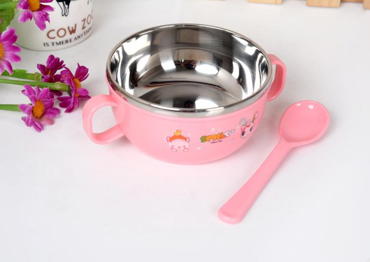 Tazón para comer de acero inoxidable para bebé de dibujos animados lindo con asa vajilla para niños tazón 8810