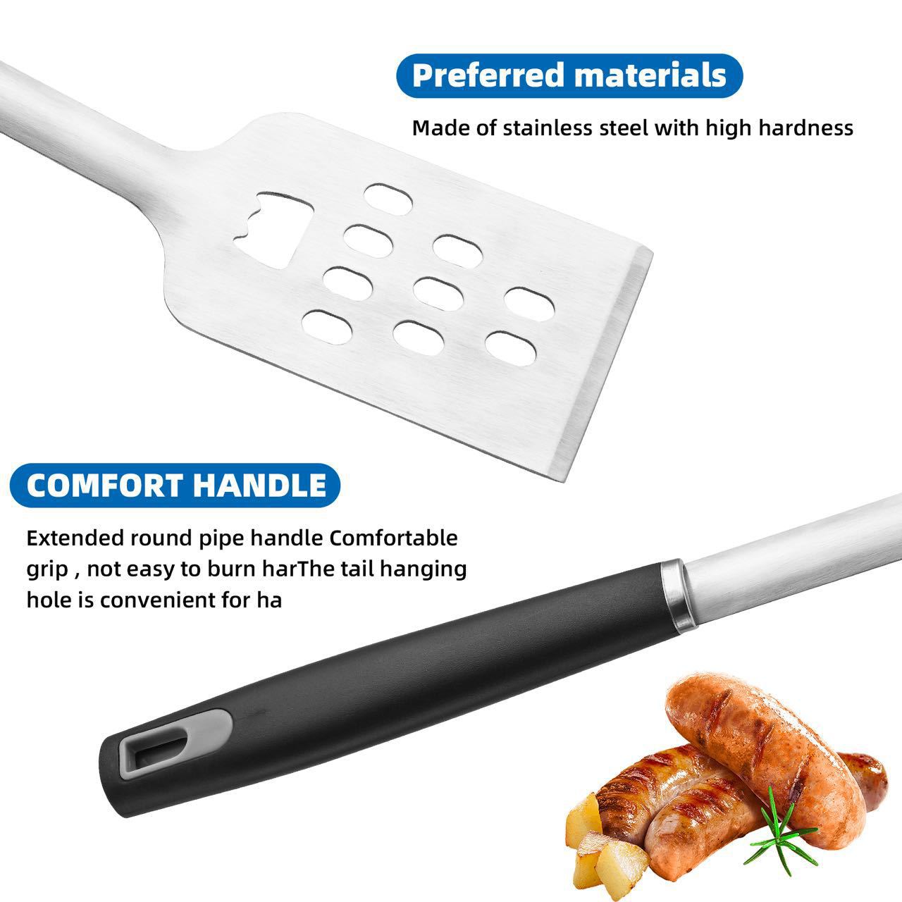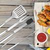 Herramientas para barbacoa transfronterizas, juego combinado para exteriores, juego de tres piezas de acero inoxidable para barbacoa, pala, tenedor y clip.