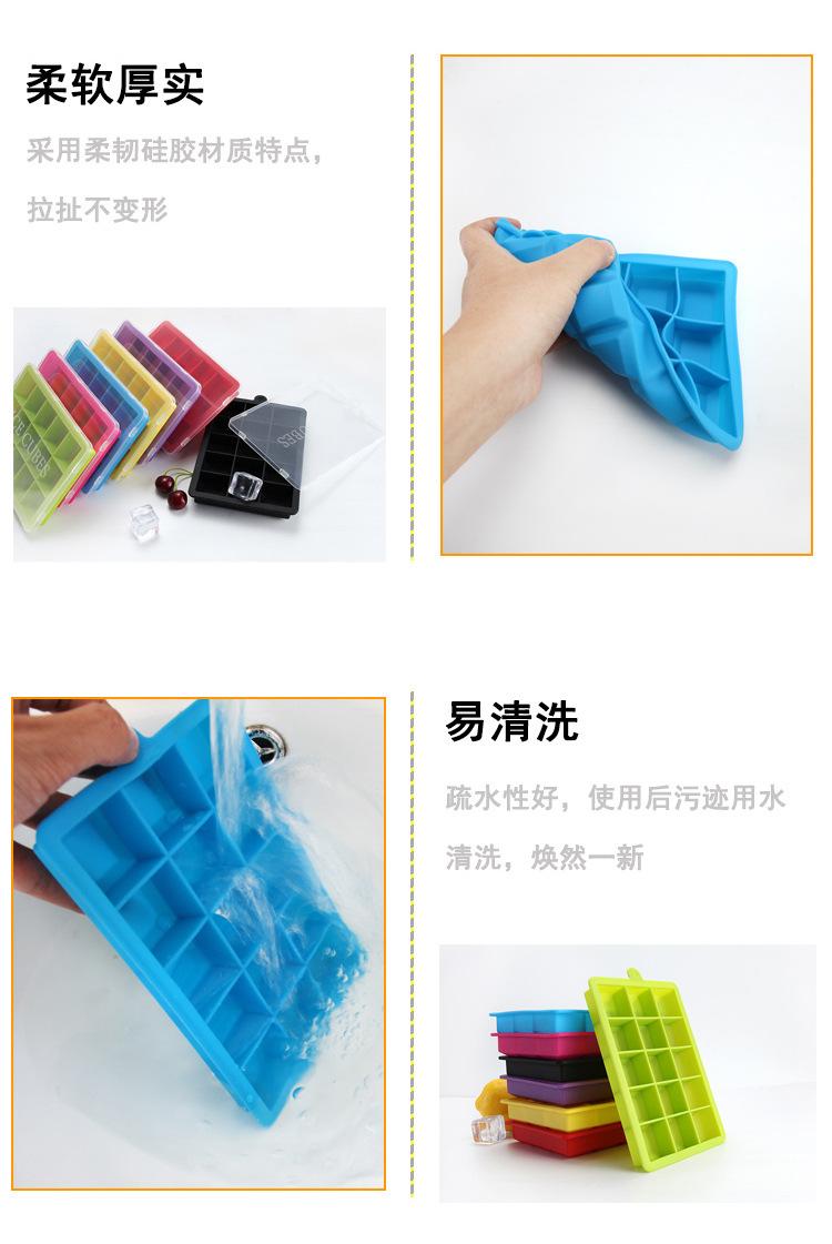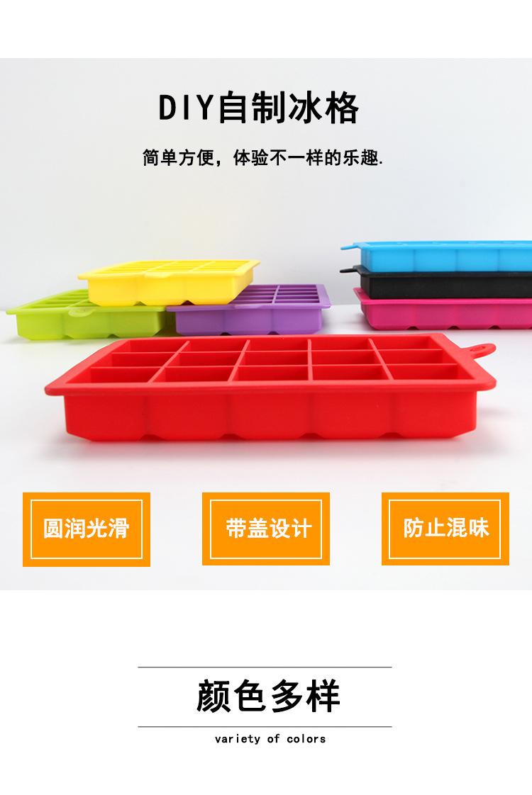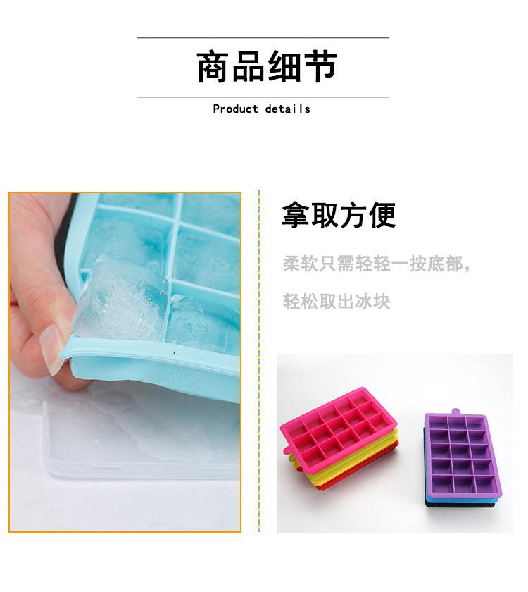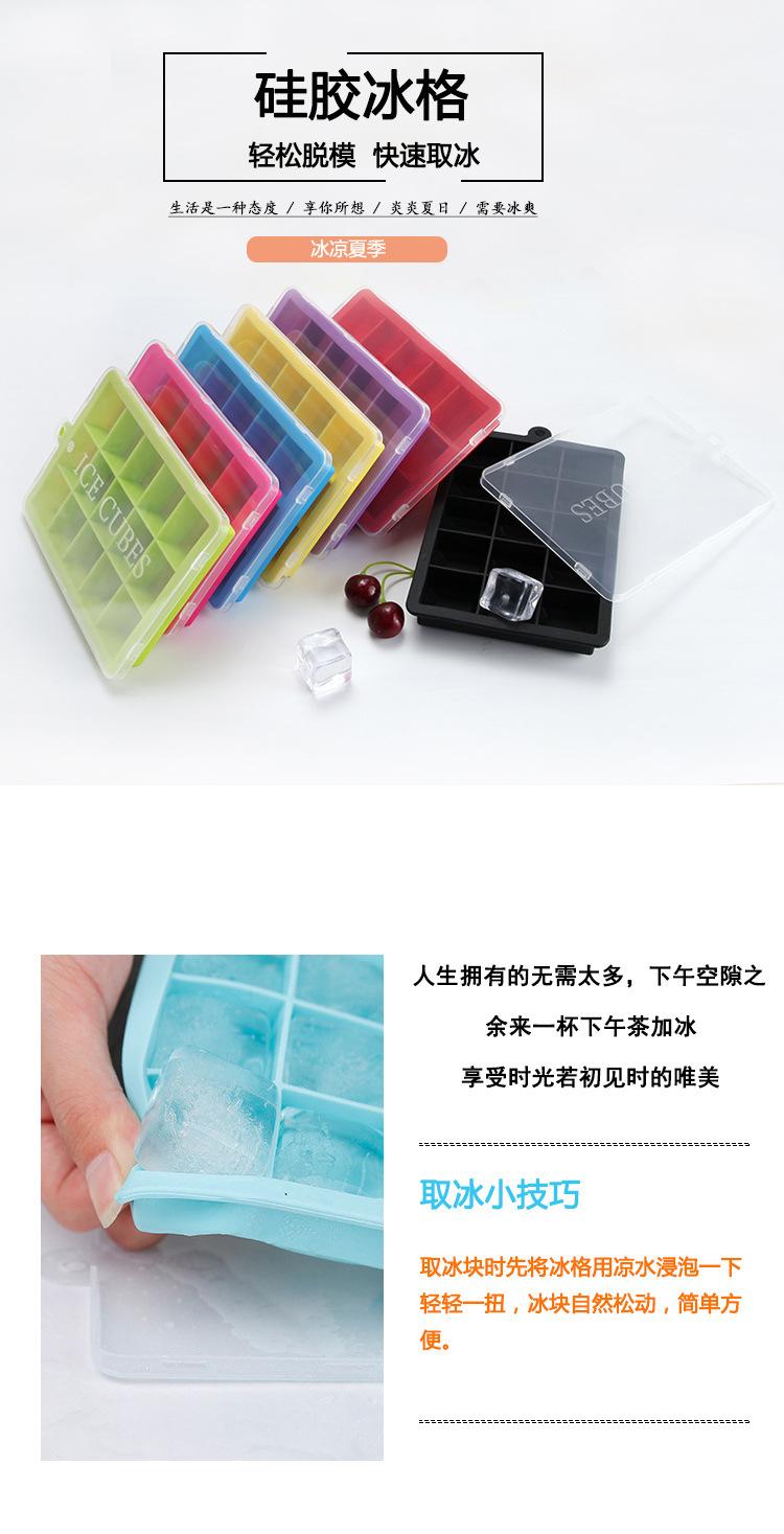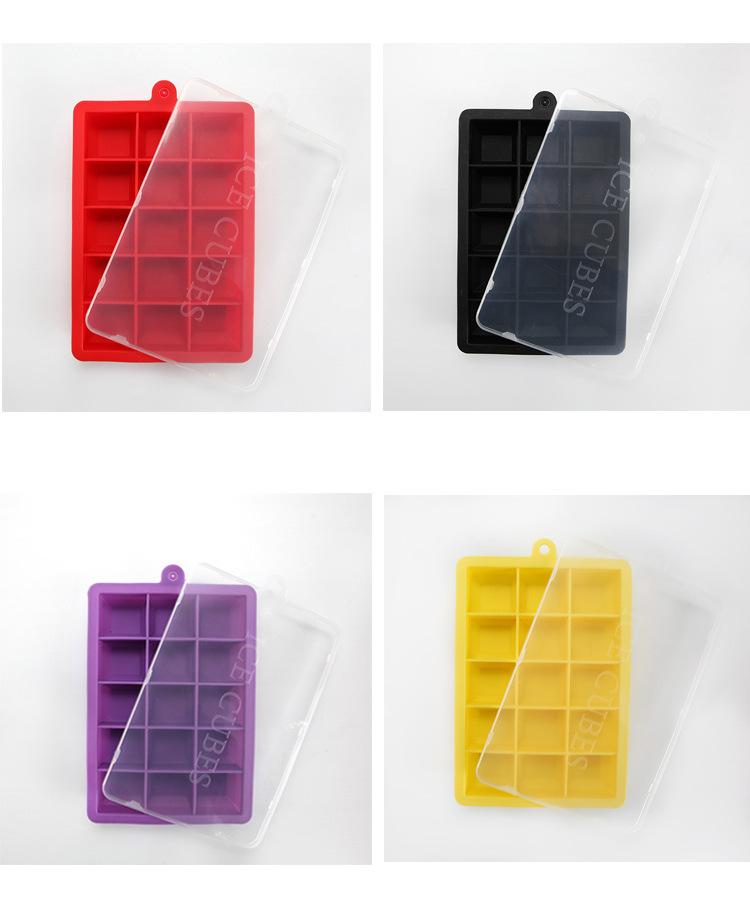 Bandeja de hielo de silicona de 15 rejillas con tapa, bandeja de hielo cuadrada, molde para cubitos de hielo DIY, fabricante de cajas de hielo en stock