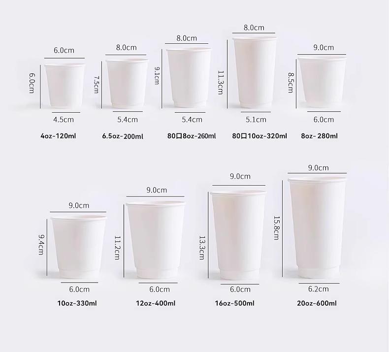 8A280ml white double layer paper cup -100, 10A330ml white double layer paper cup -100, 14A400ml white double l...